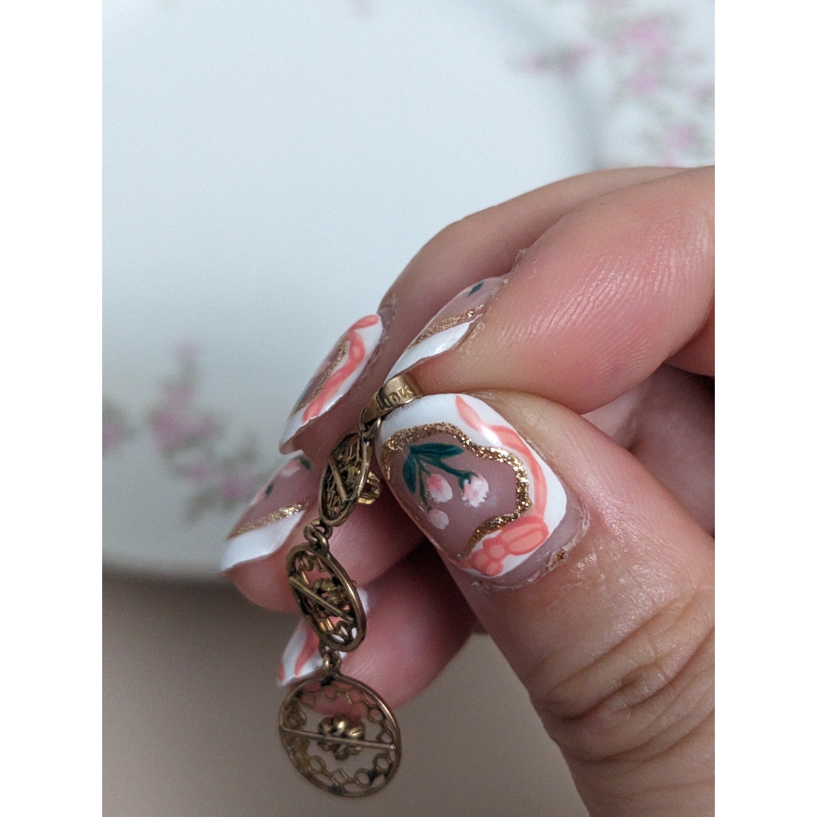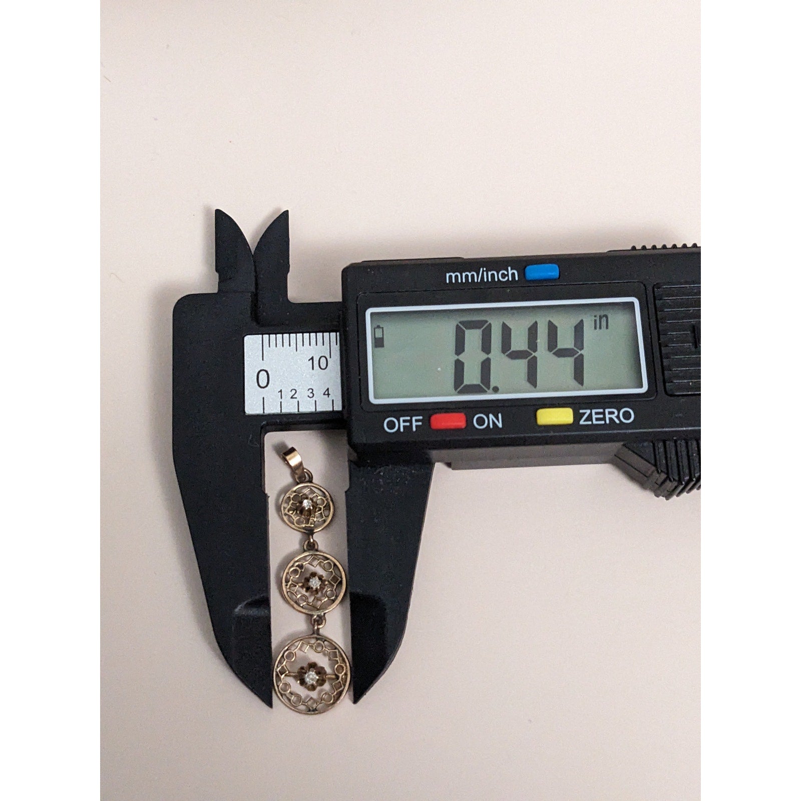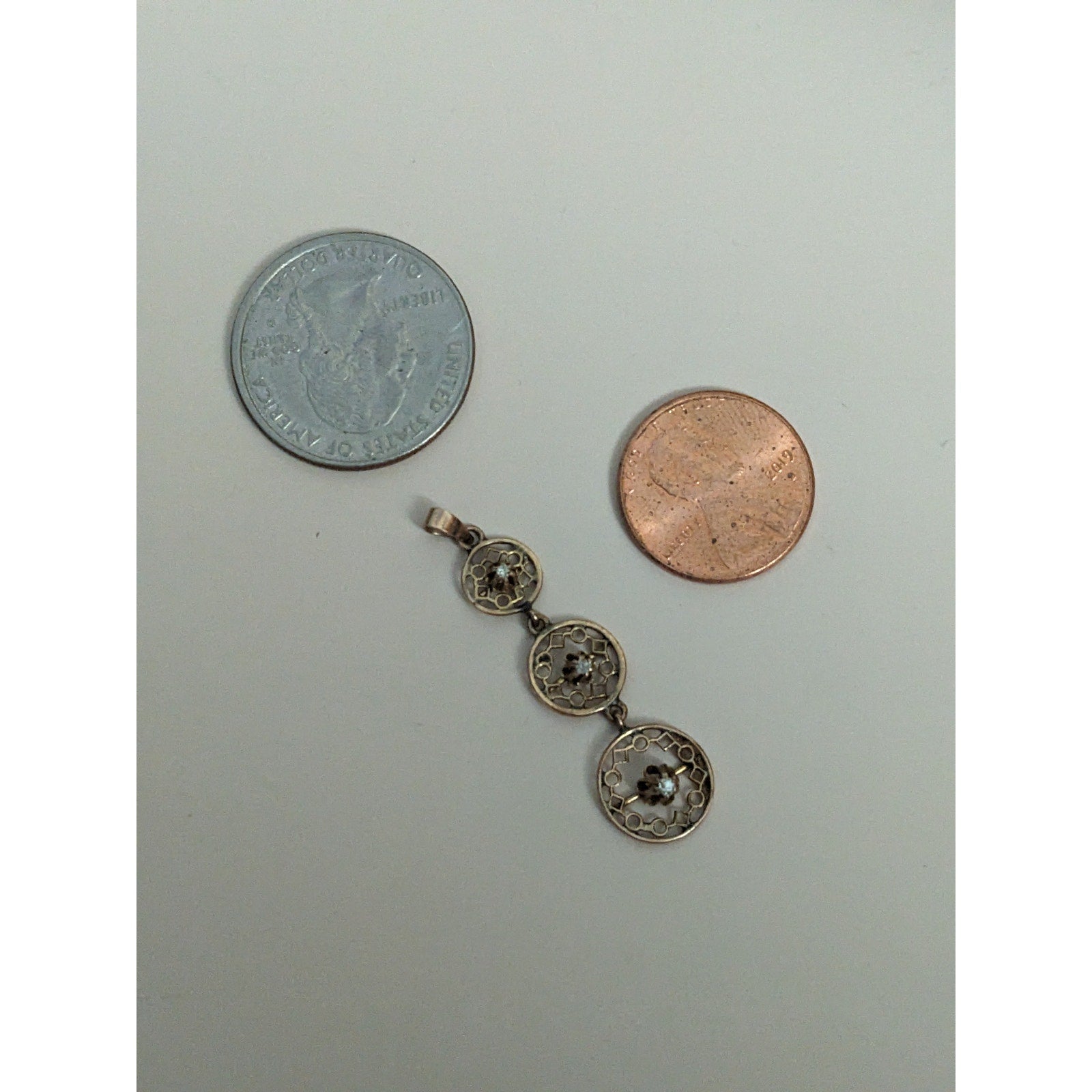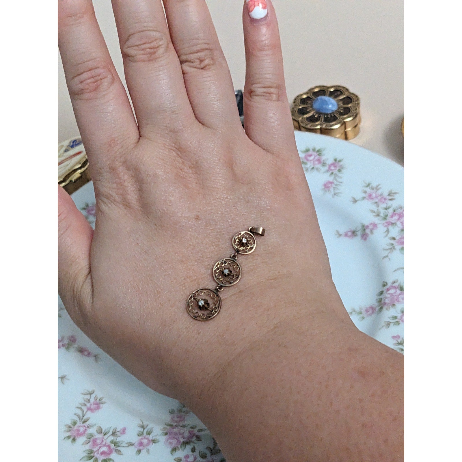 Antique 10k Gold Triple Drop Circular Filigree with Diamond Accent Pendant