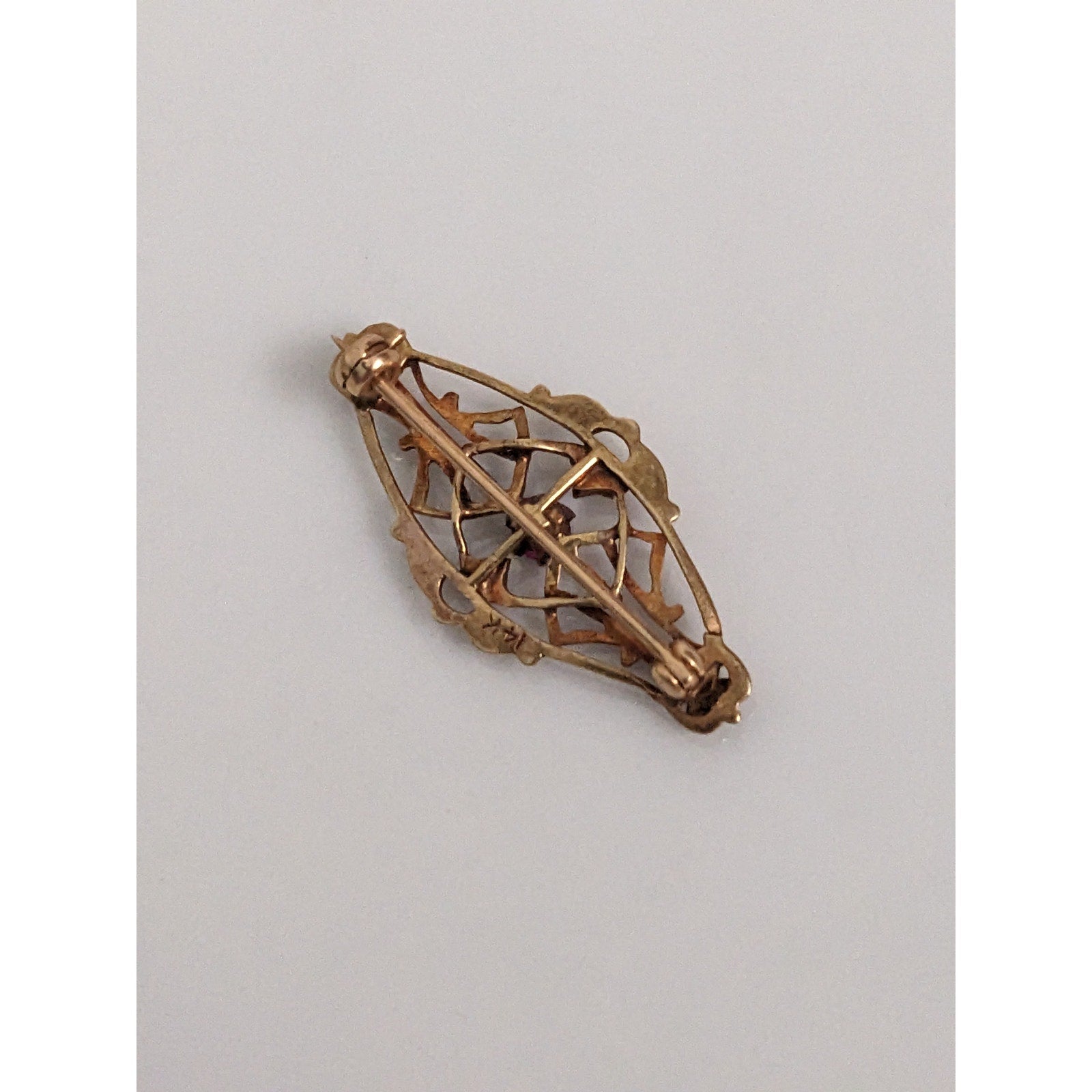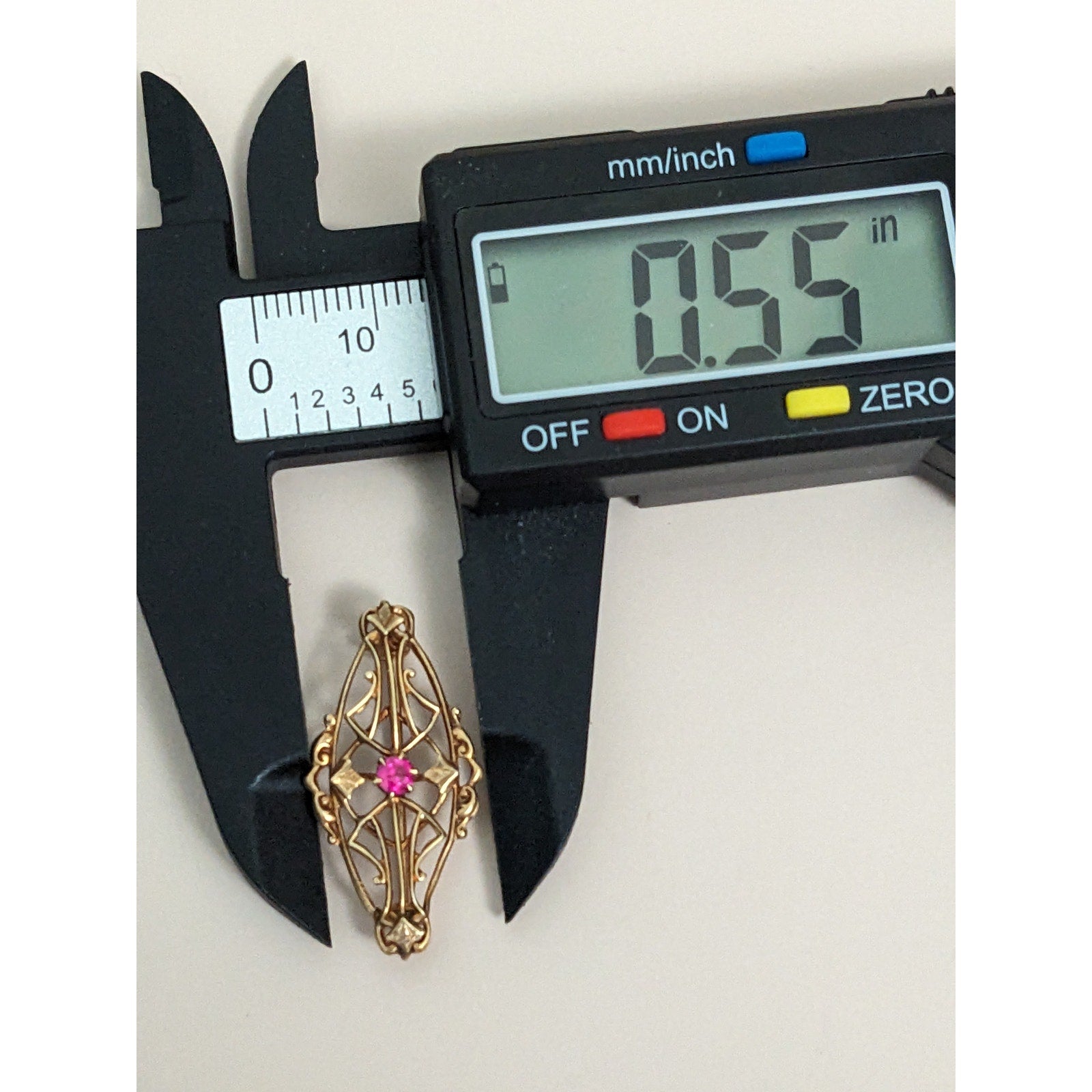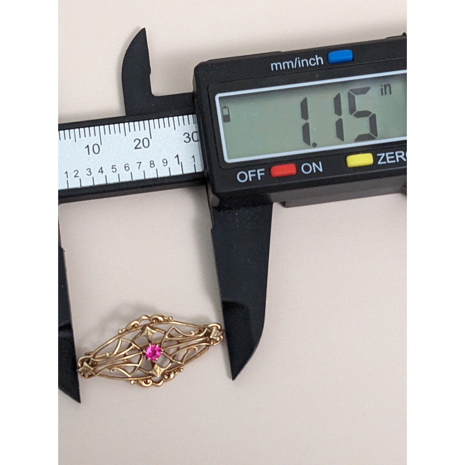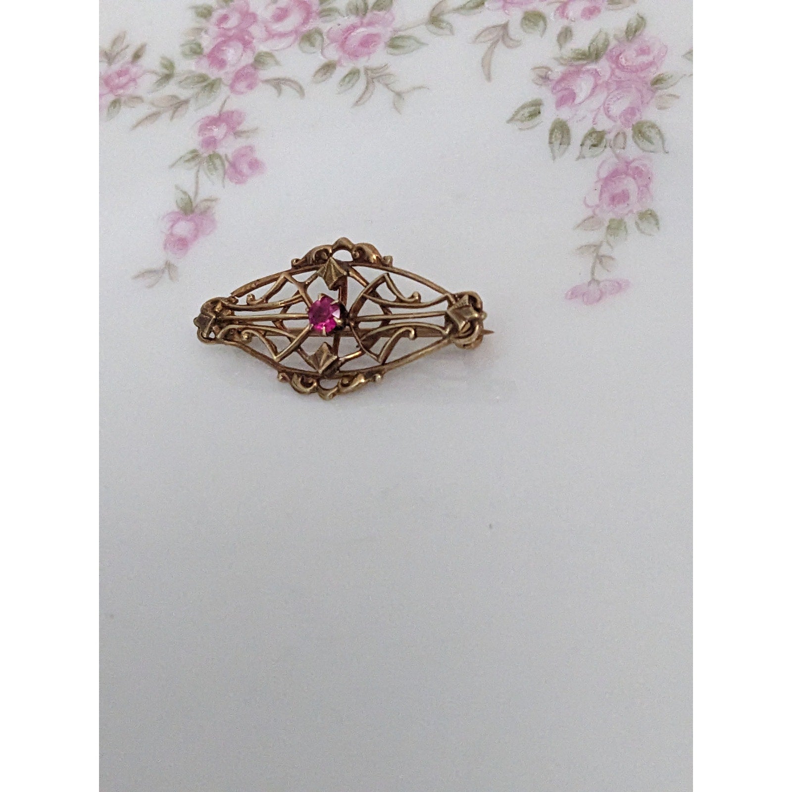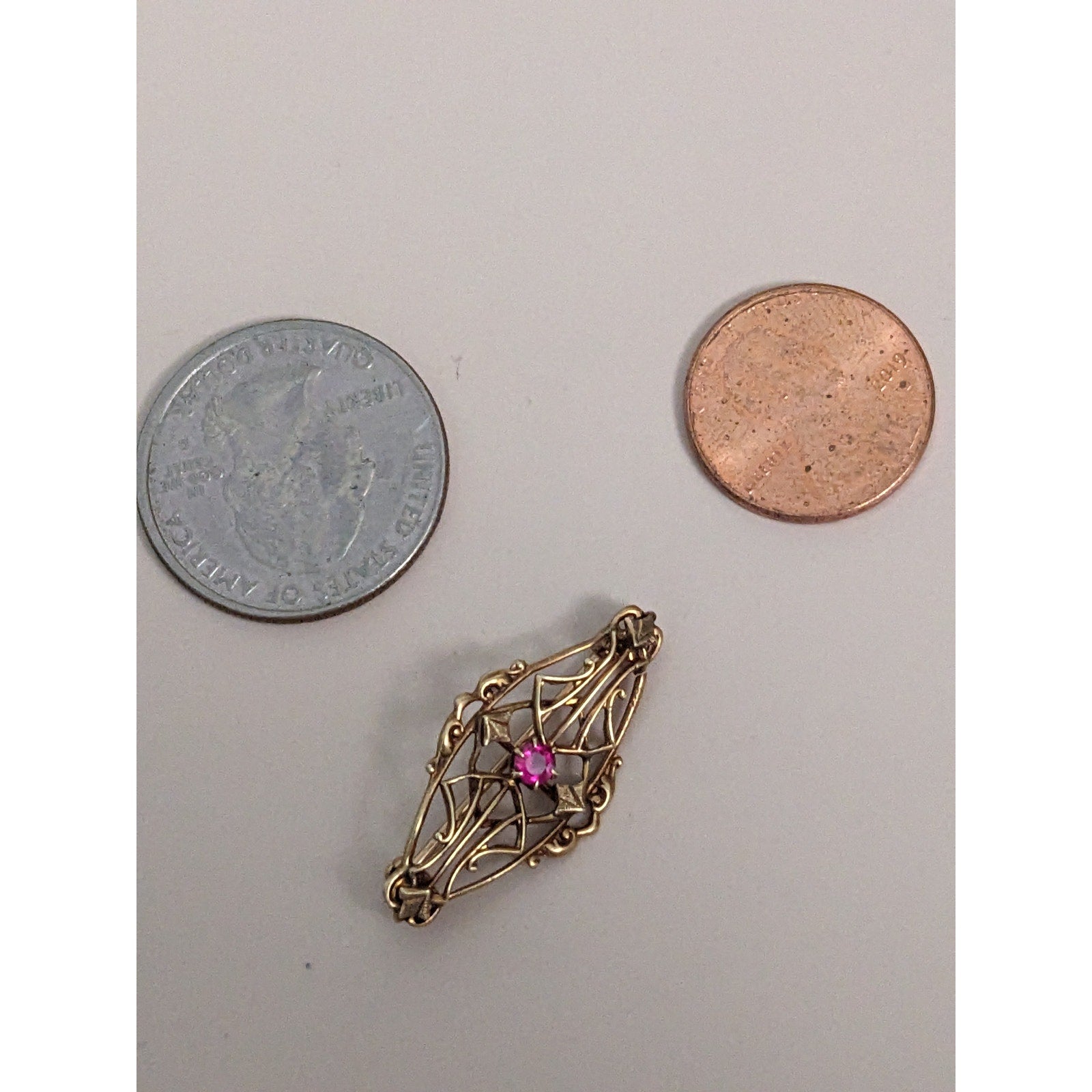 Antique 14k Gold Mini Dainty Pink Glass Victorian Flower Brooch