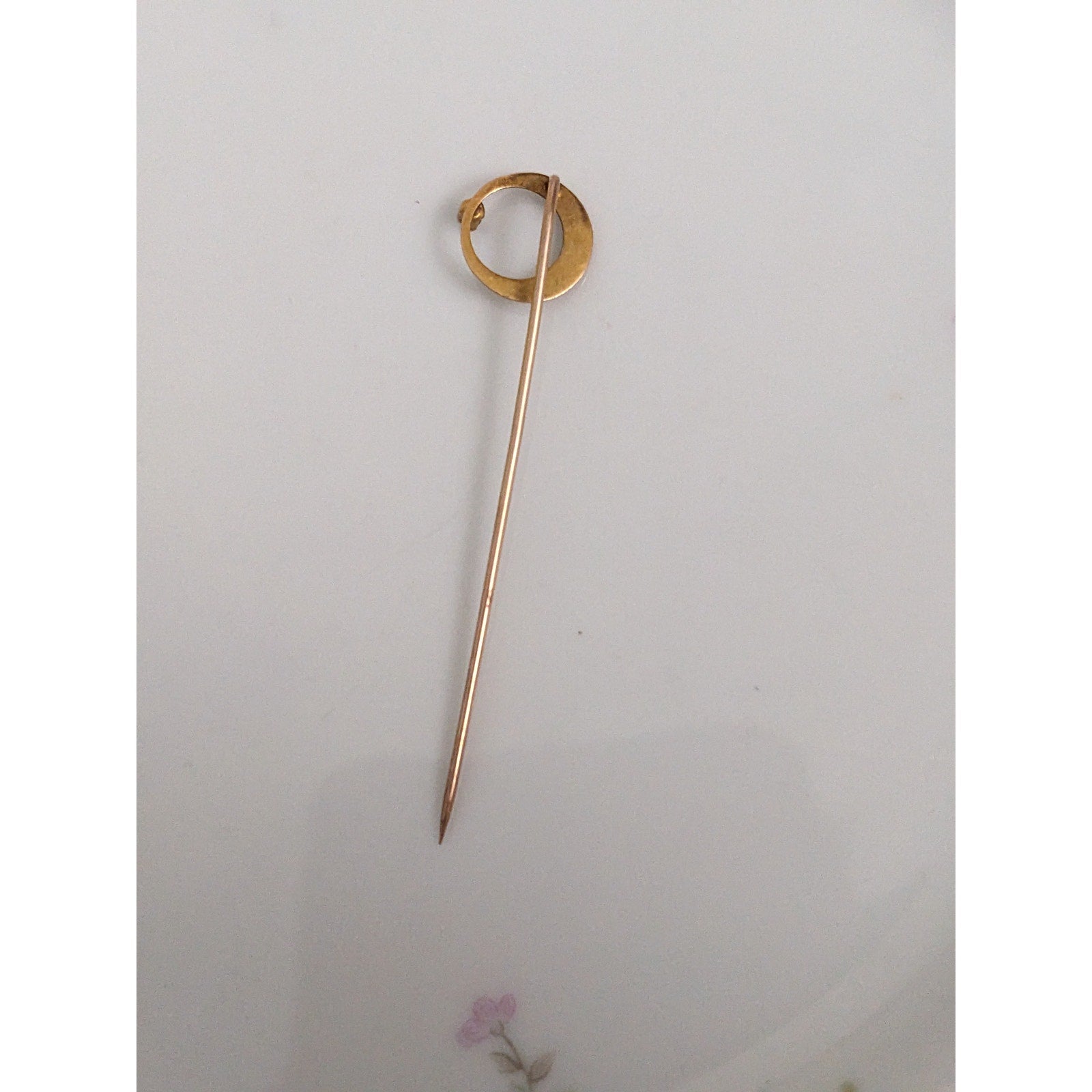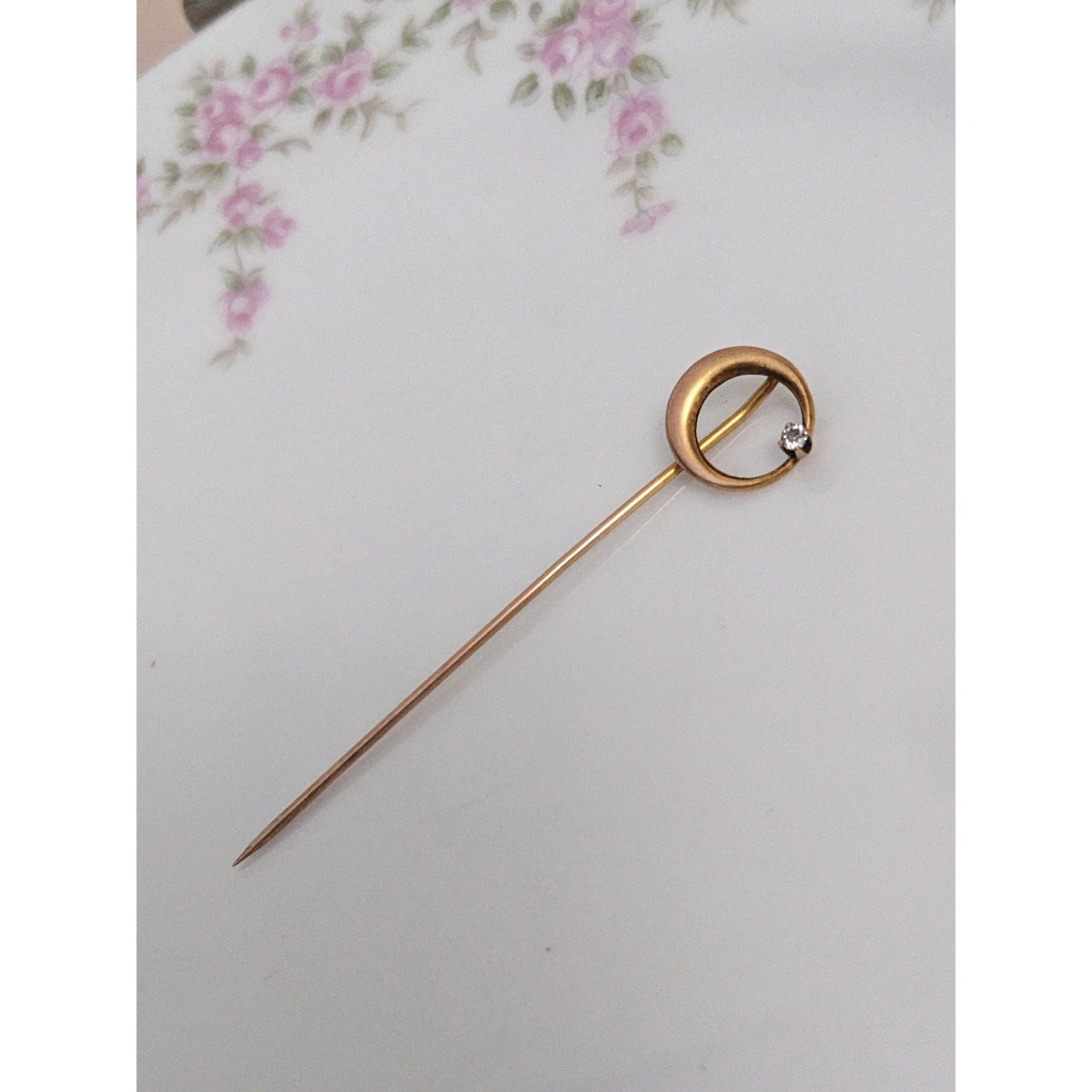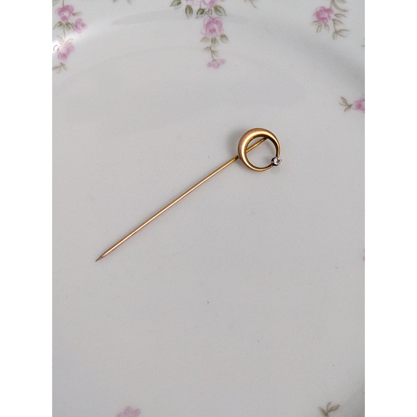 Antique Unmarked 12k Yellow Gold White Gem Crescent Moon Stick Pin