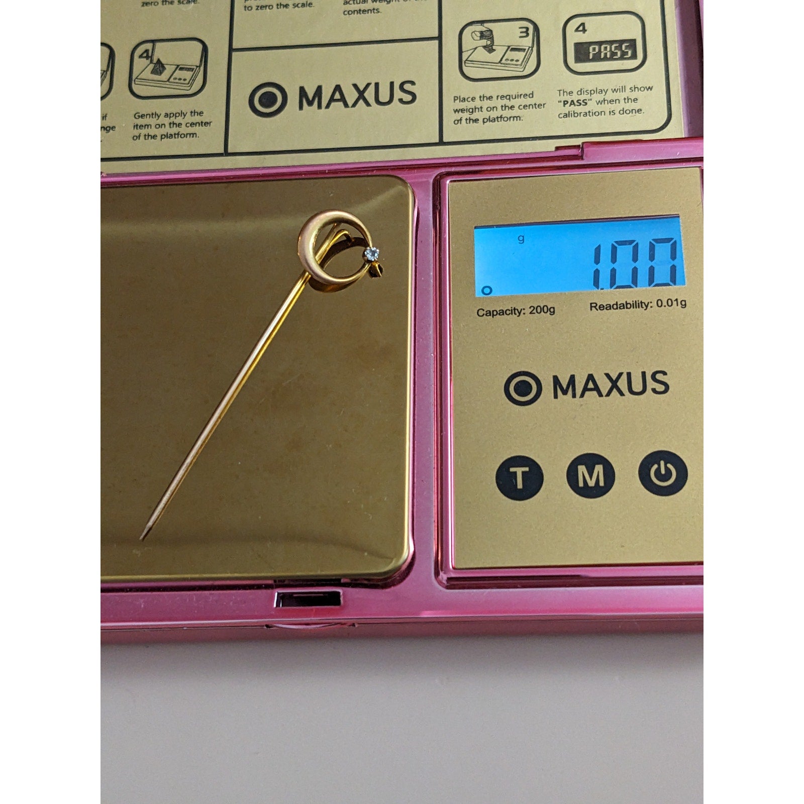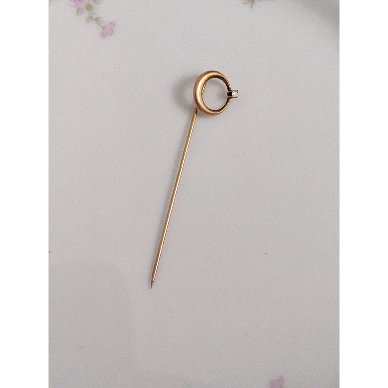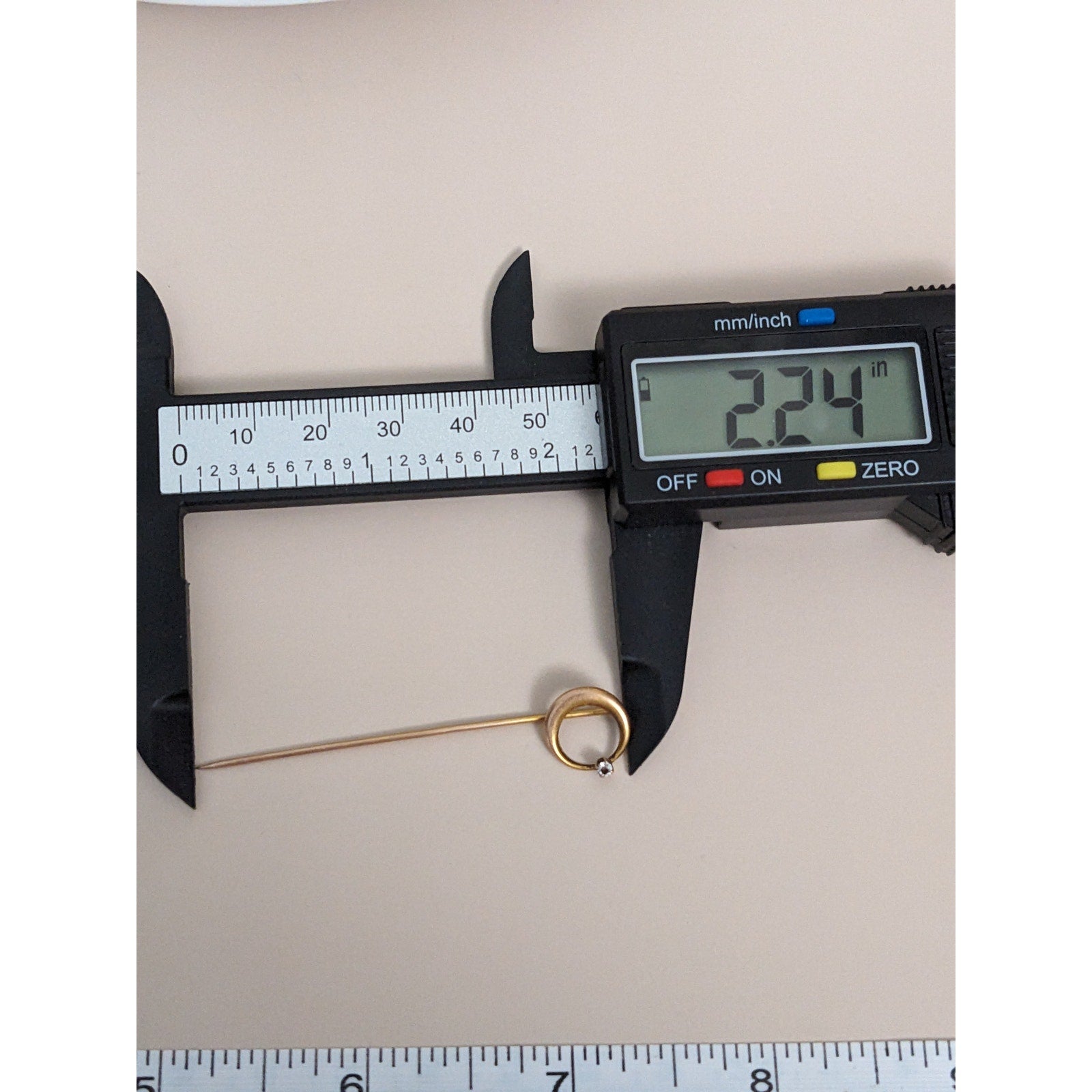 Antique Unmarked 12k Yellow Gold White Gem Crescent Moon Stick Pin