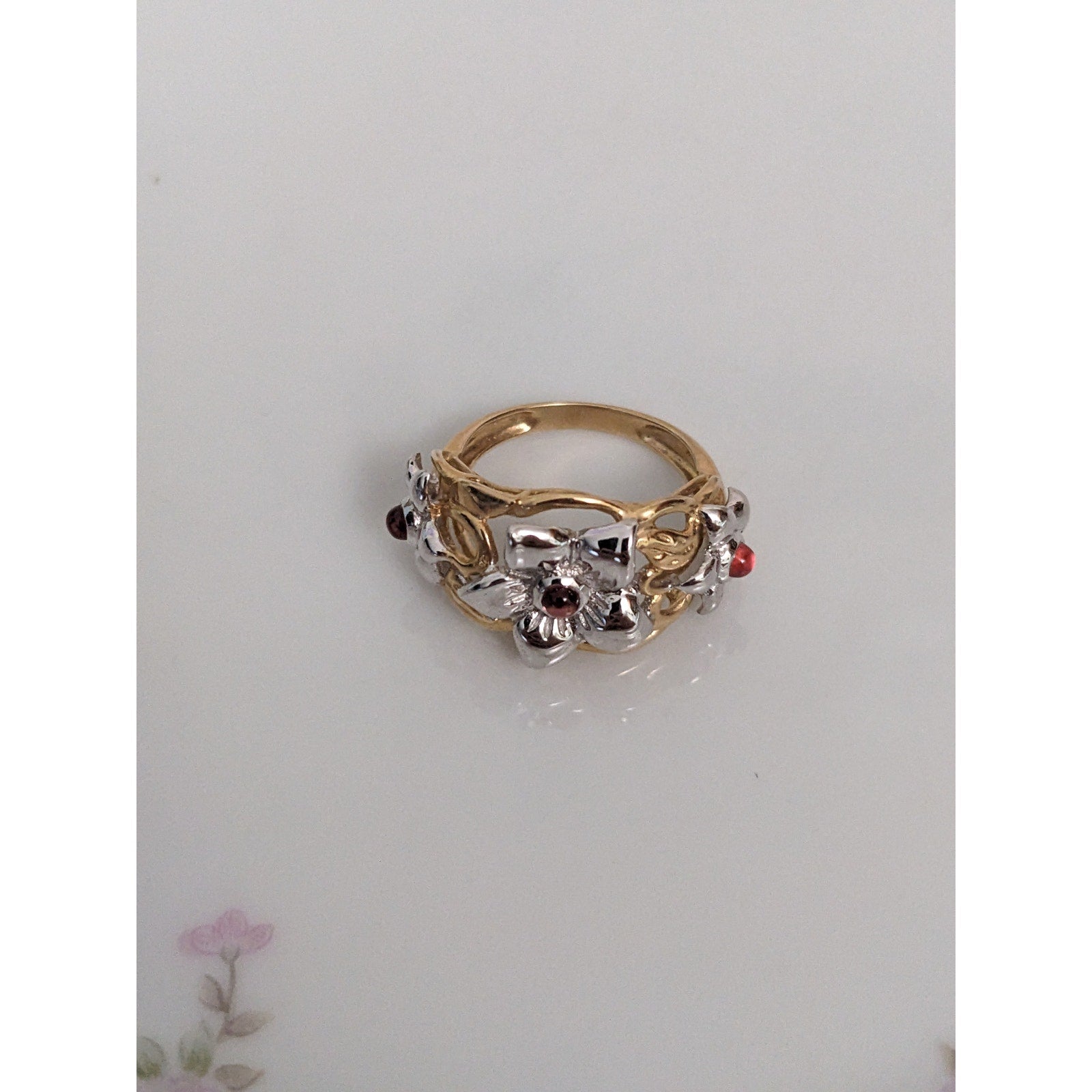 Estate 14k Yellow and White Gold Flower Ring with Pink Gems Size 5 US