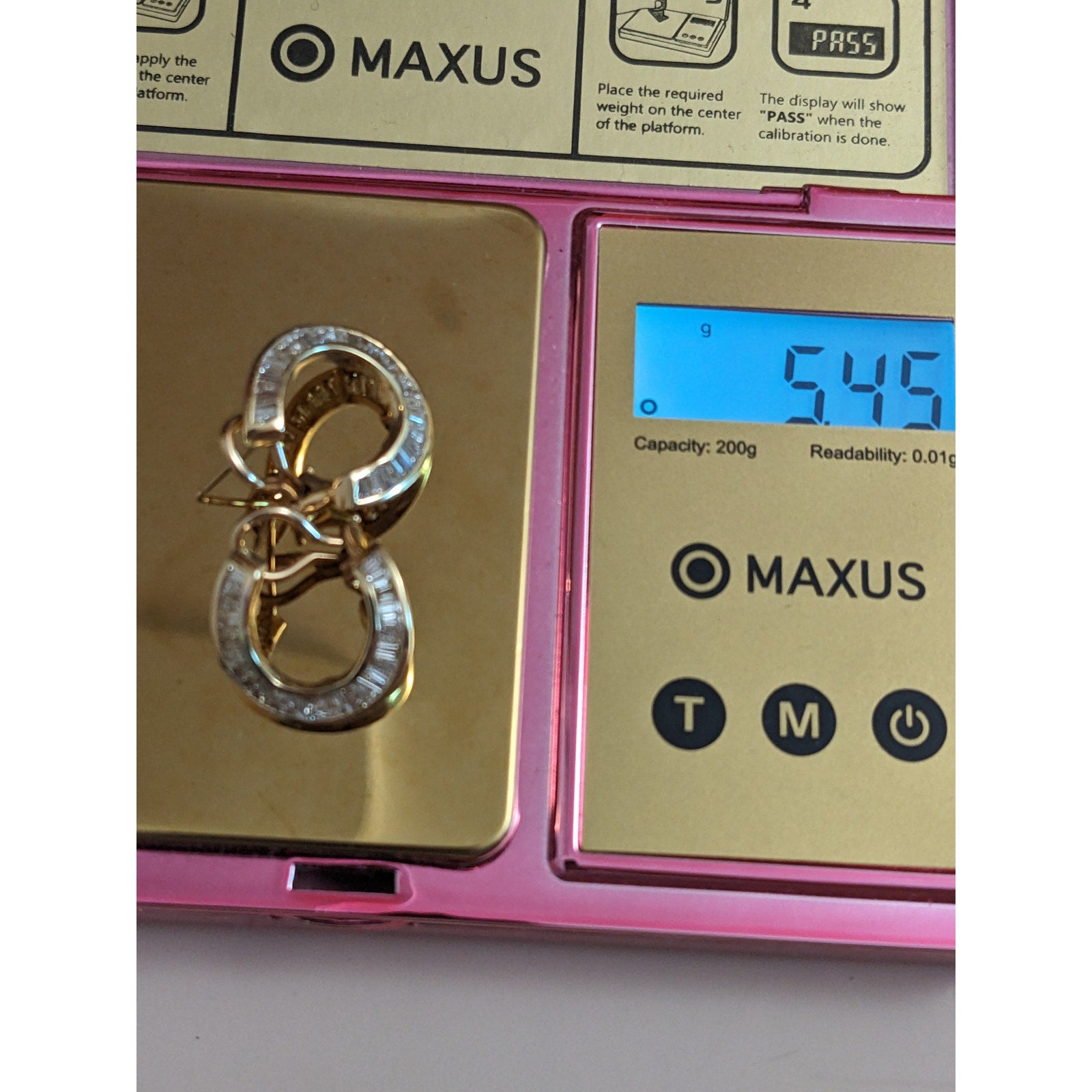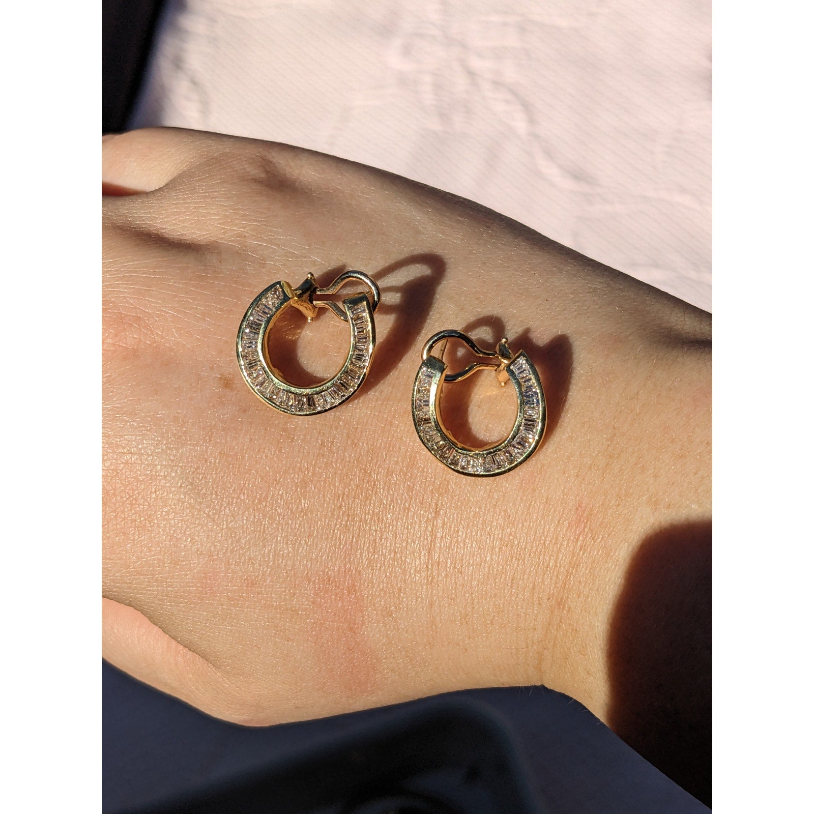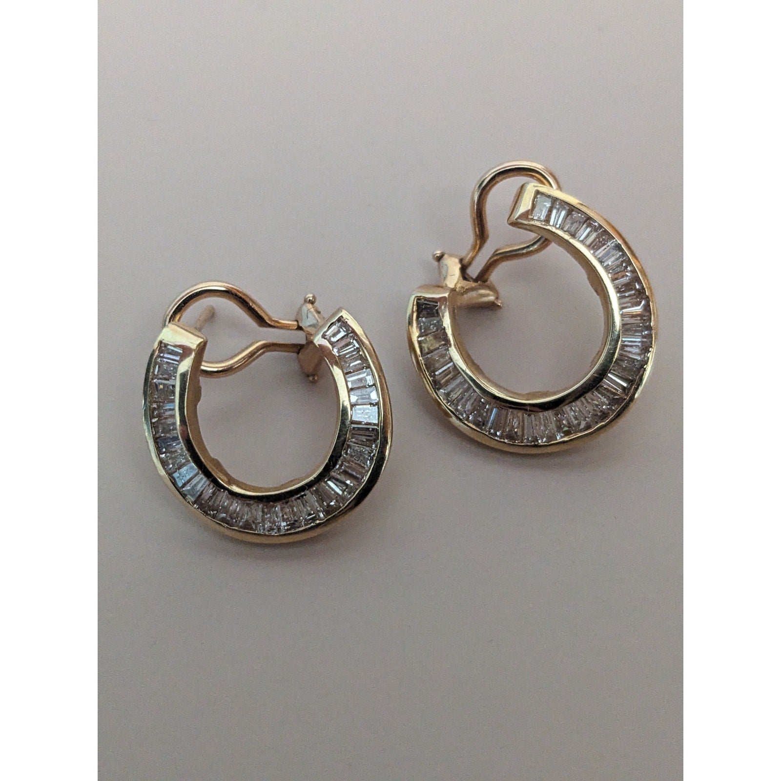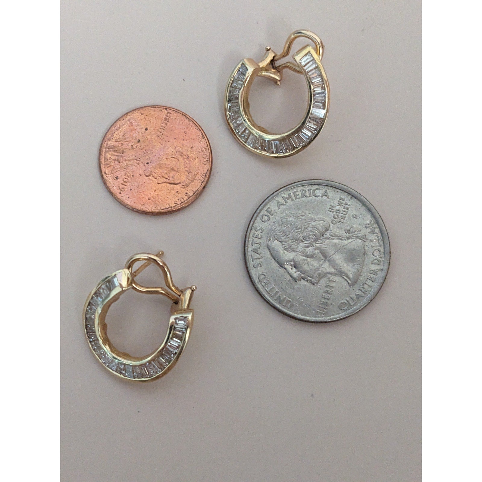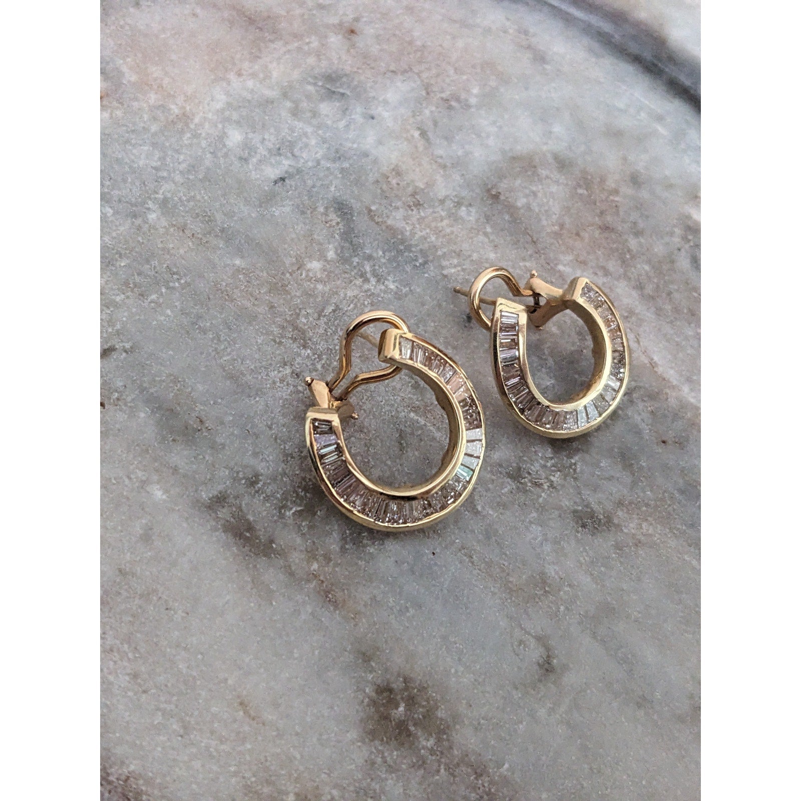 Estate 14k Yellow Gold Baguette Diamonds Omega Backing Earrings