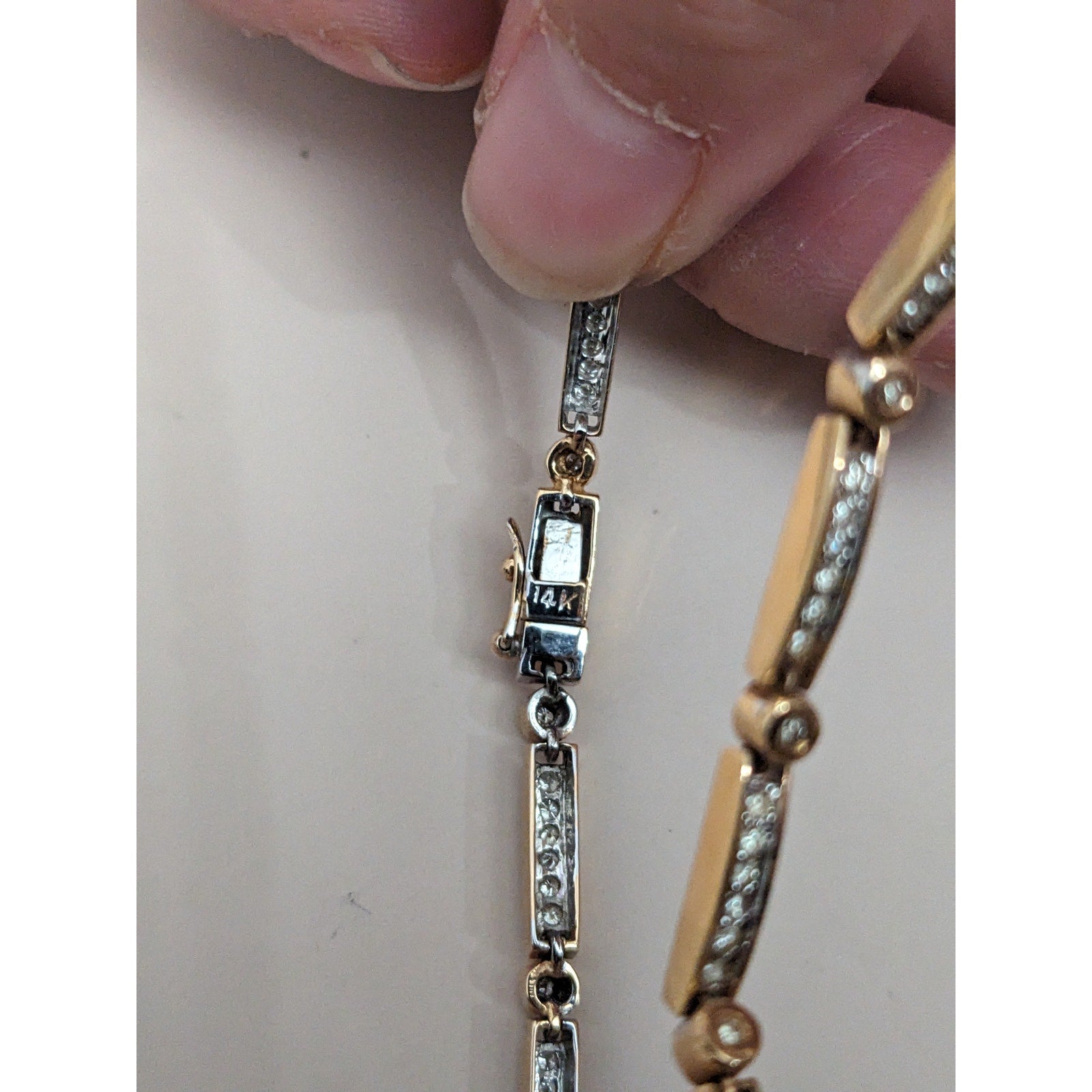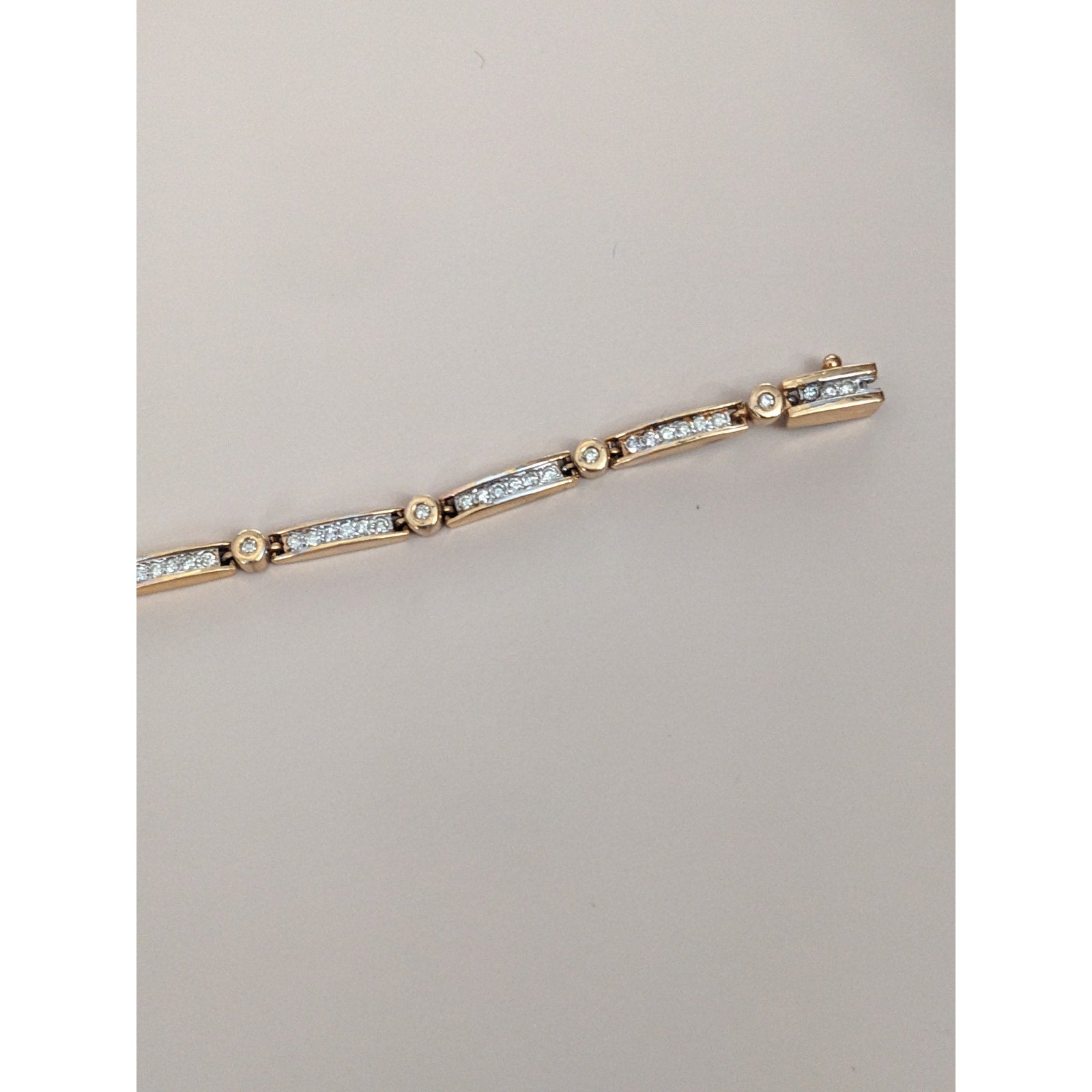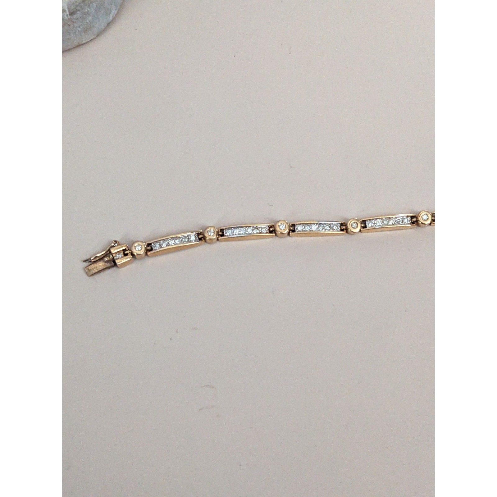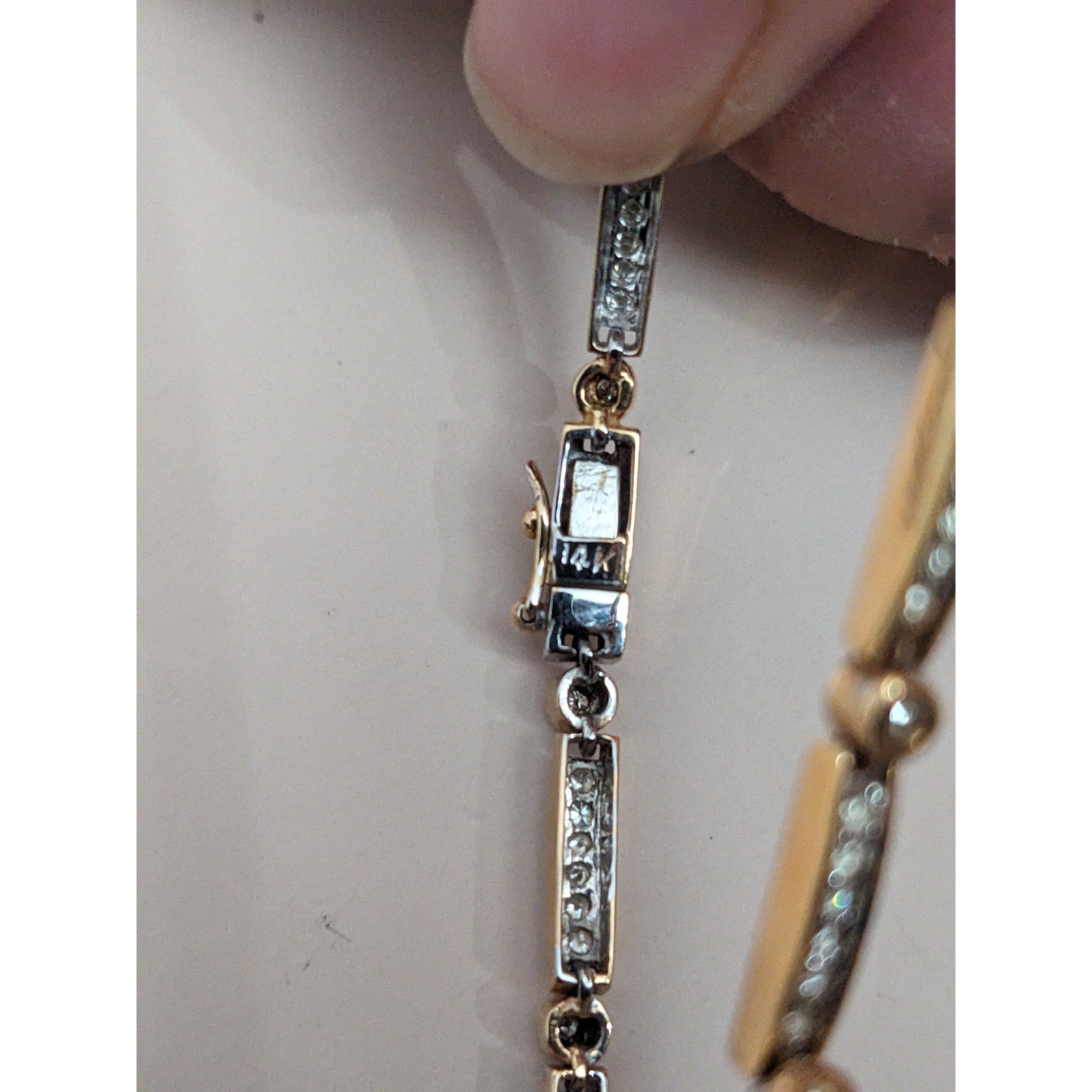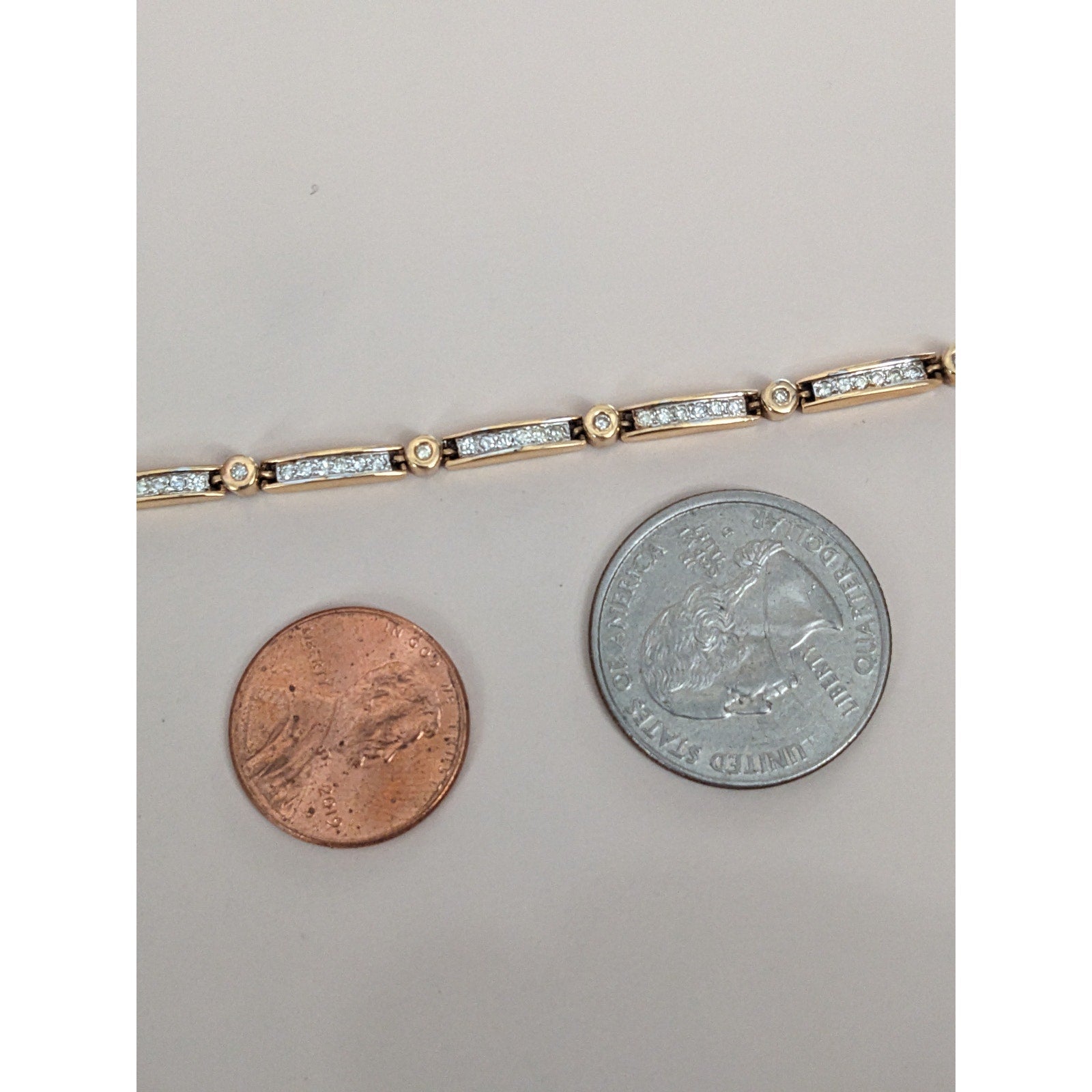 Estate 14k Yellow Gold Light Dainty Diamond Bar Link Bracelet 8 in