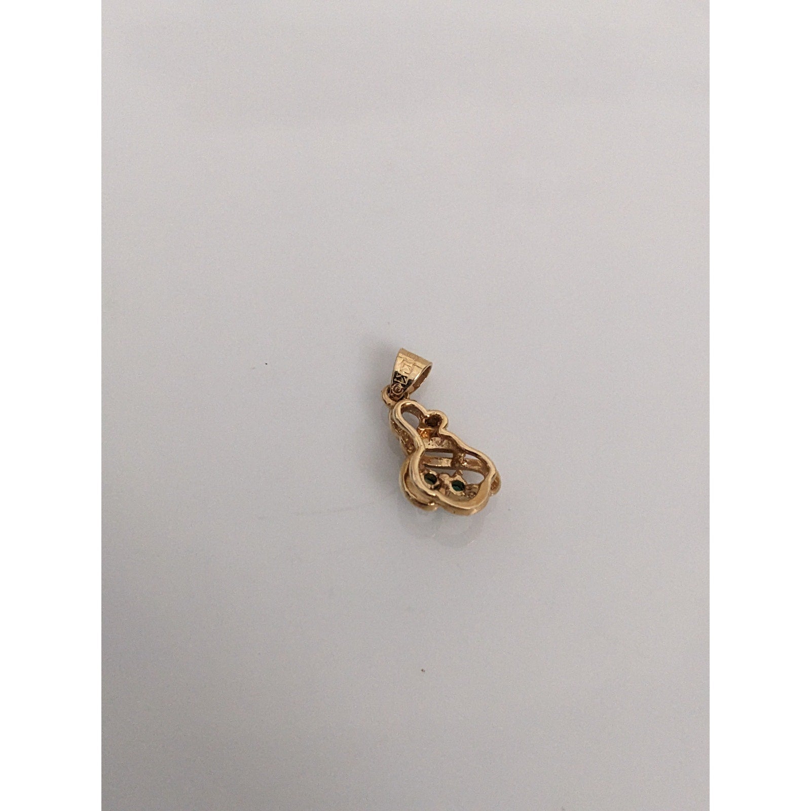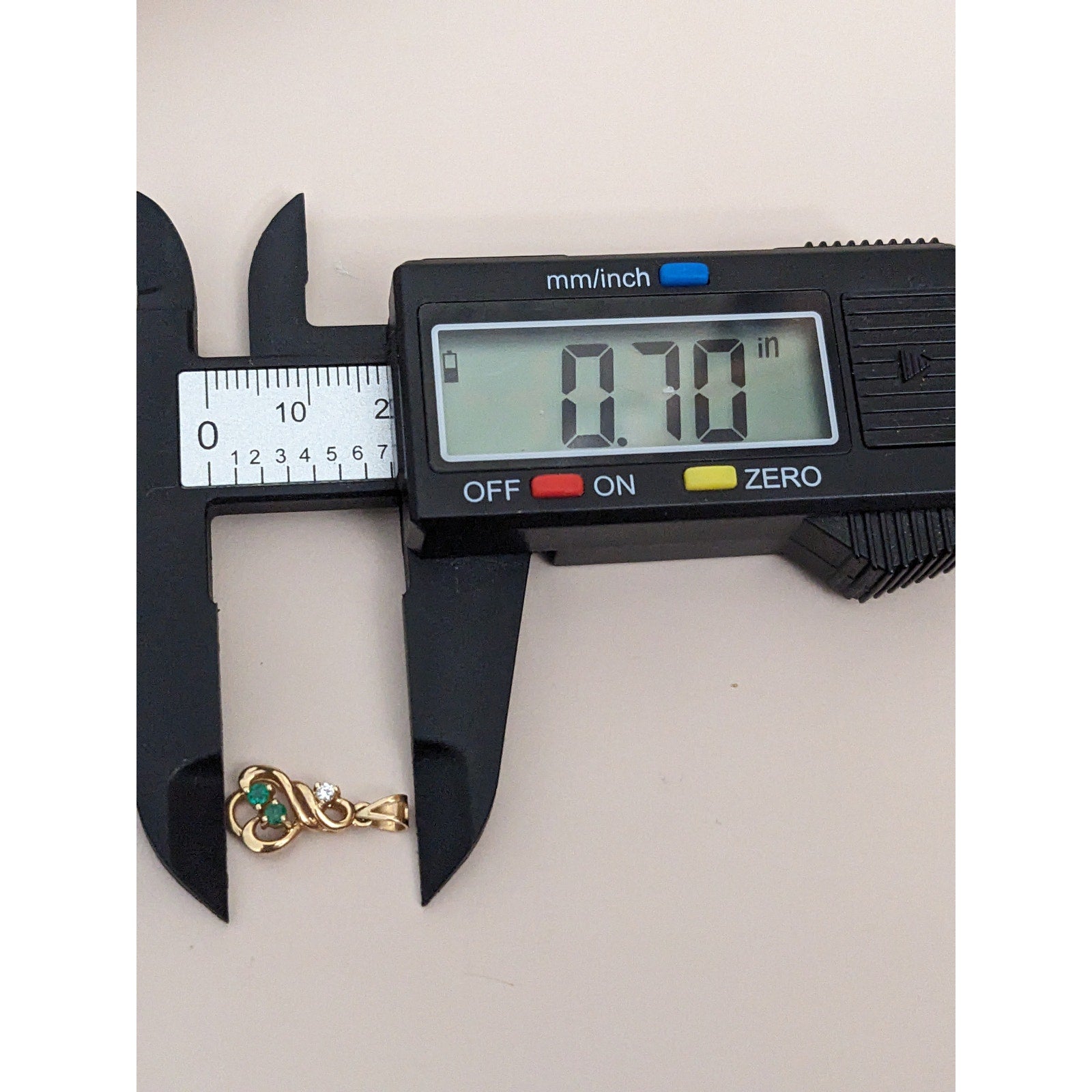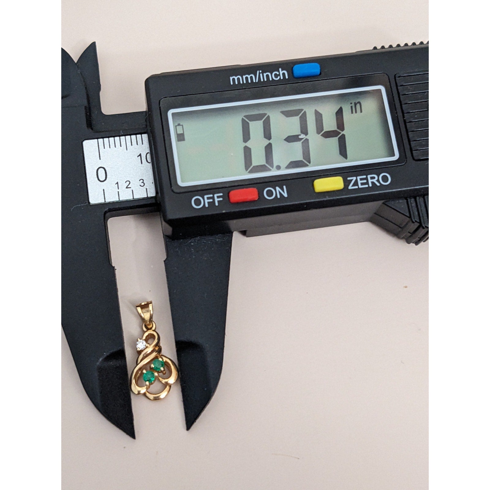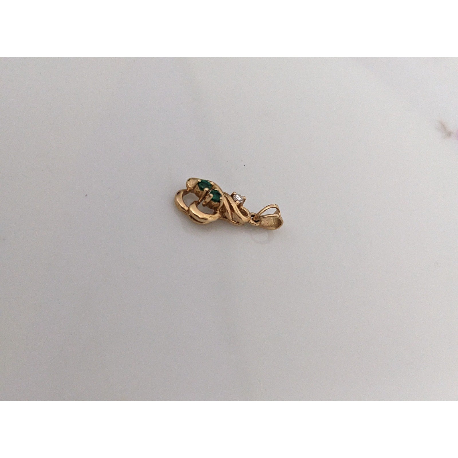 Estate 14k Yellow Gold Mini Dainty Pendant with Green and White Gems