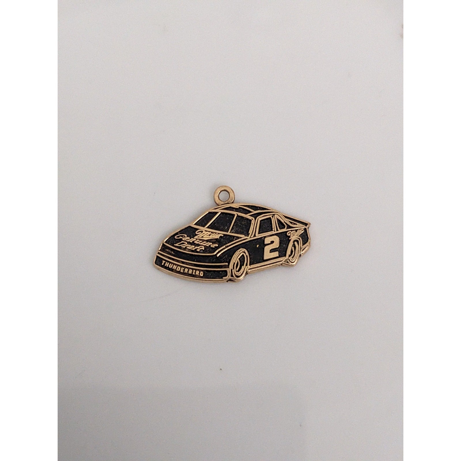 Estate 14k Yellow Gold with Black Enamel Nascar Thunderbird Pendant