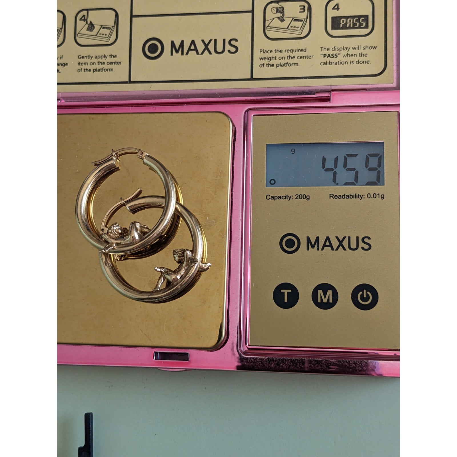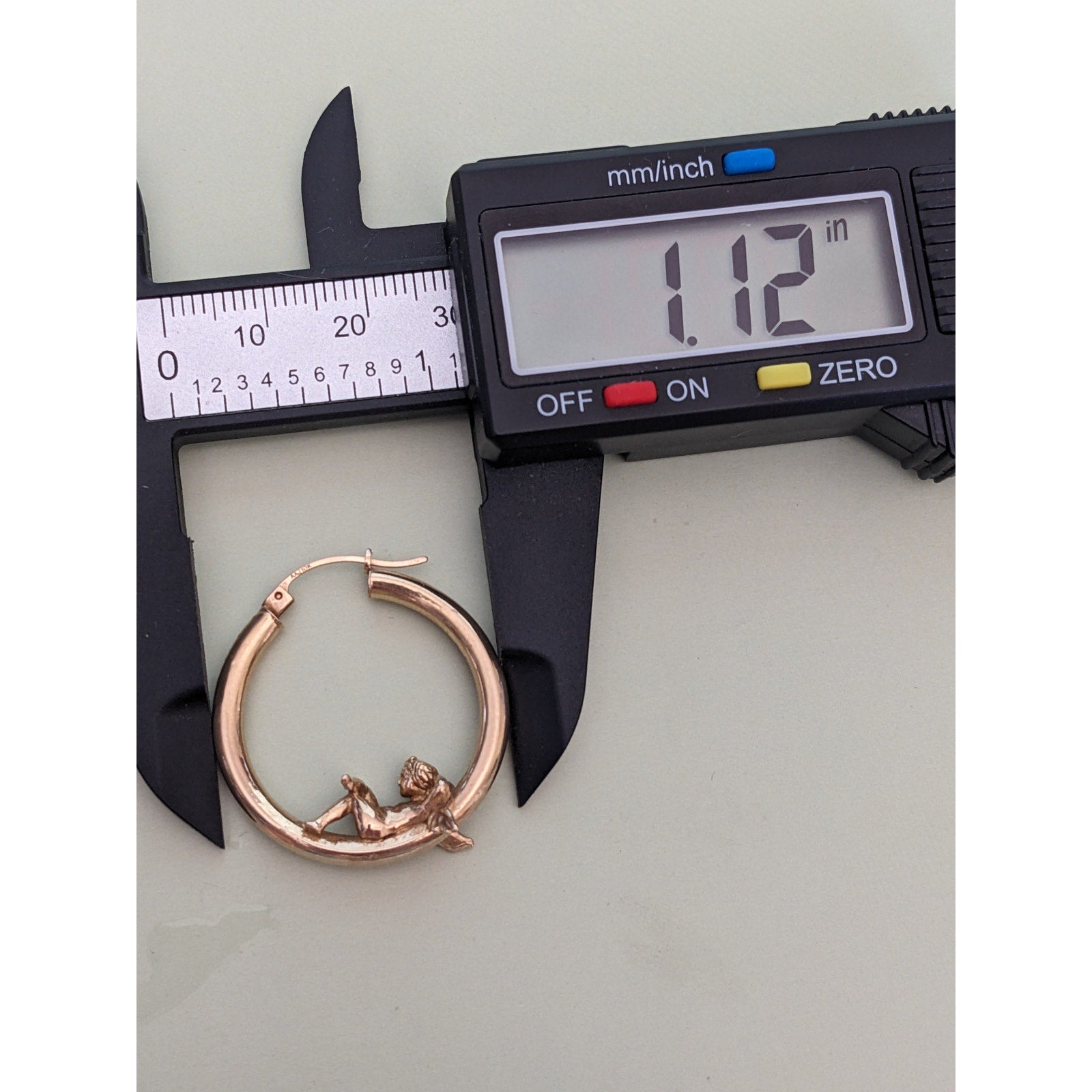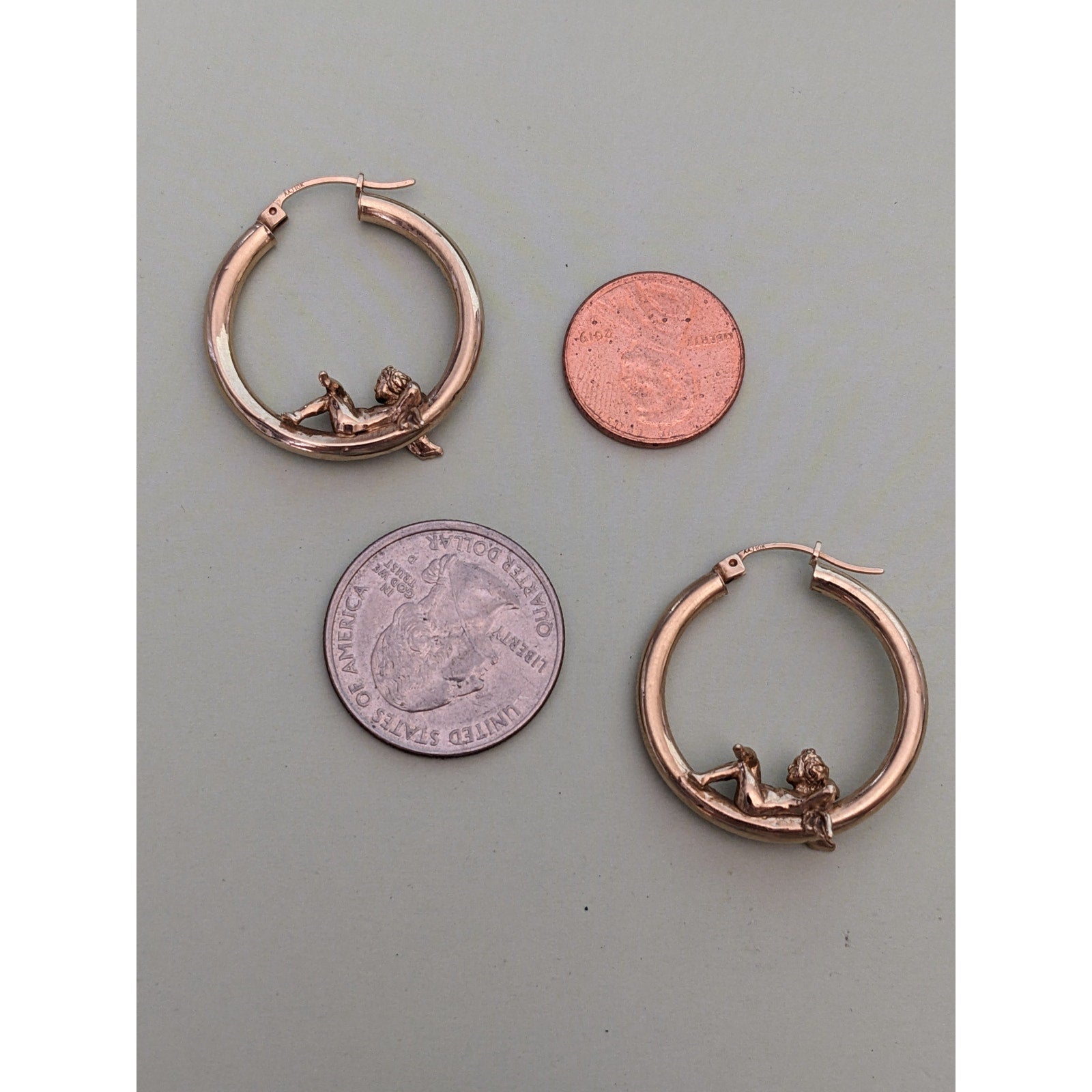 FLAW Vintage 10k Yellow Gold Cherub Angels Laying on Hollow Hoop Earrings