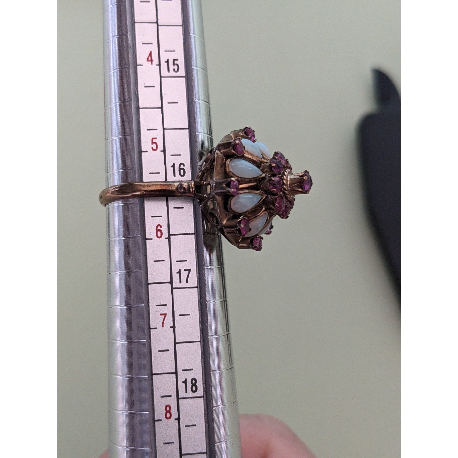 FLAW Vintage 10k Yellow Gold Thai Princess Harem Opal Cluster Ring Size 5.5US