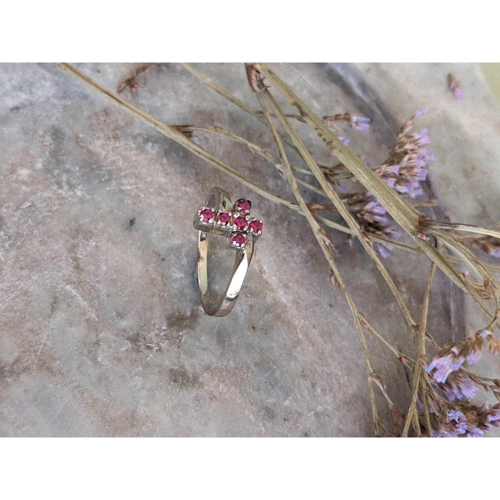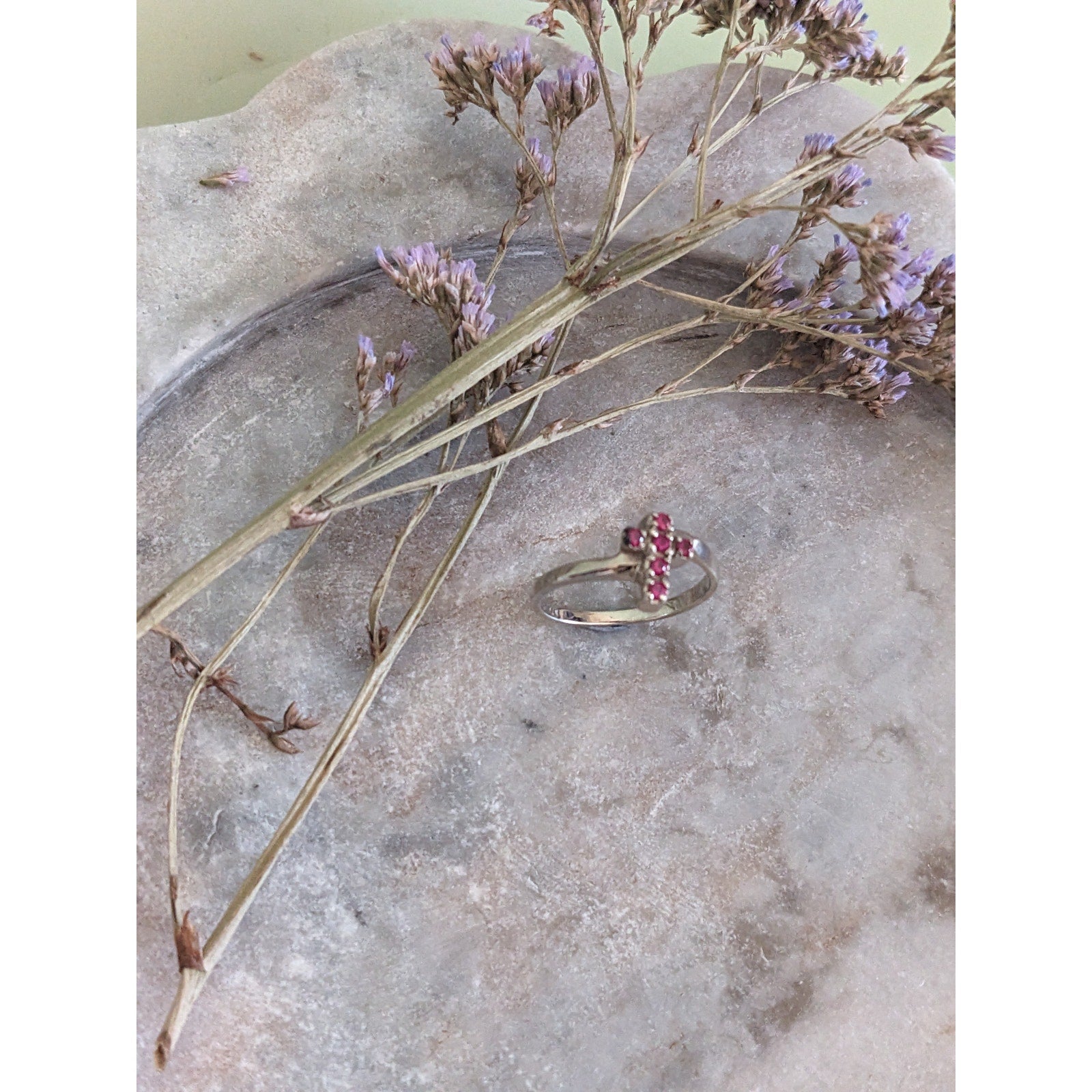 Vintage 10k White Gold Spinel Cross Shaped Ring Size 6