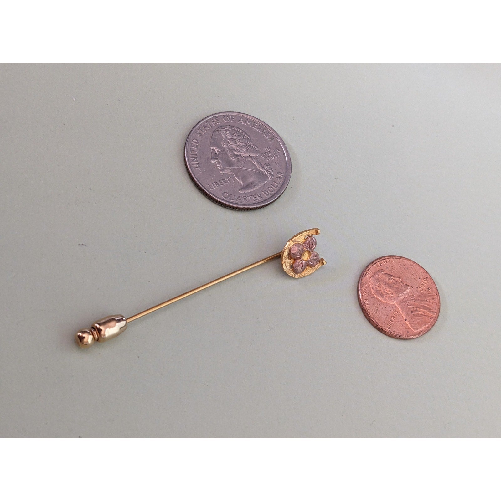 Vintage 10k Yellow and Rose Gold Flower on Horseshoe Stick Pin