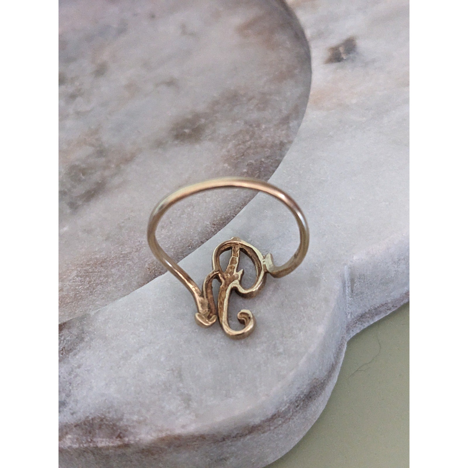 Vintage 10k Yellow Gold "B" Monogram Cursive Letter Ring Size 7.75