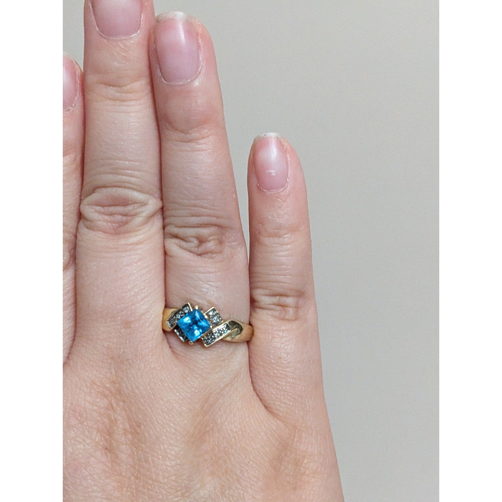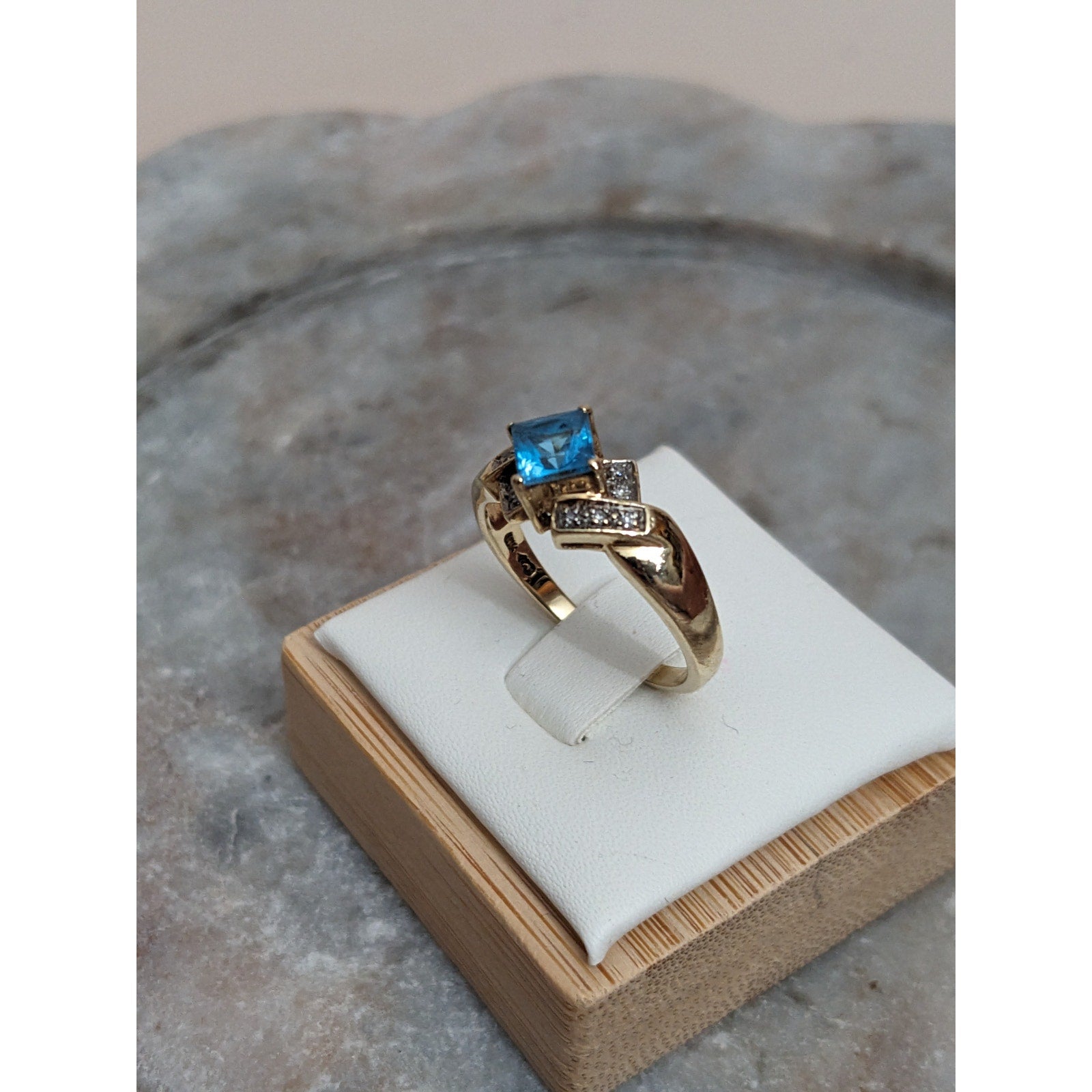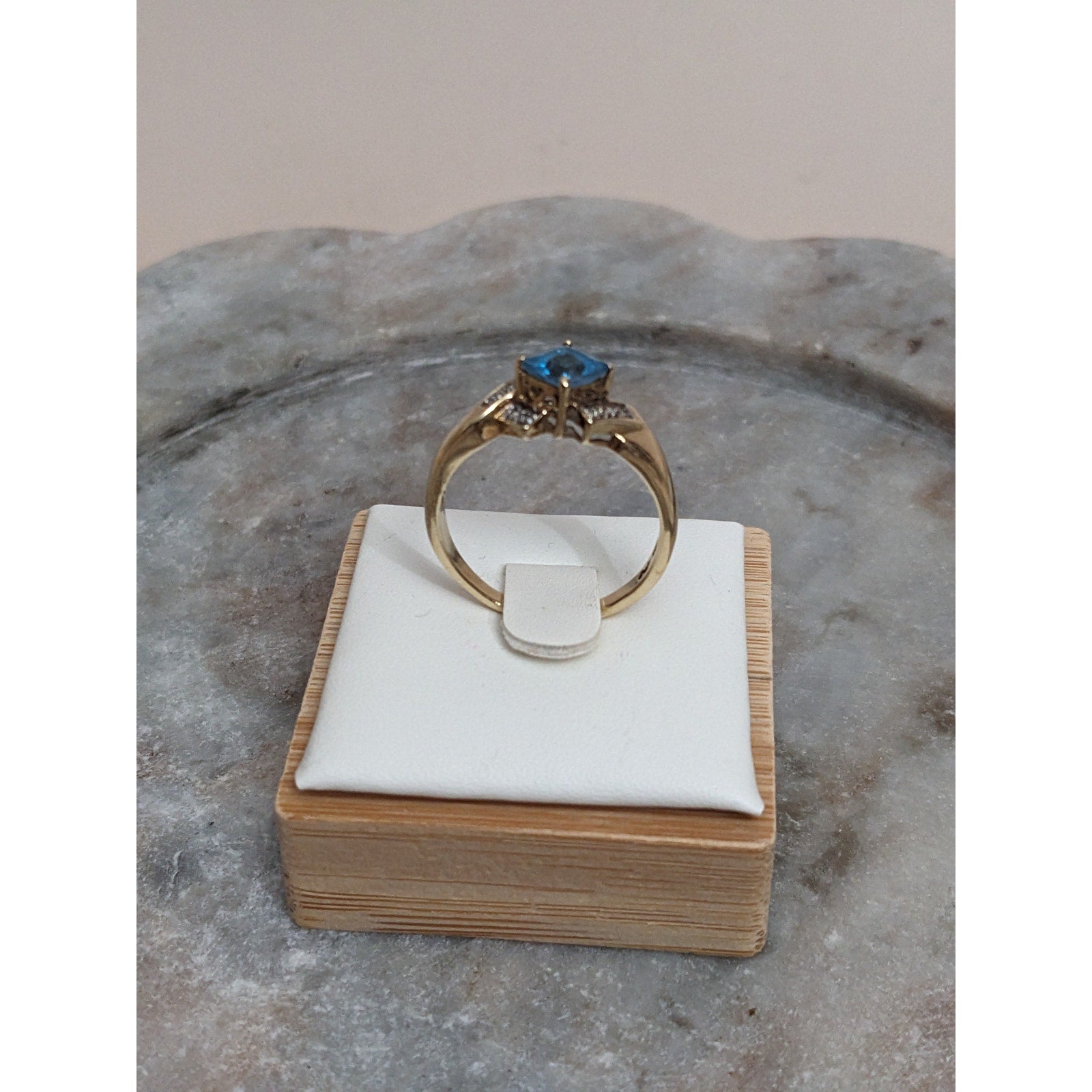 Vintage 10k Yellow Gold Blue Topaz and Diamond Accent Ring Size 8