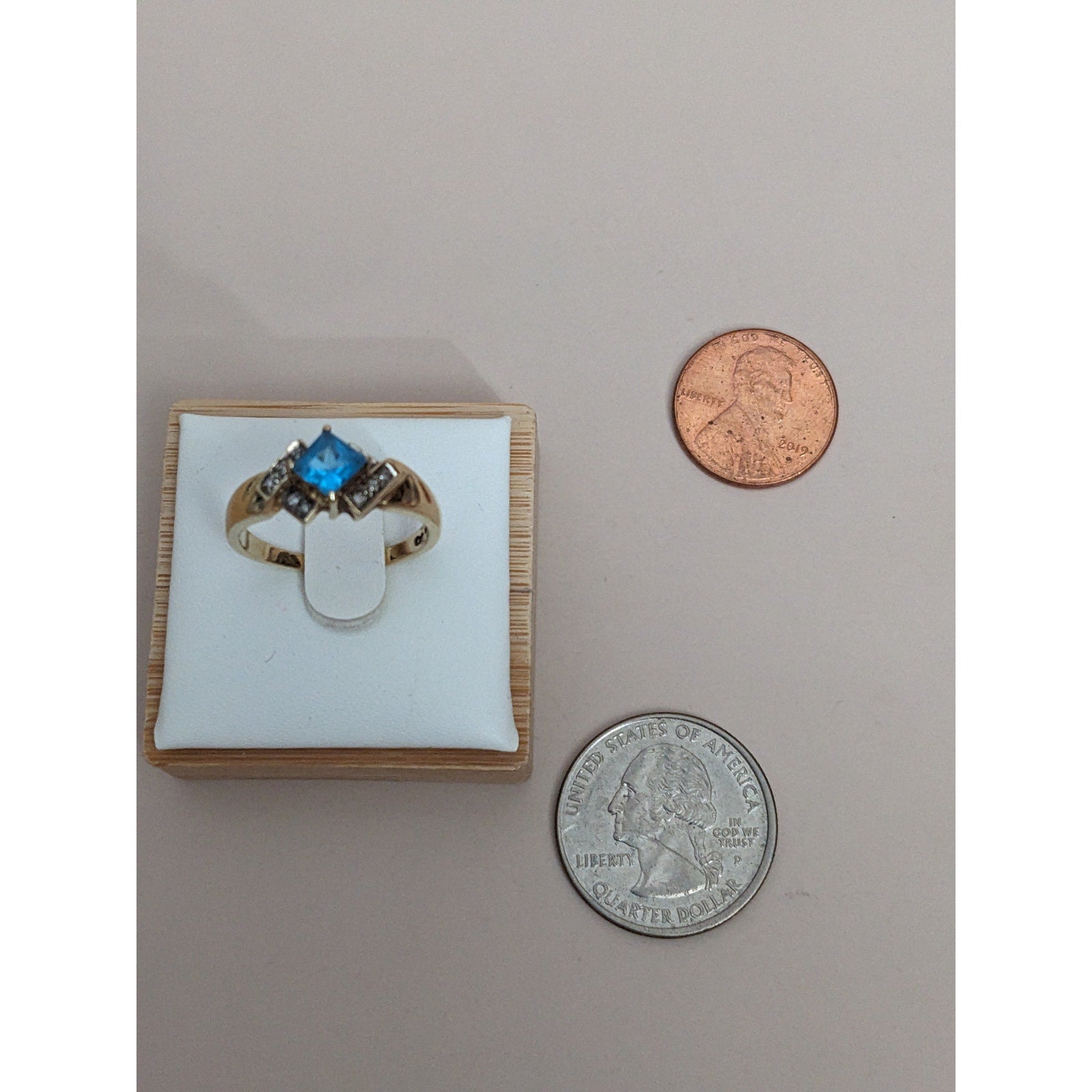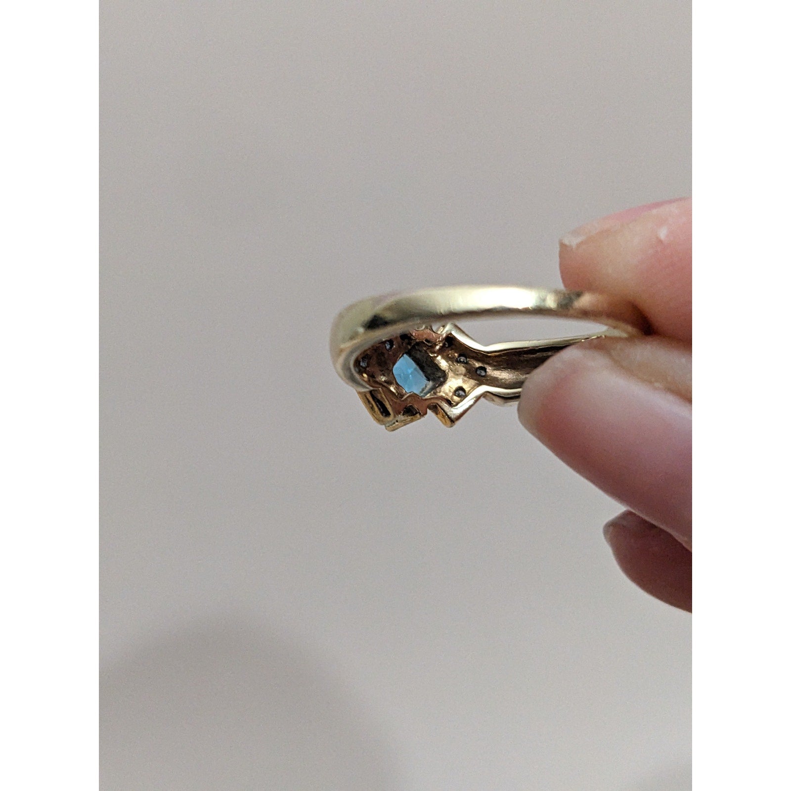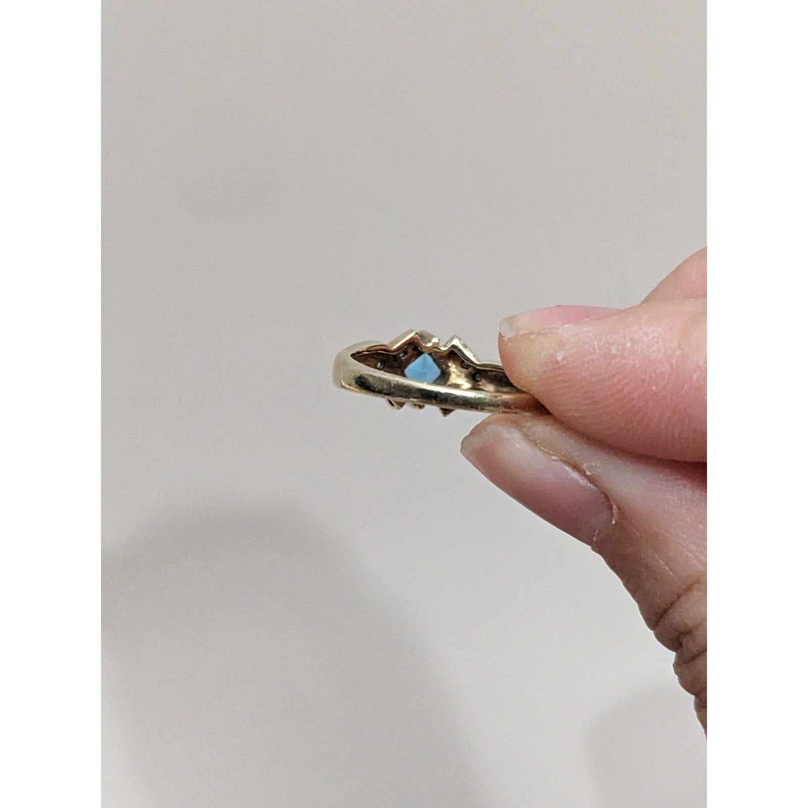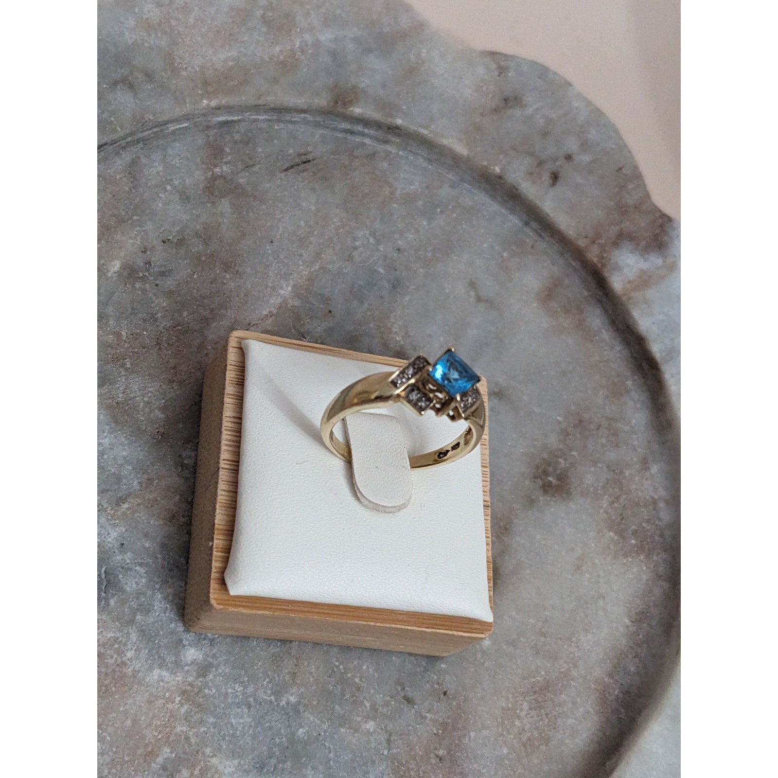 Vintage 10k Yellow Gold Blue Topaz and Diamond Accent Ring Size 8