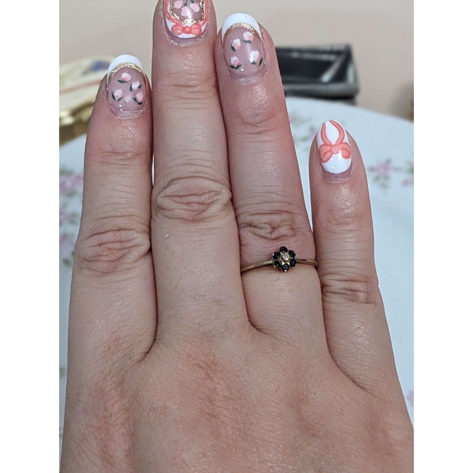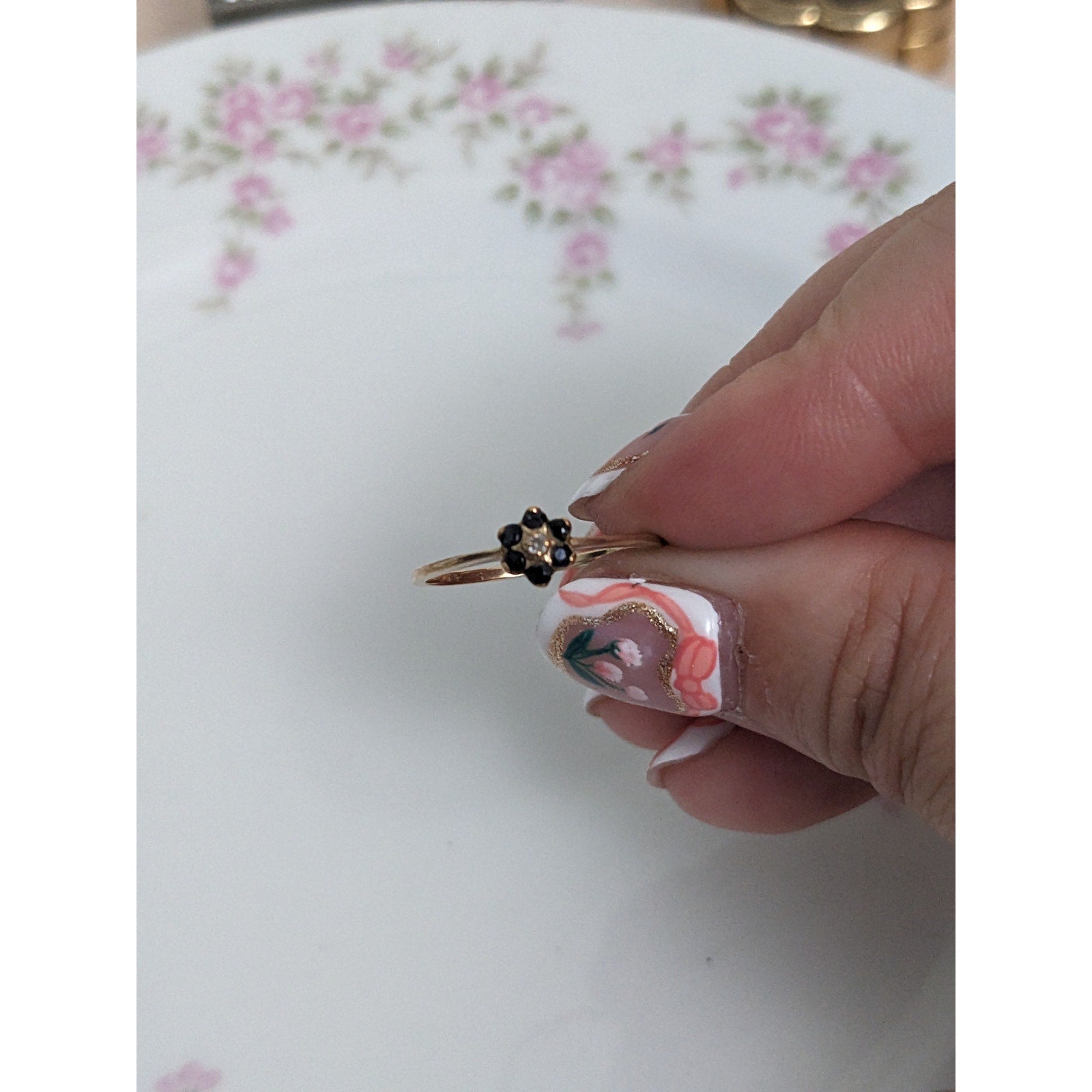 Vintage 10k Yellow Gold Mini Dainty Spinel Cluster Flower Ring Size 6.25