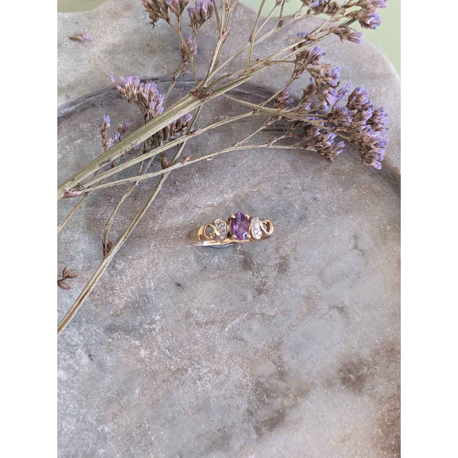 Vintage 10k Yellow Gold Purple Amethyst Ring White Gold Accents & Heart Cutouts