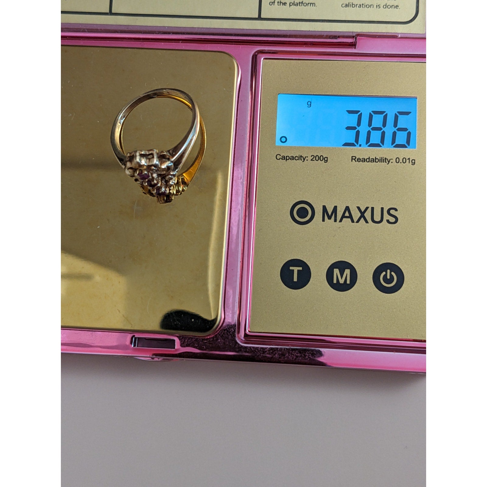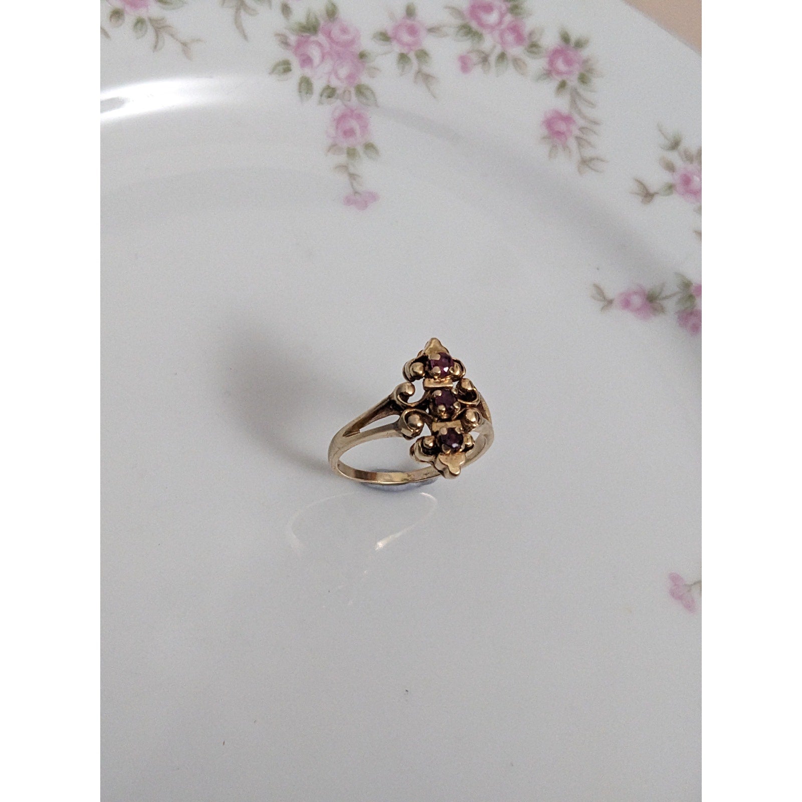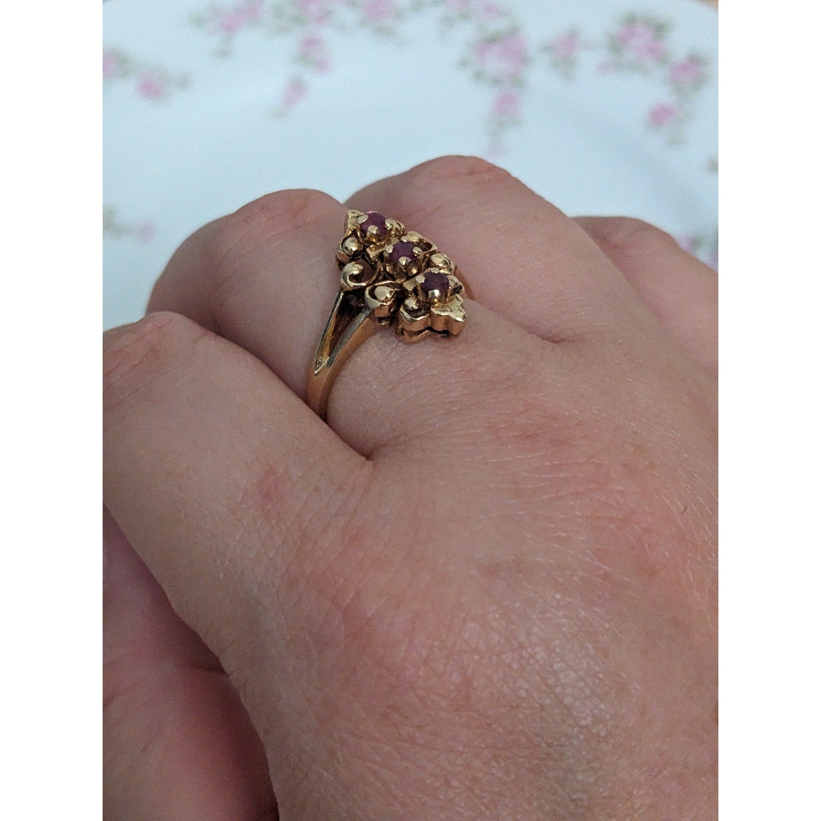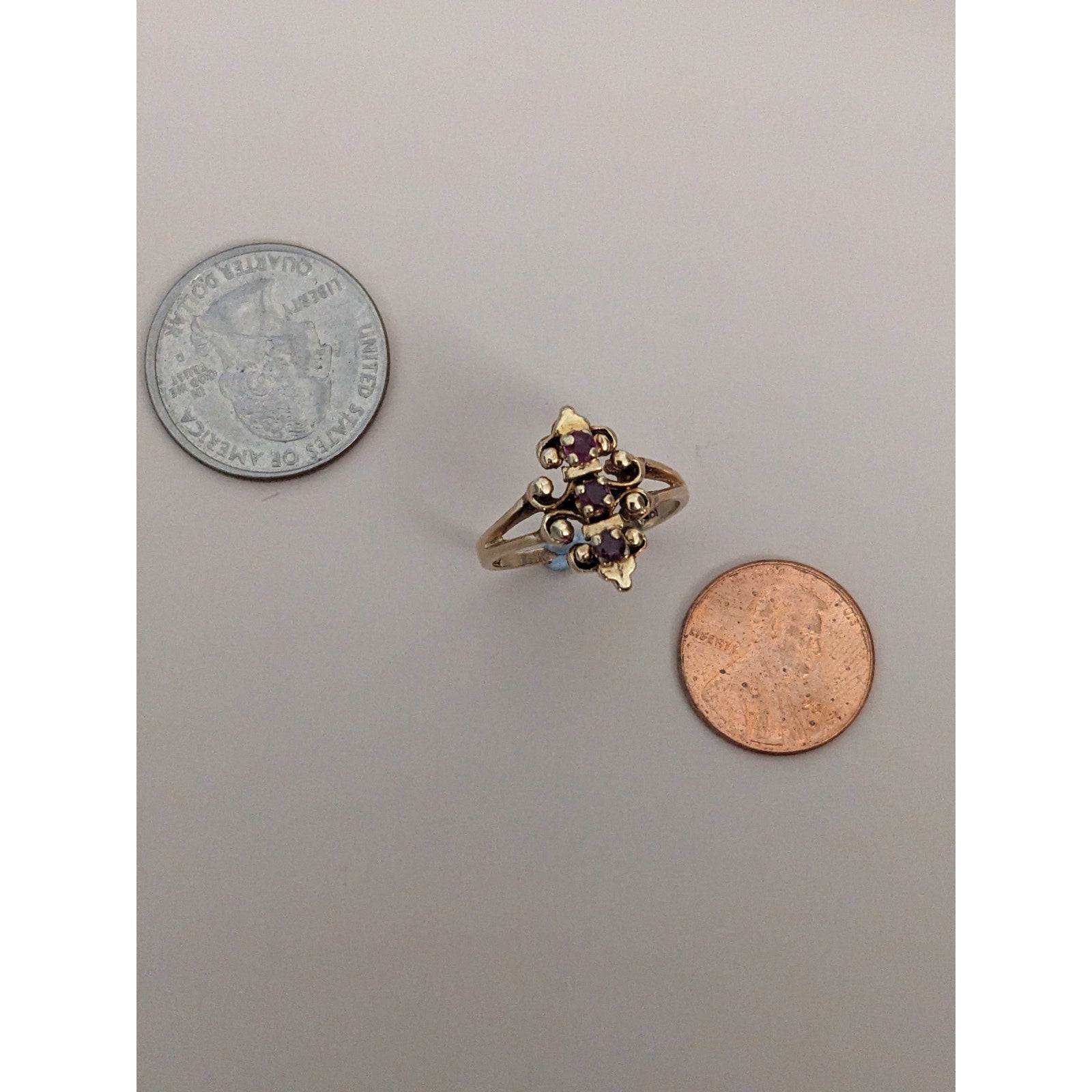 Vintage 10k Yellow Gold with 3-stone Red Gems Ring Size 8