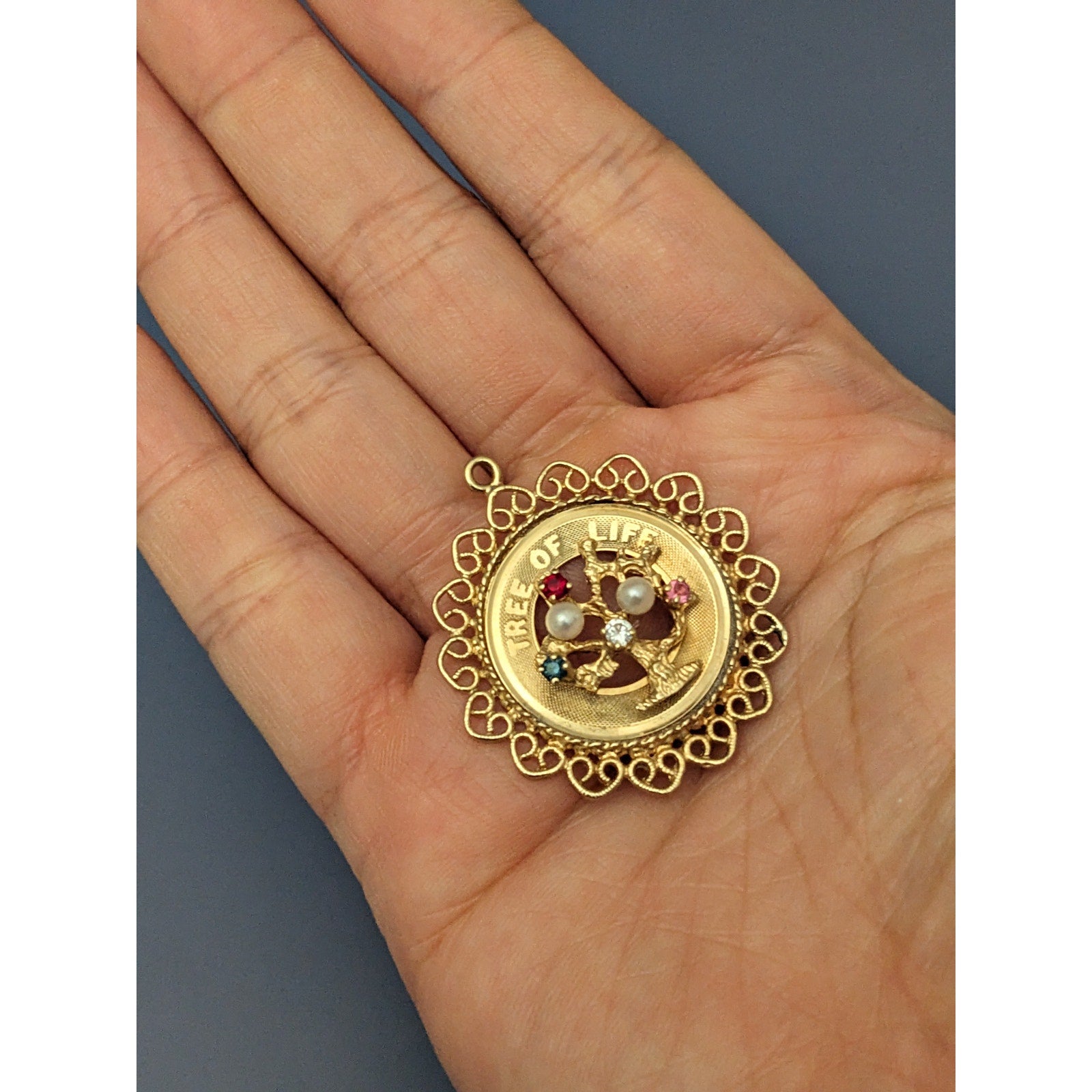 Vintage 14k Solid Gold M&M Tree Of Life Pendant Charm