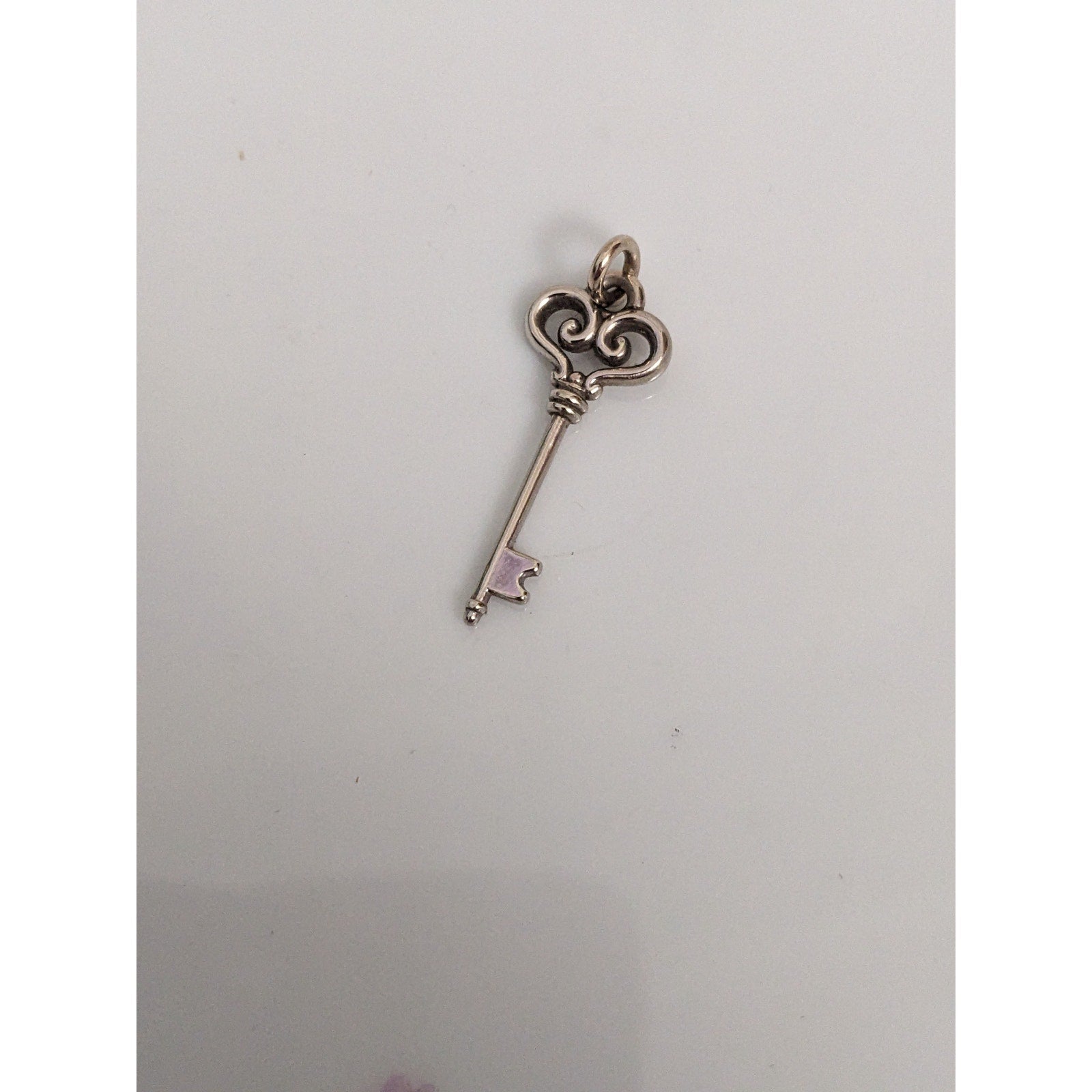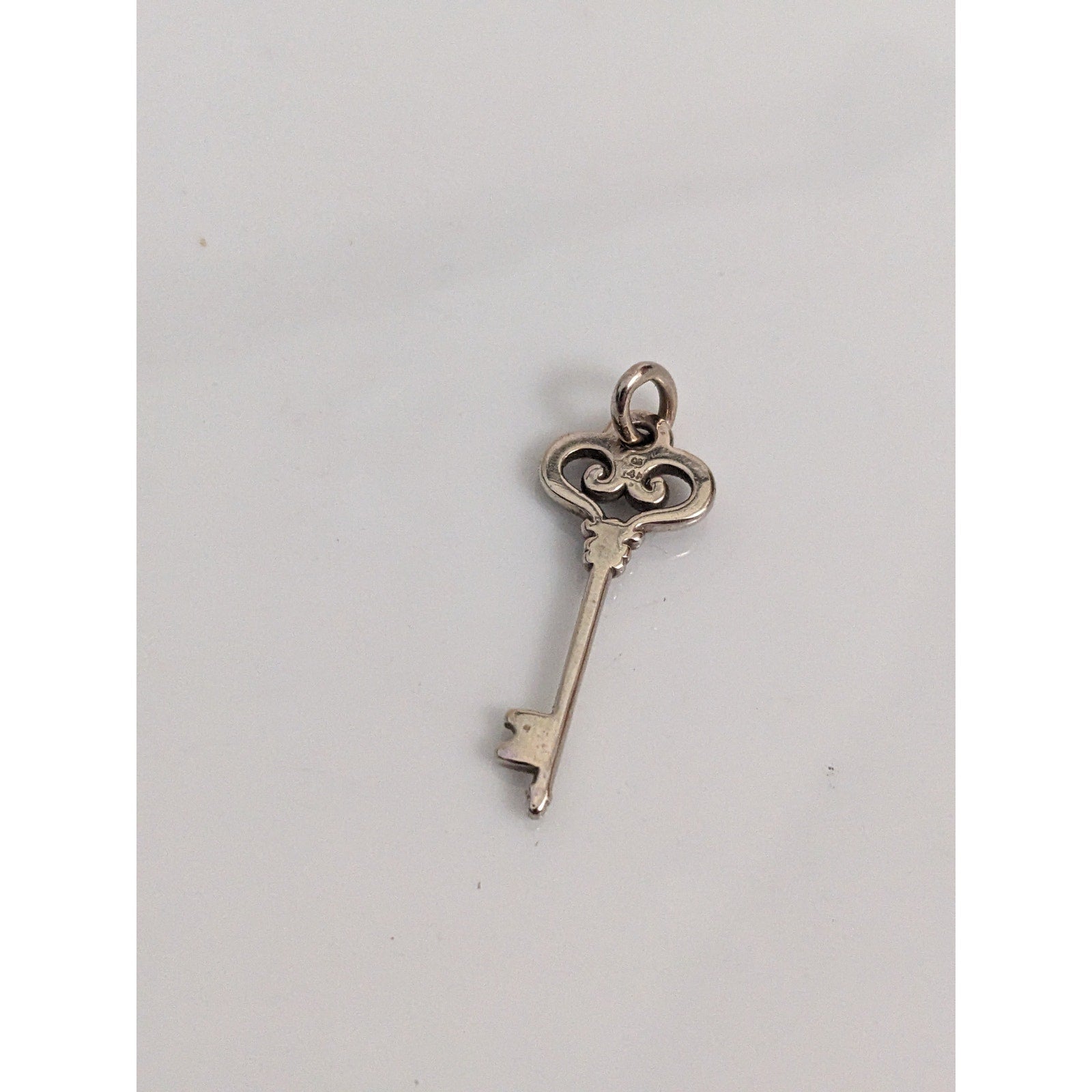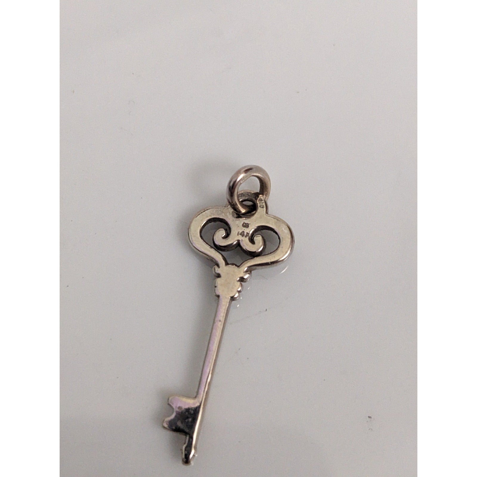 Vintage 14k White Gold Victorian Style Skeleton Key Pendant