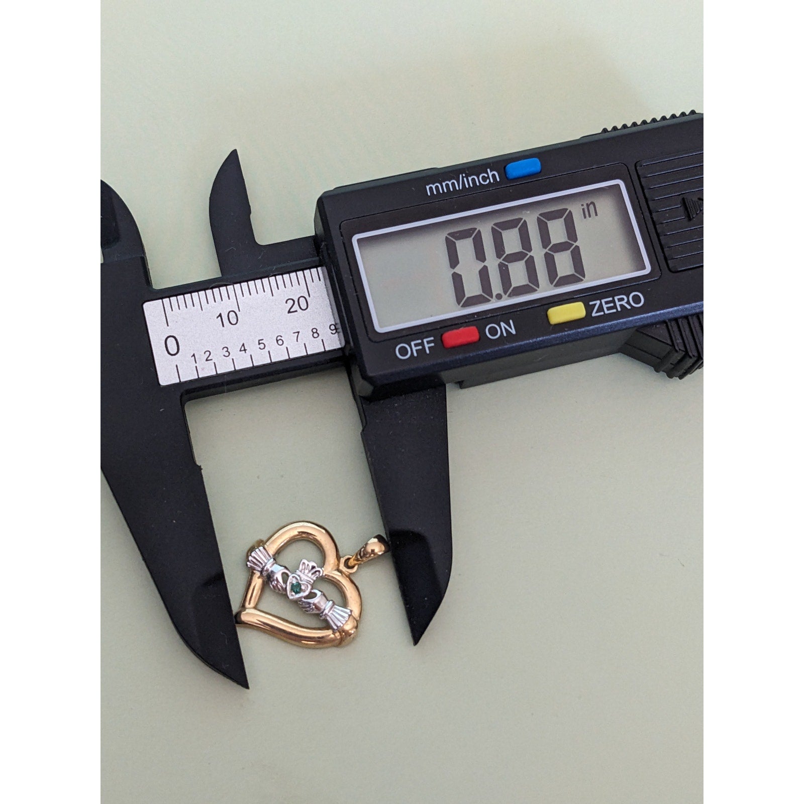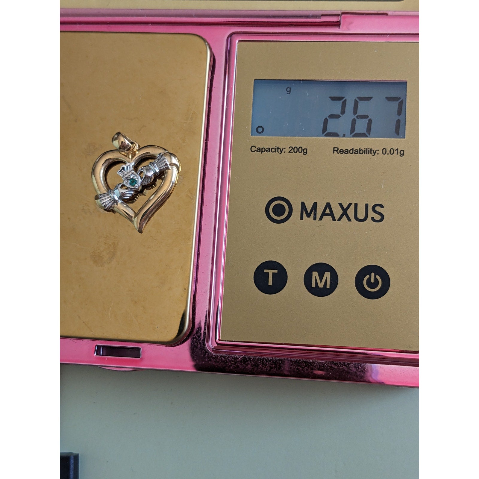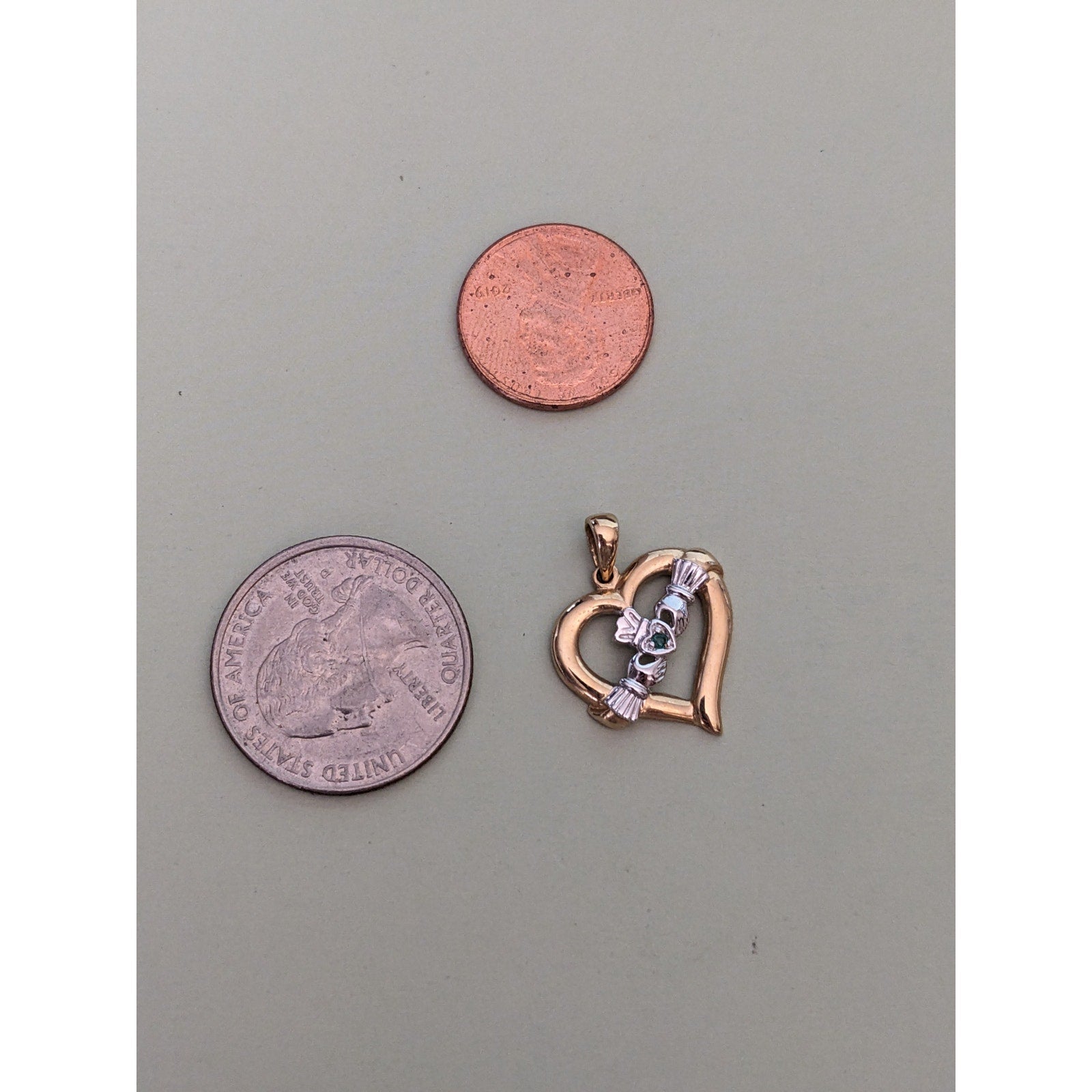 Vintage 14k Yellow and White Gold Claddagh Heart with Green Stone Pendant