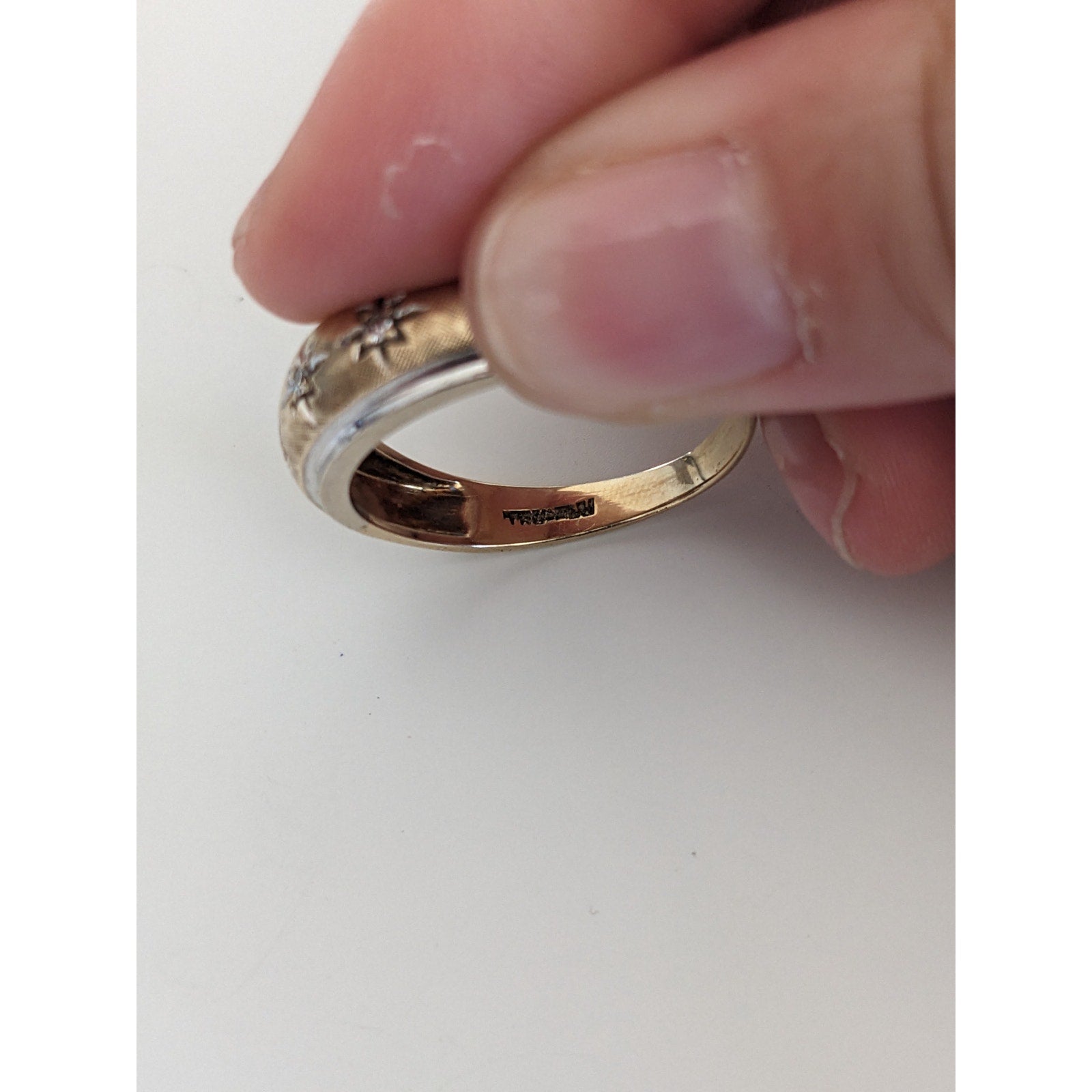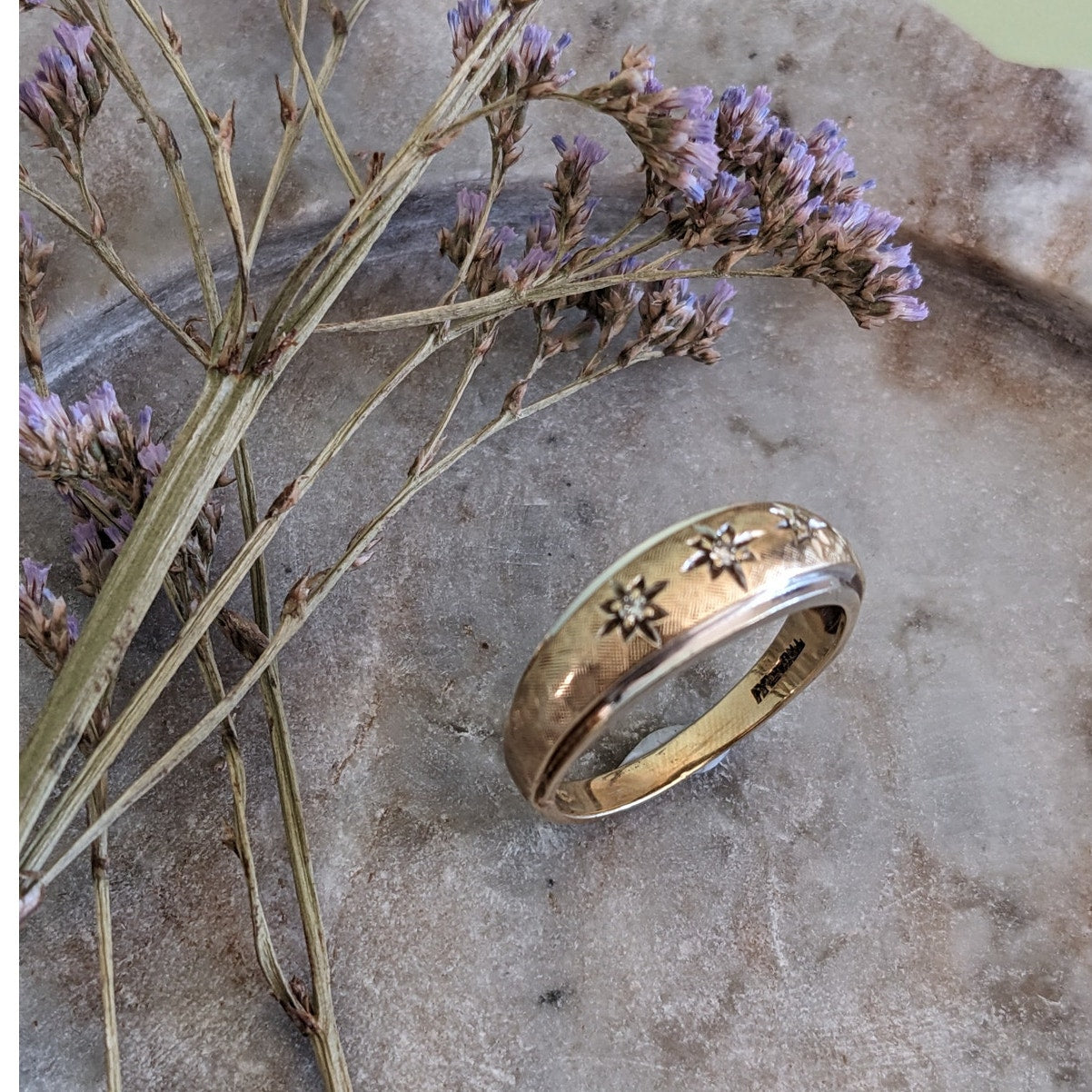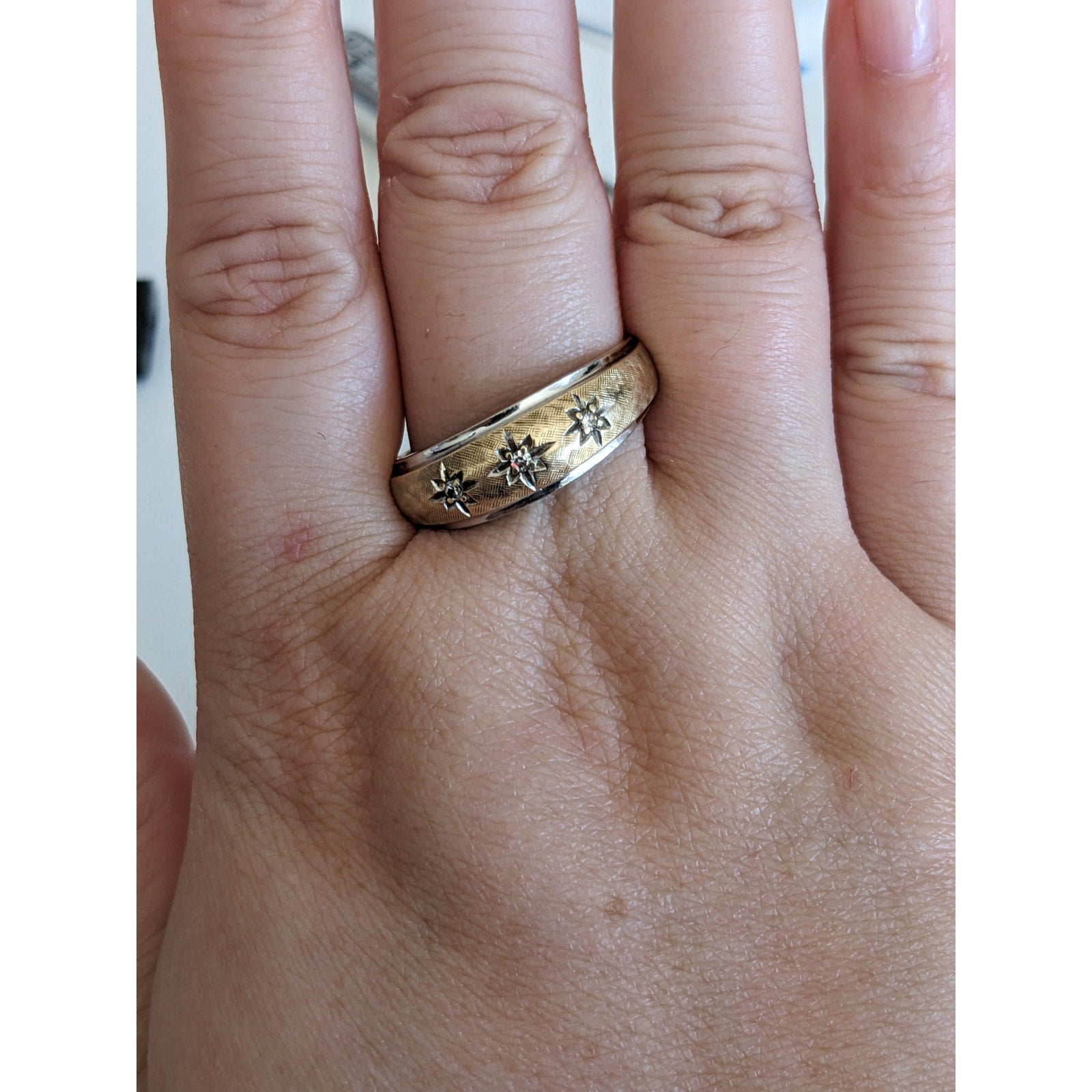 Vintage 14k Yellow and White Gold Ring with Star Bezel Diamond Accents 12US