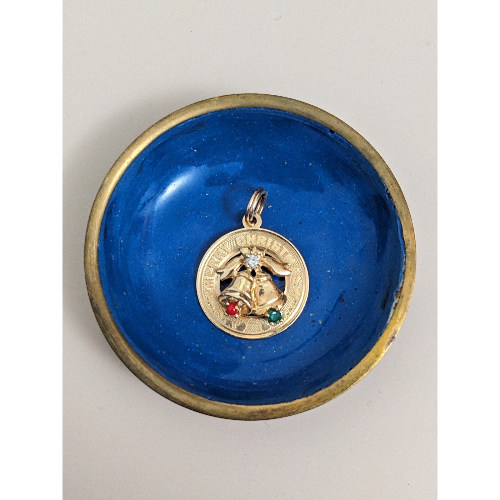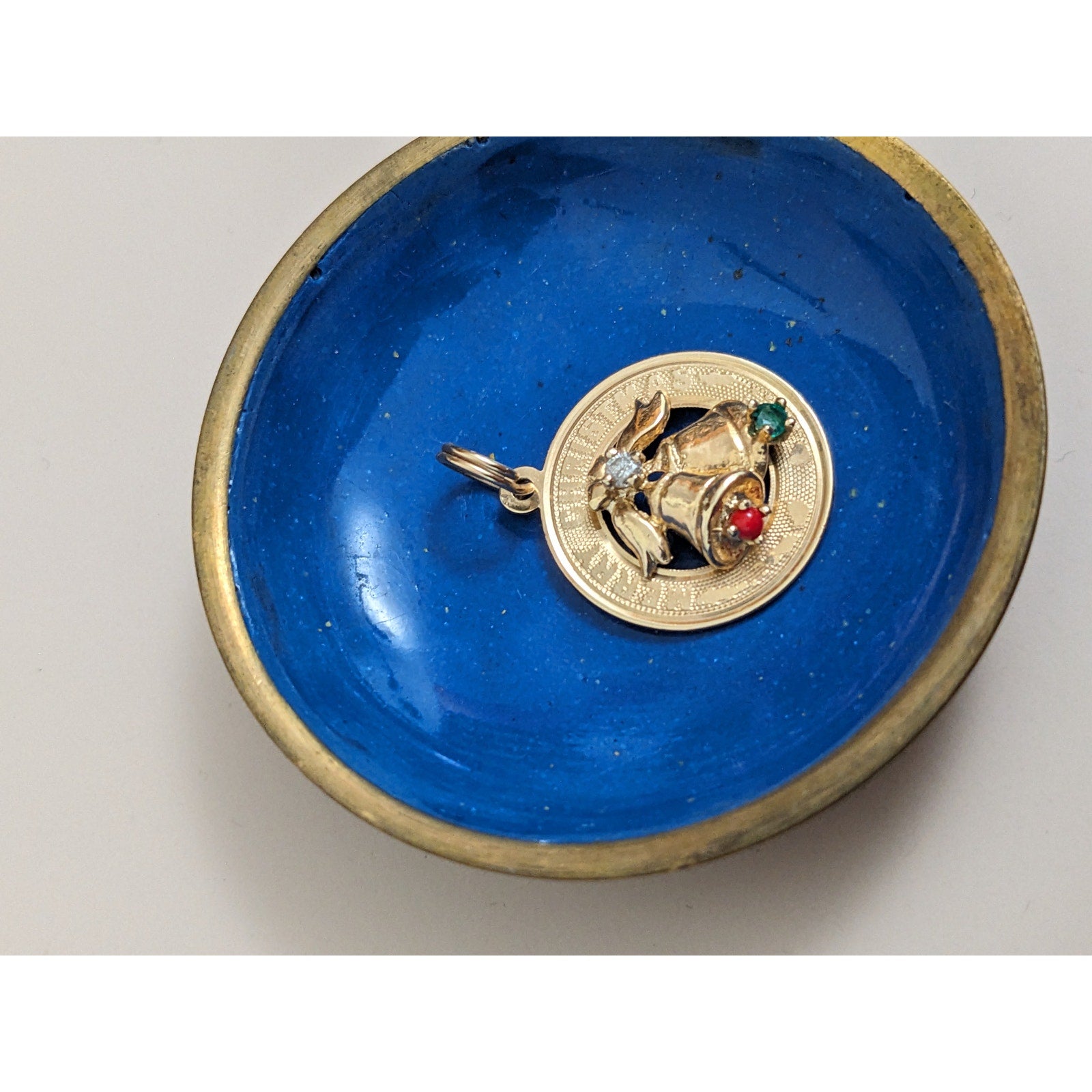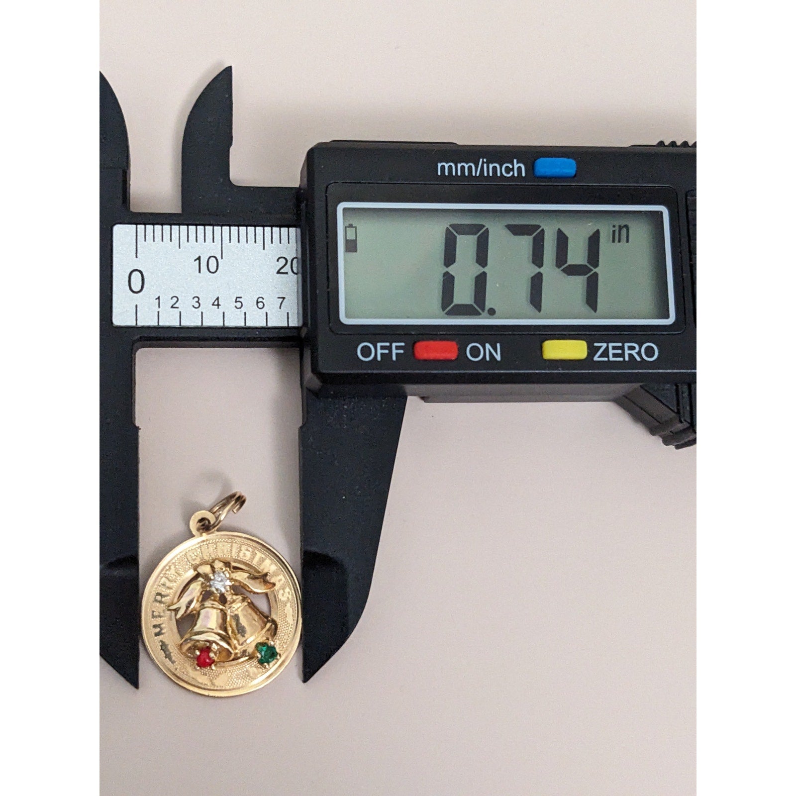 Vintage 14k Yellow Gold Festive Merry Christmas Holiday Bells Pendant