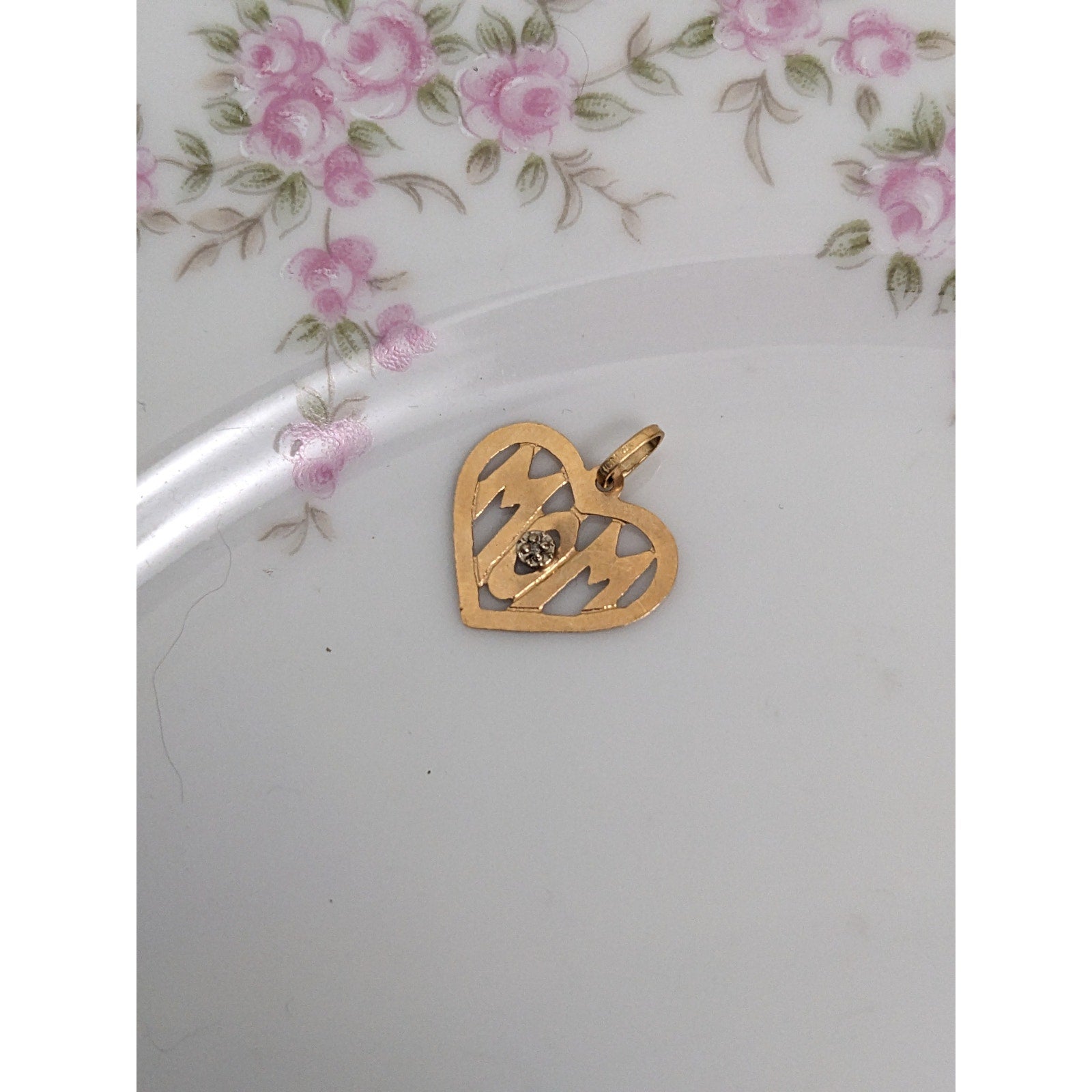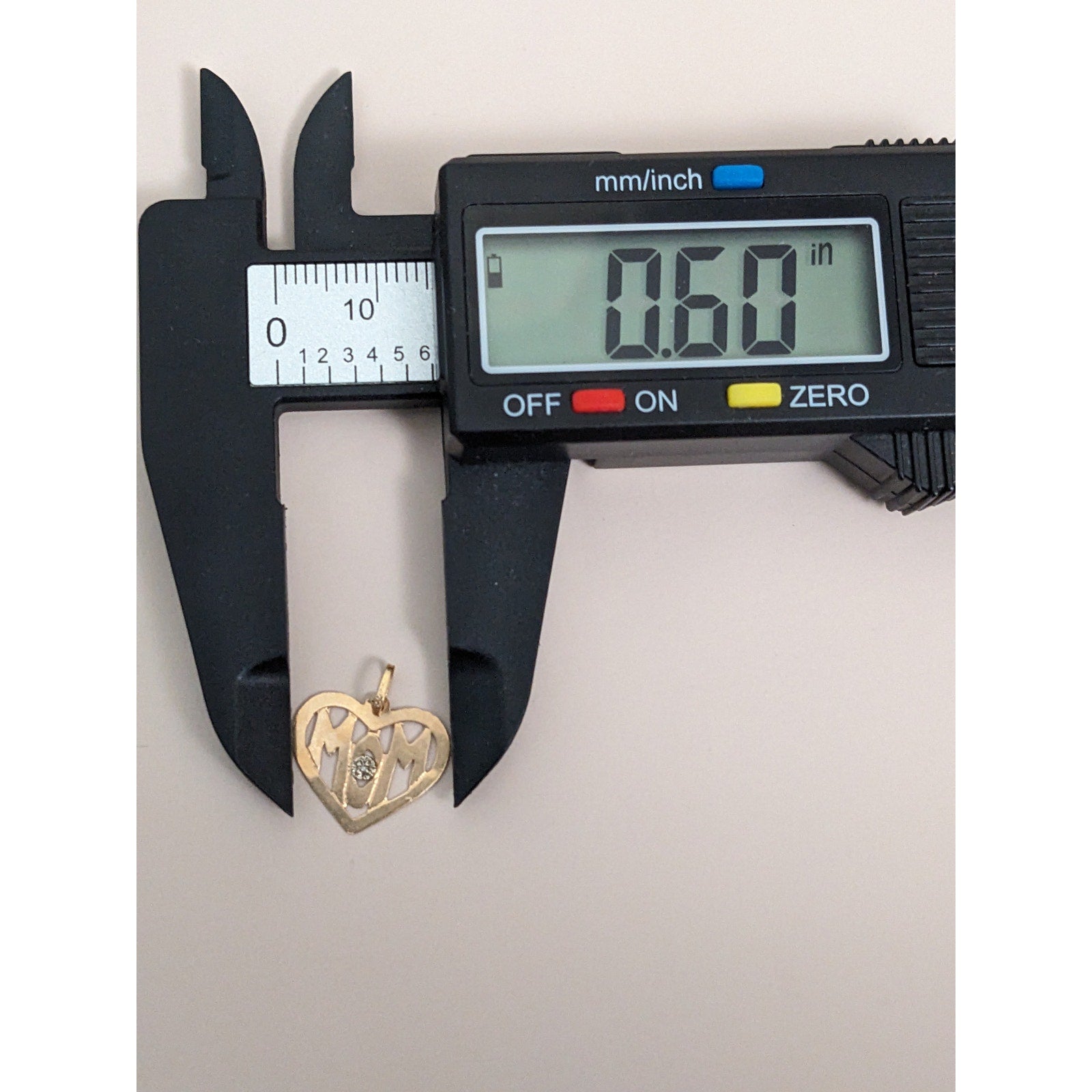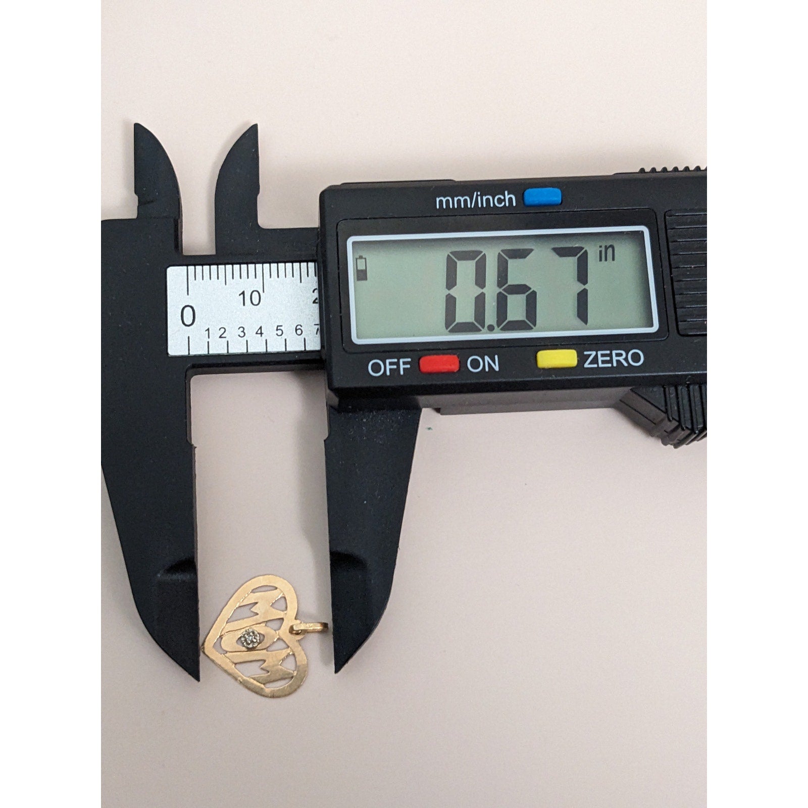 Vintage 14k Yellow Gold Flat Dainty "MOM" Heart Pendant with Super Tiny Gem