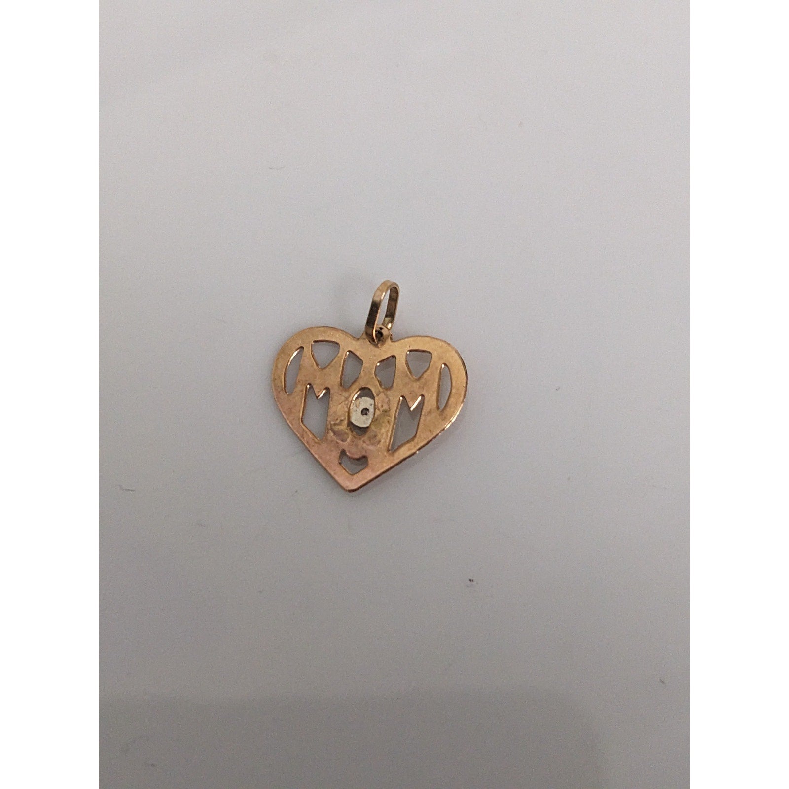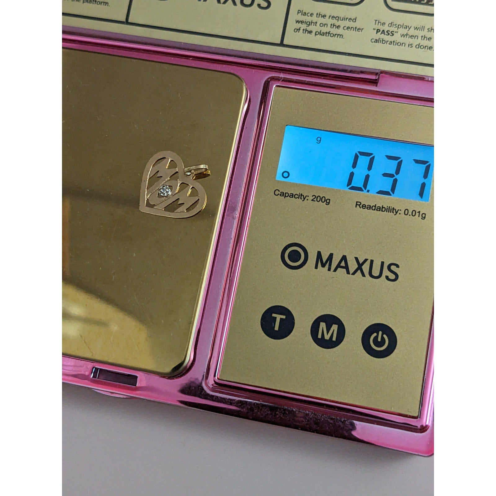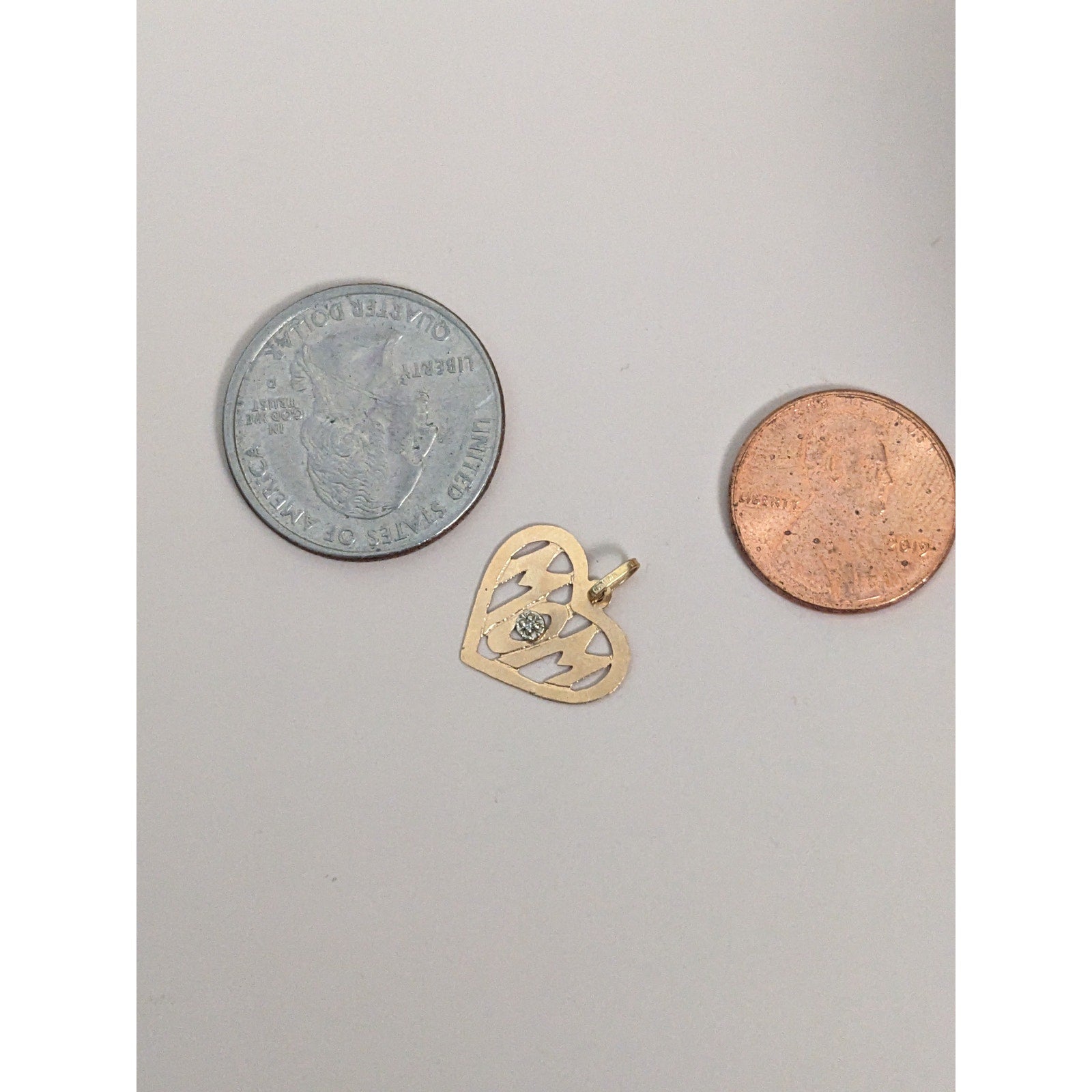 Vintage 14k Yellow Gold Flat Dainty "MOM" Heart Pendant with Super Tiny Gem