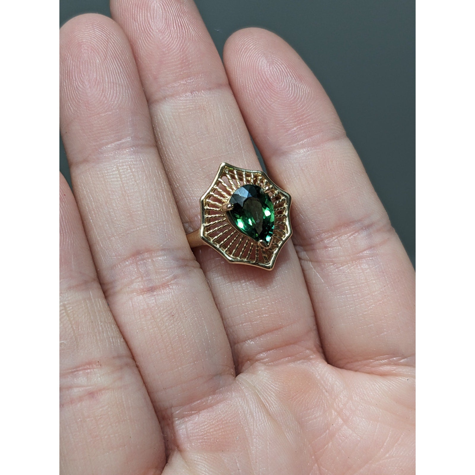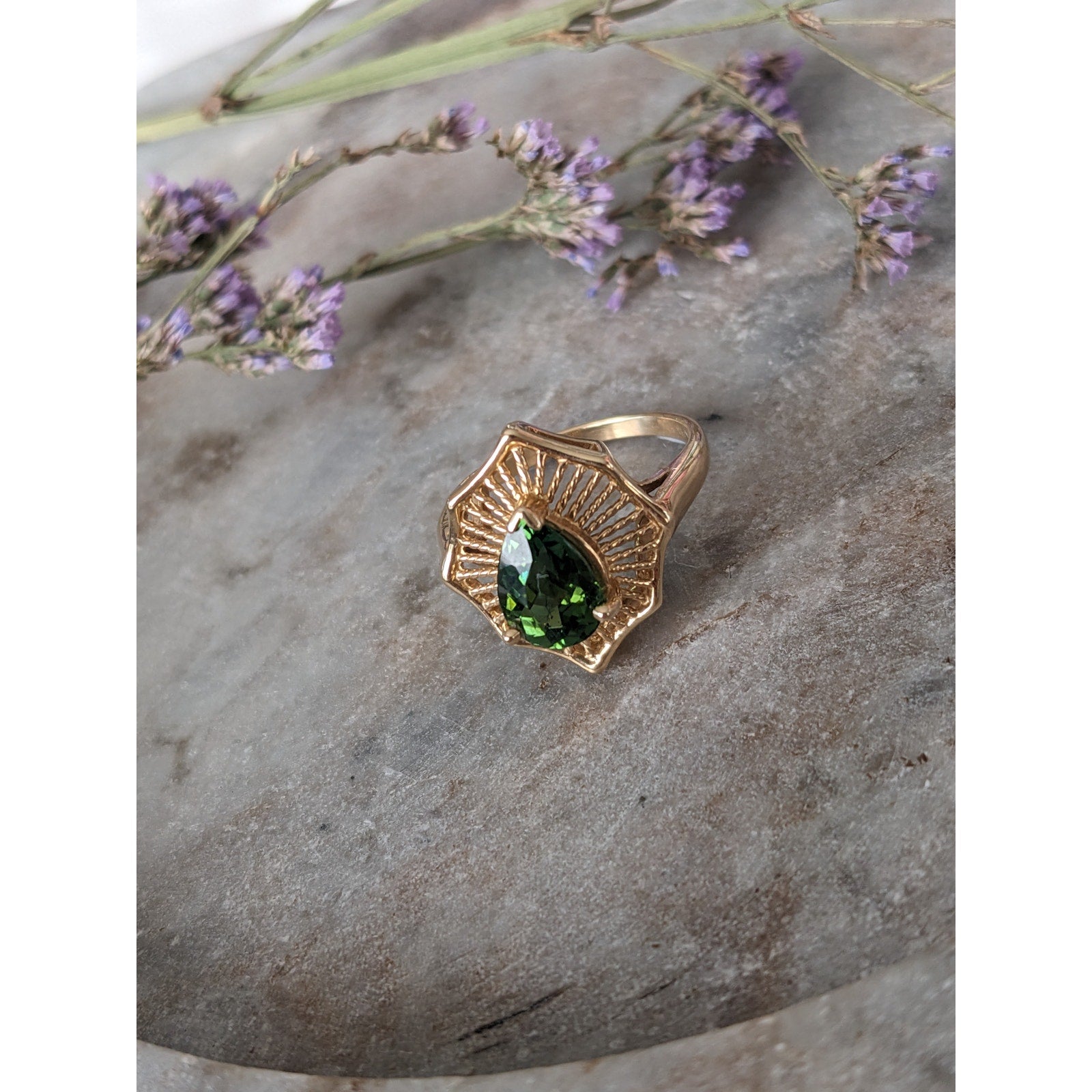 Vintage 14k Yellow Gold Green Tourmaline Ring Suze 7US