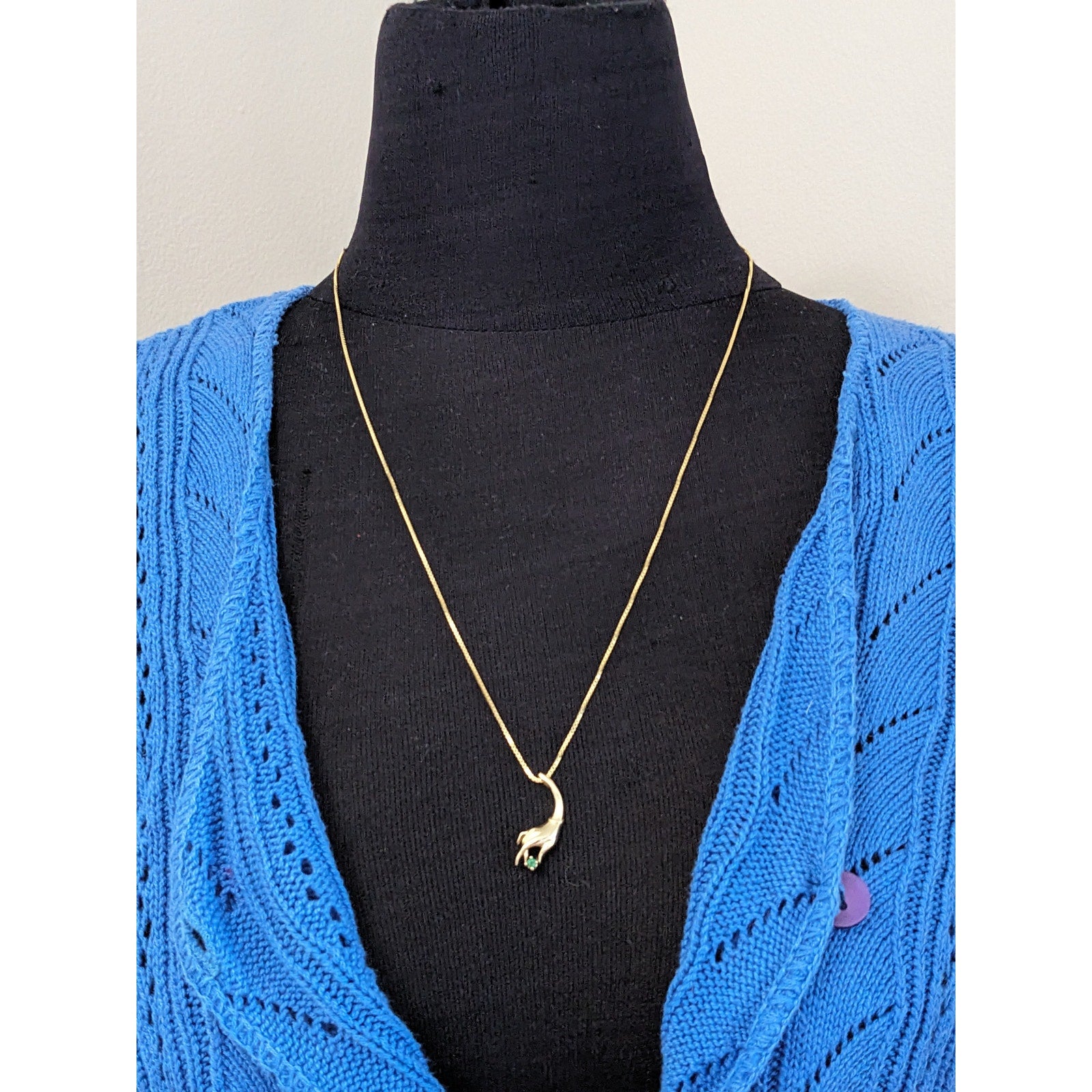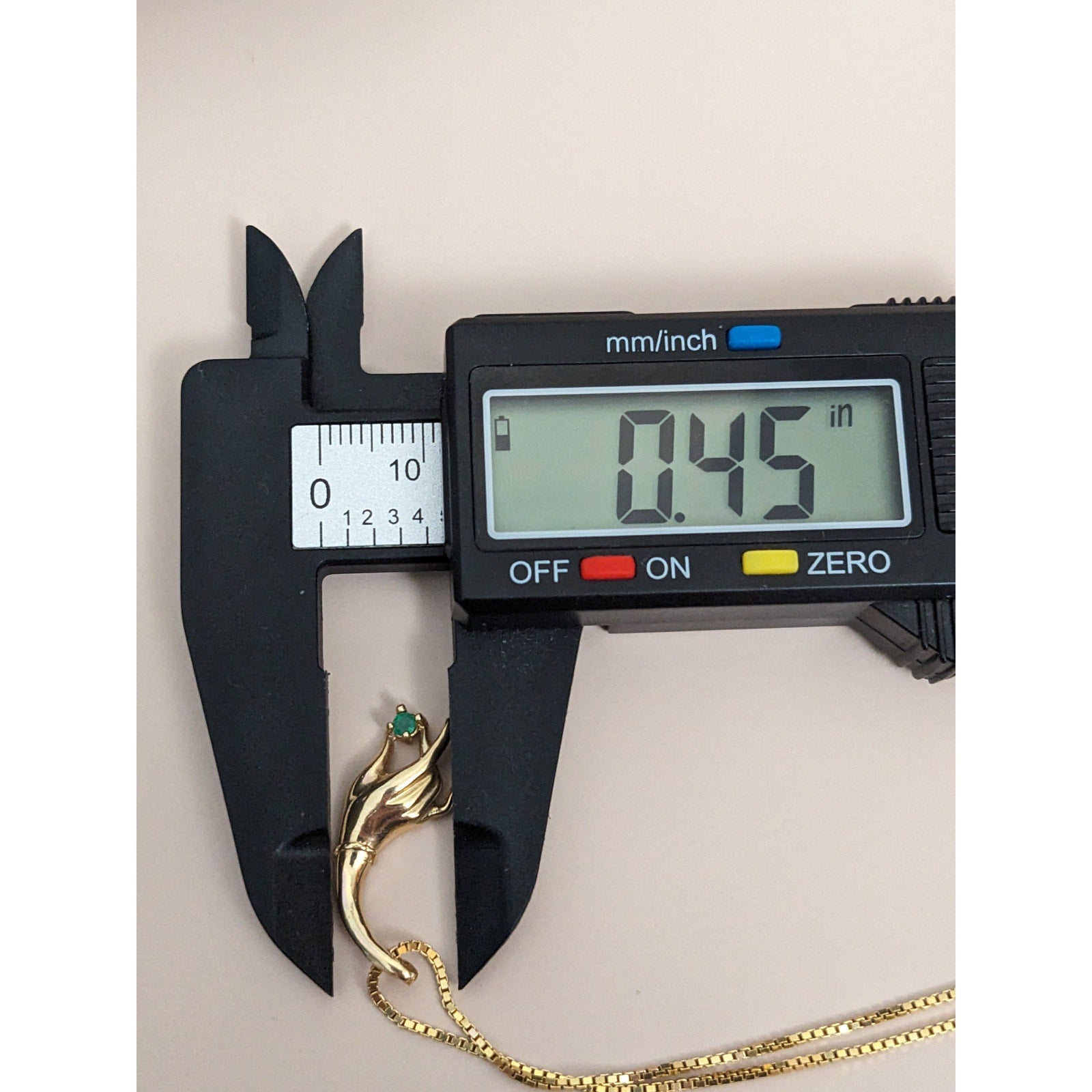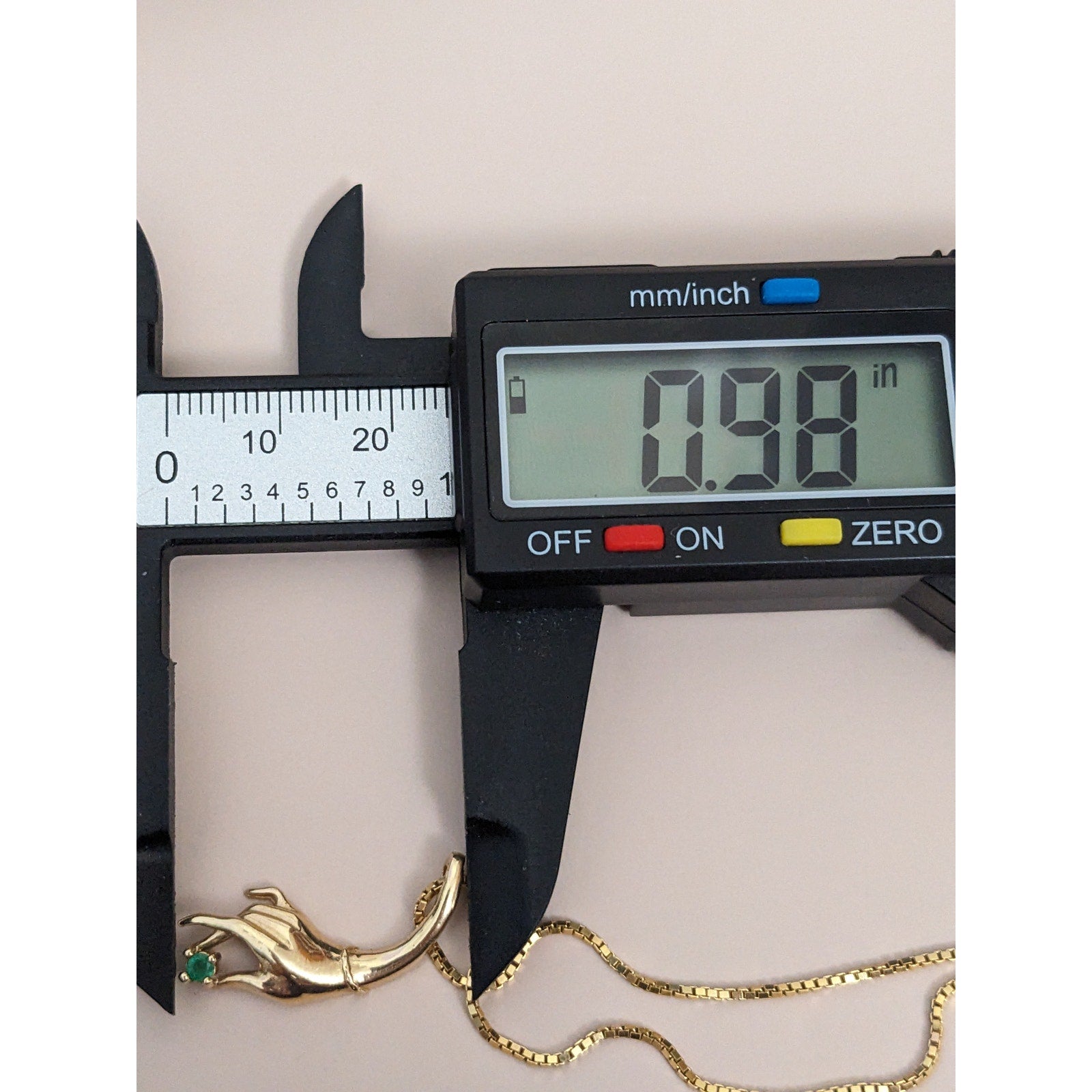 Vintage 14k Yellow Gold Hand Pendant with Green Gem Pendant and Necklace