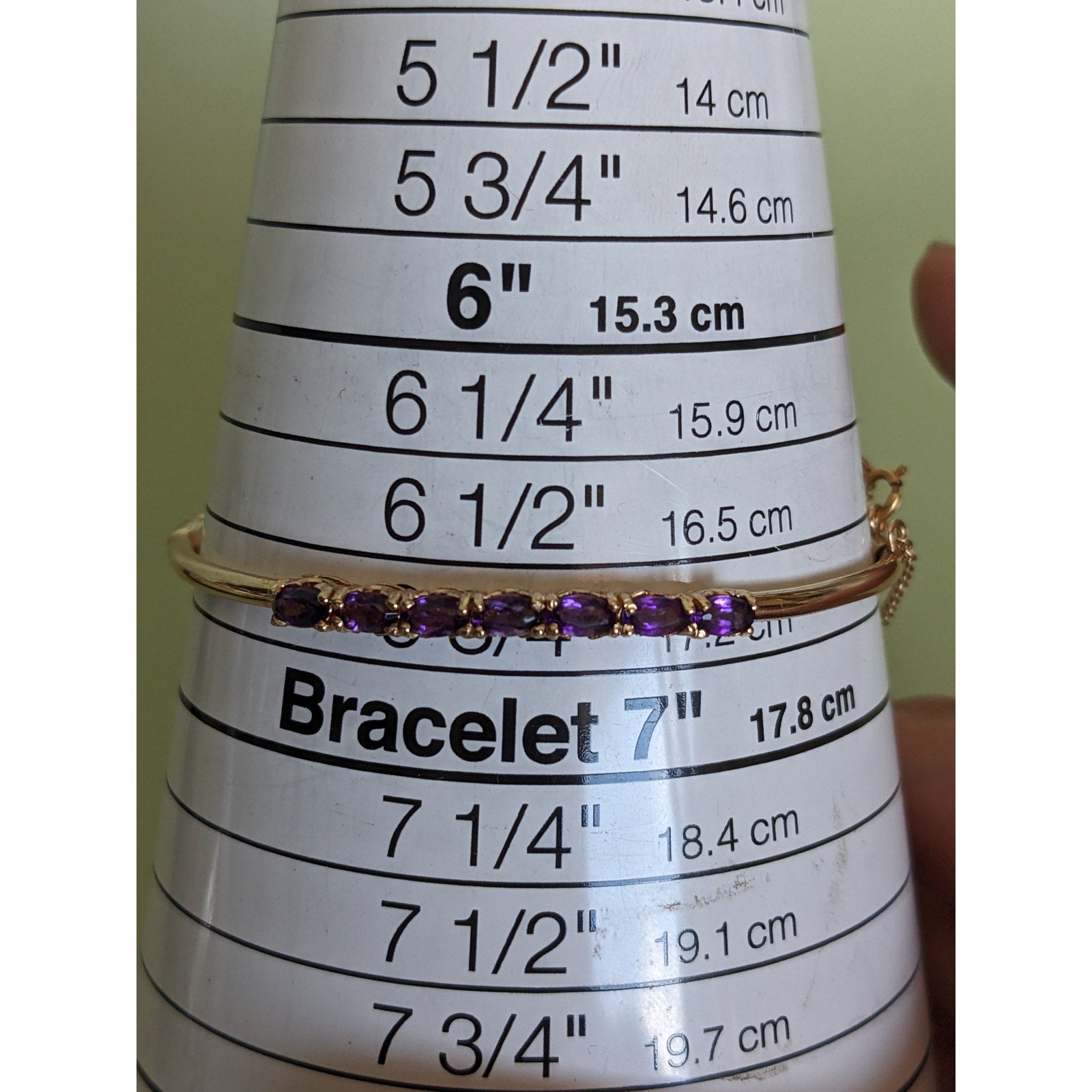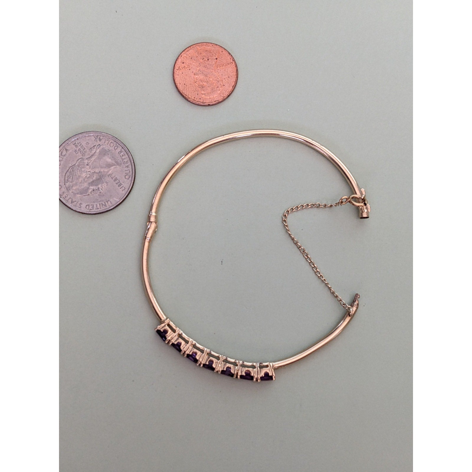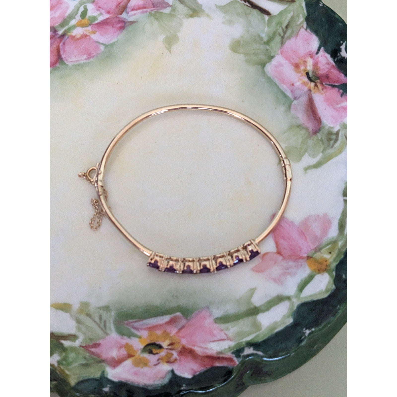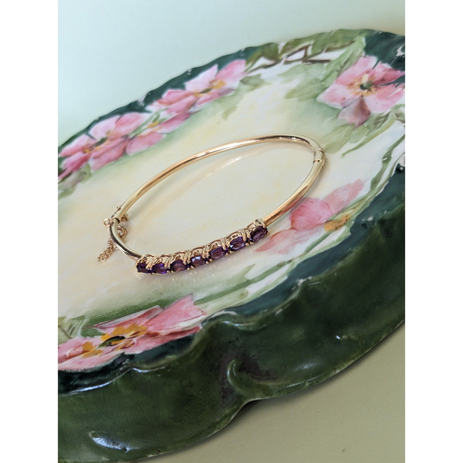 Vintage 14k Yellow Gold Hollow Bangle with Oval Purple Amethyst Bracelet