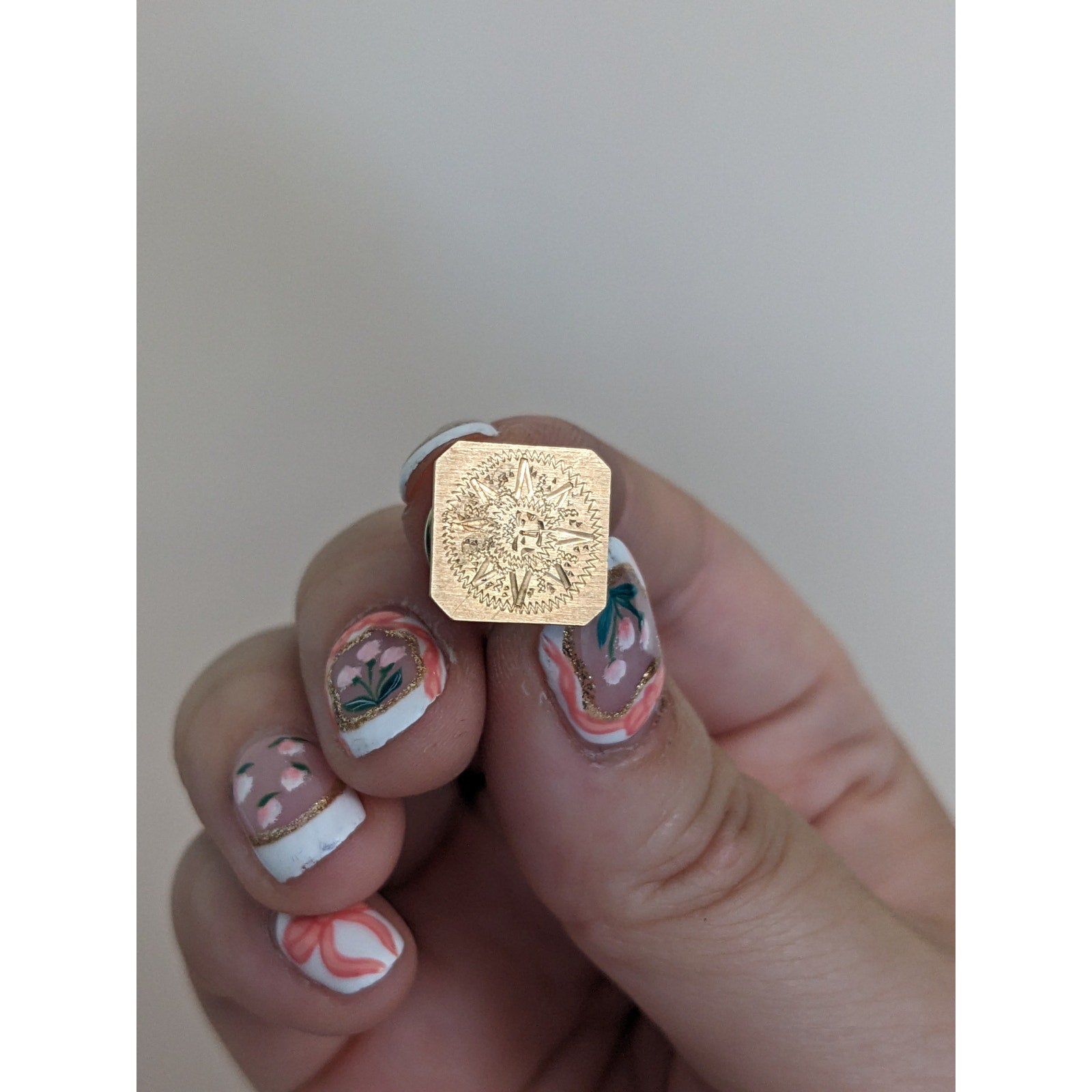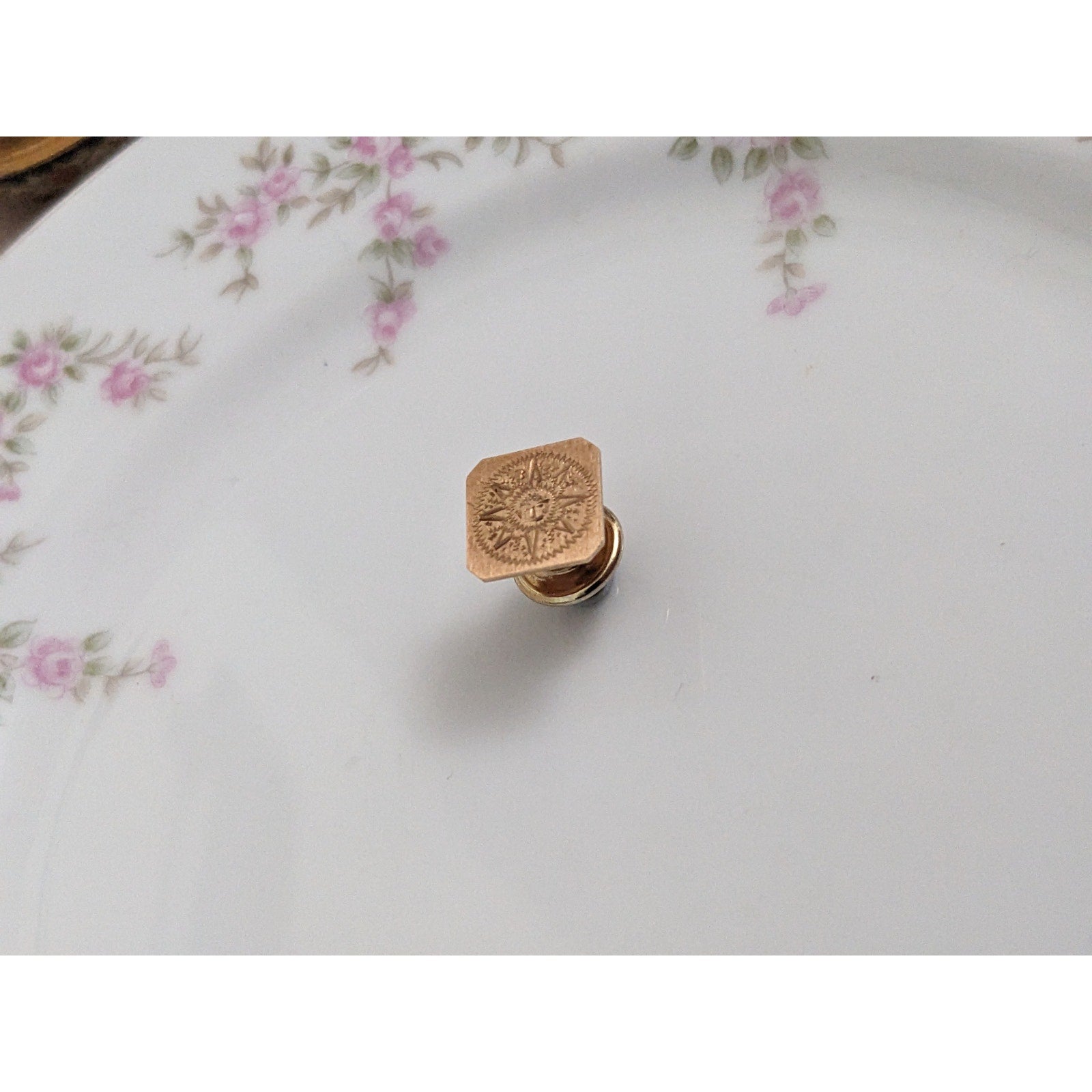 Vintage 14k Yellow Gold Mexico Aztec Mayan Sun God Etched Pin