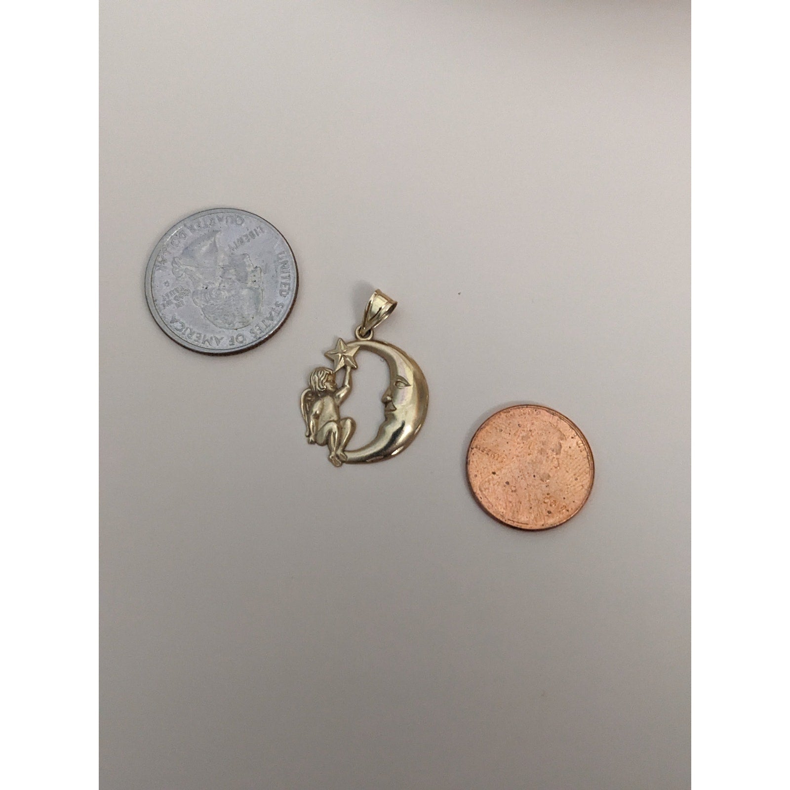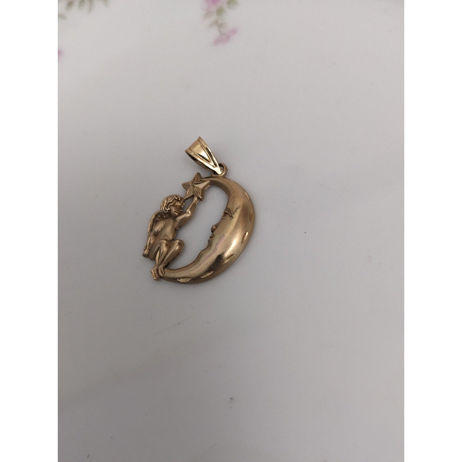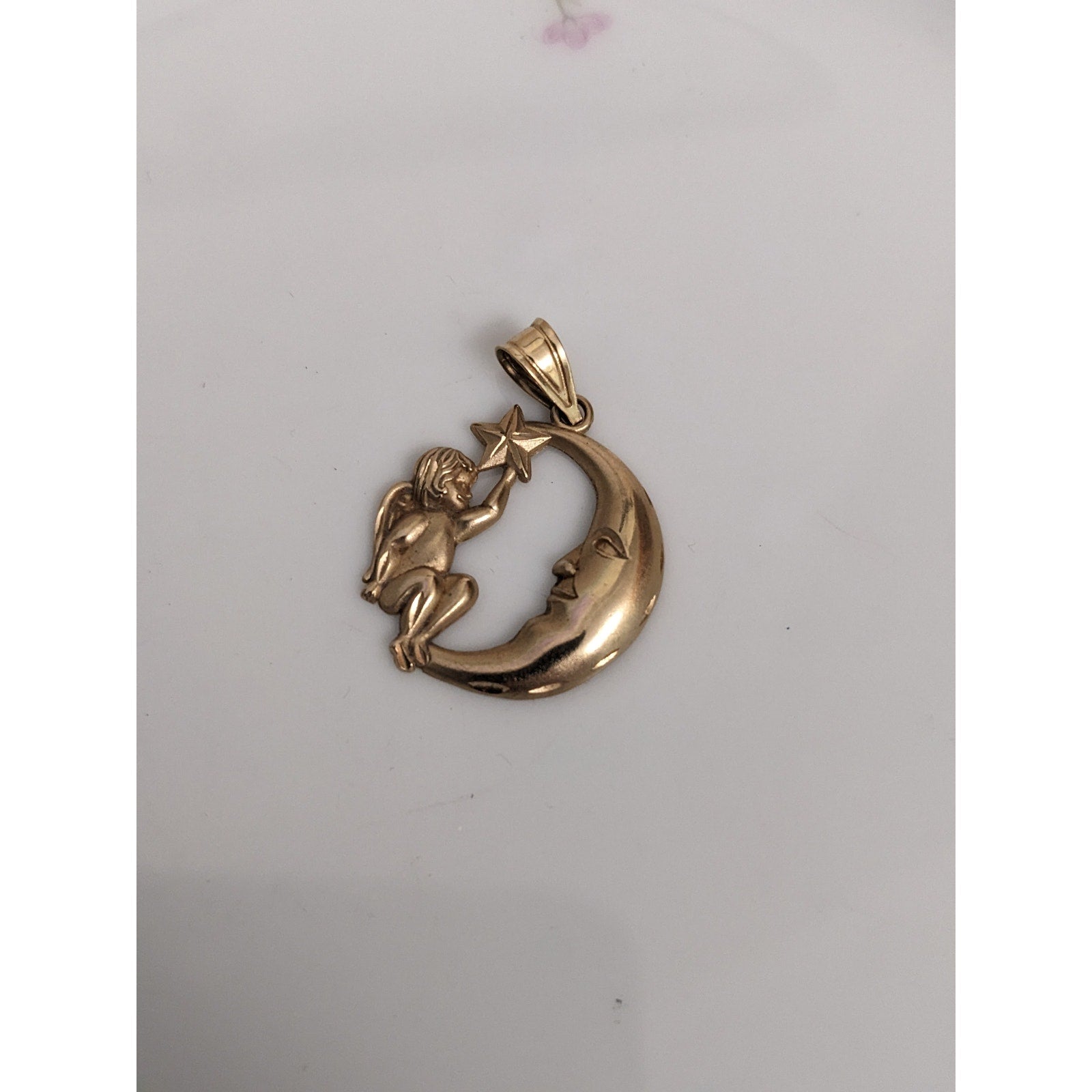 Vintage 14k Yellow Gold Michael Anthony Cherub Star Crescent Moon Pendant