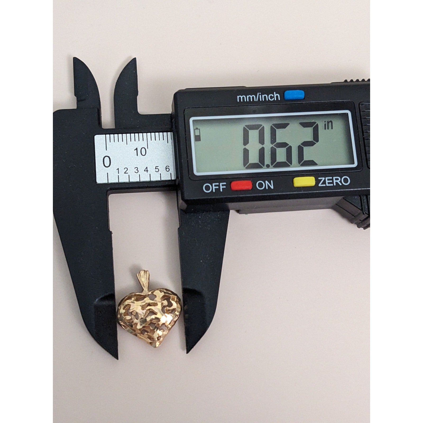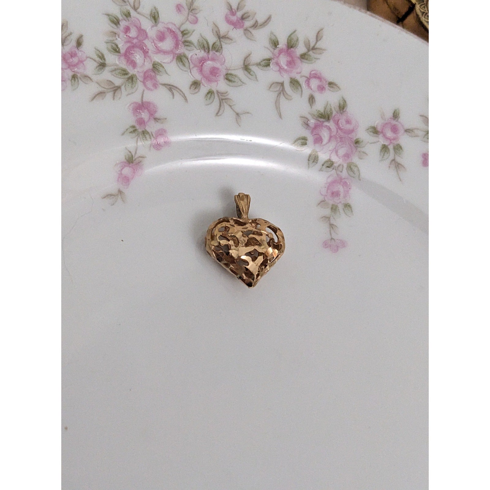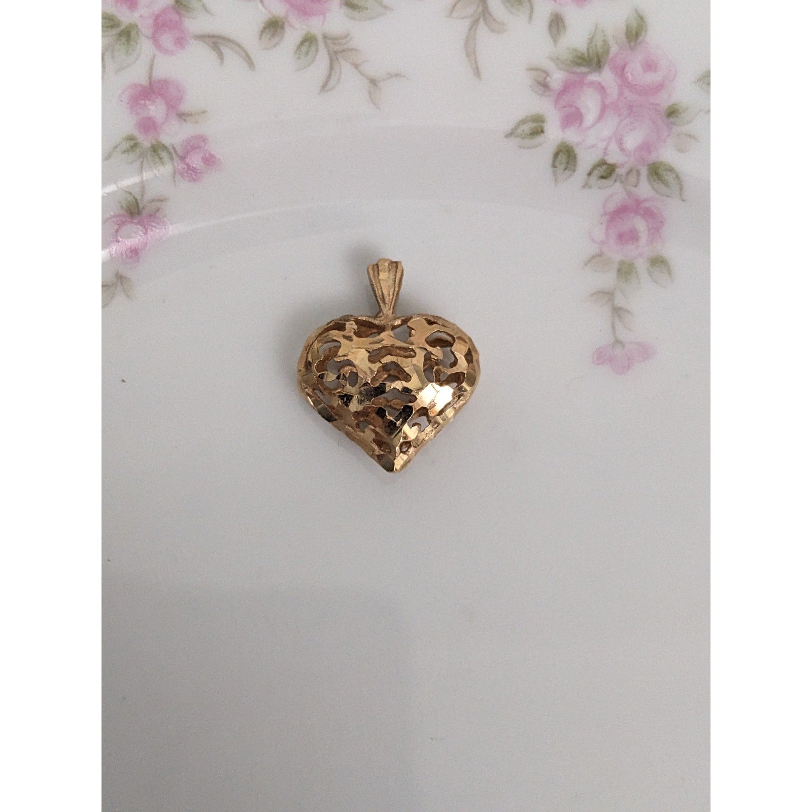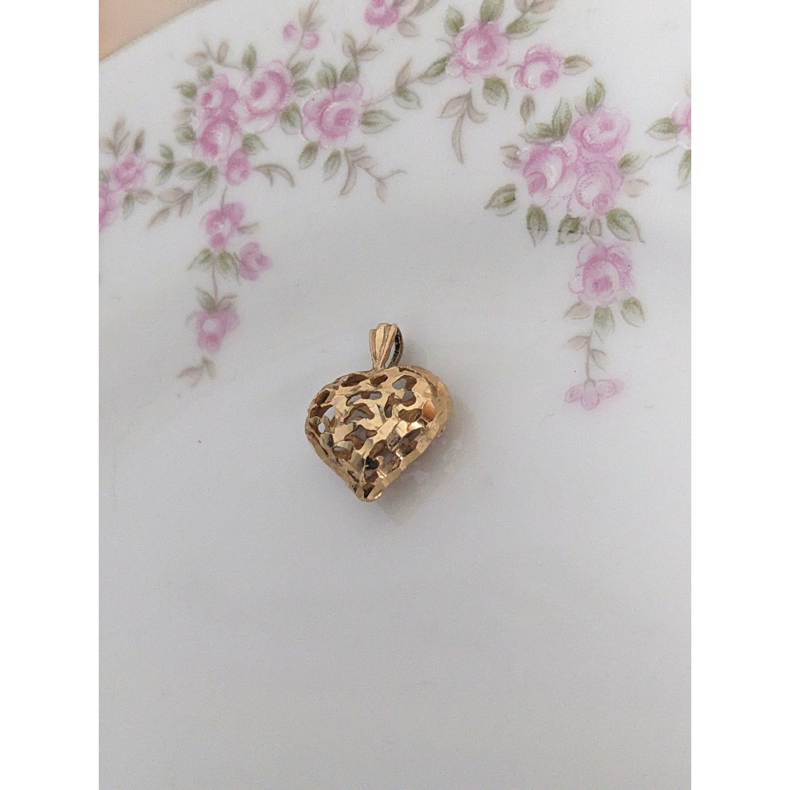 Vintage 14k Yellow Gold Puffy Openwork Filligree Heart Pendant