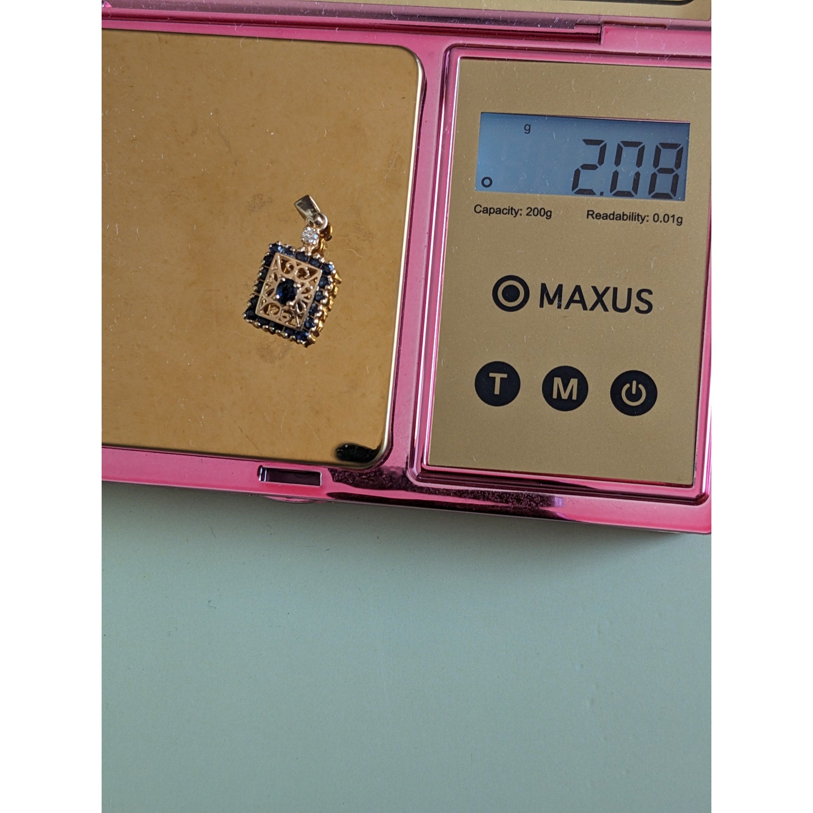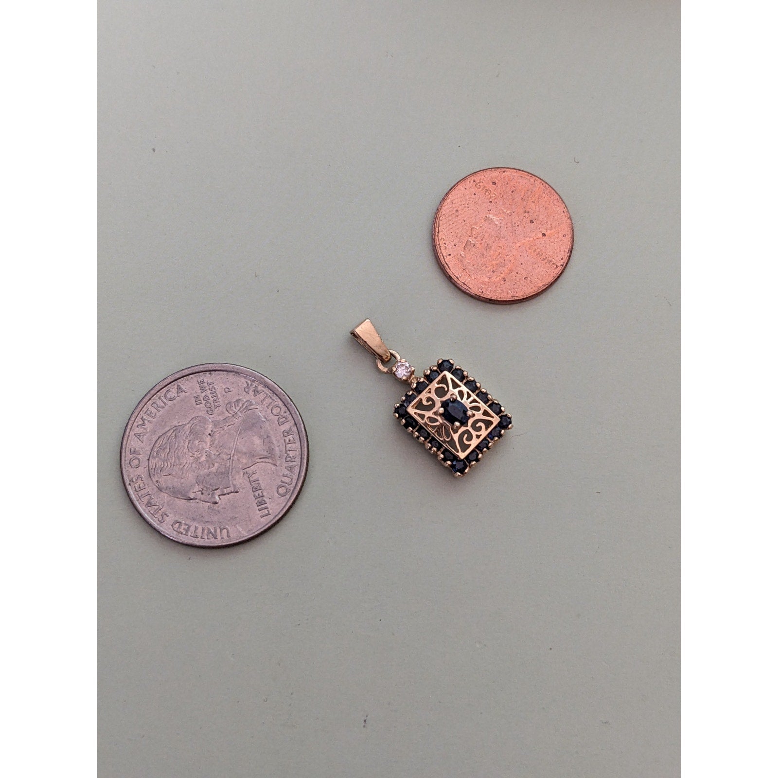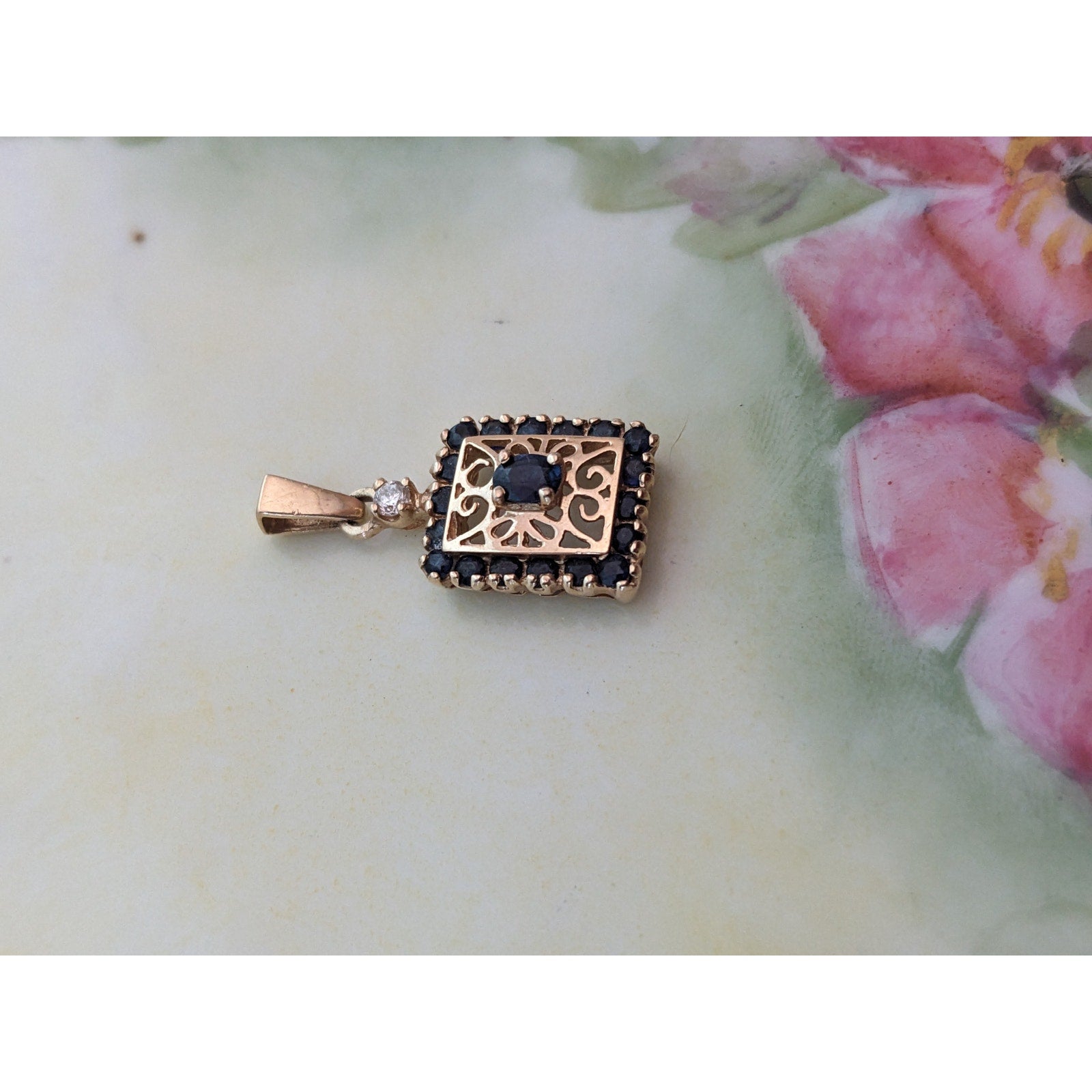 Vintage 14k Yellow Gold with Sapphire Stones and Filigree Design Pendant