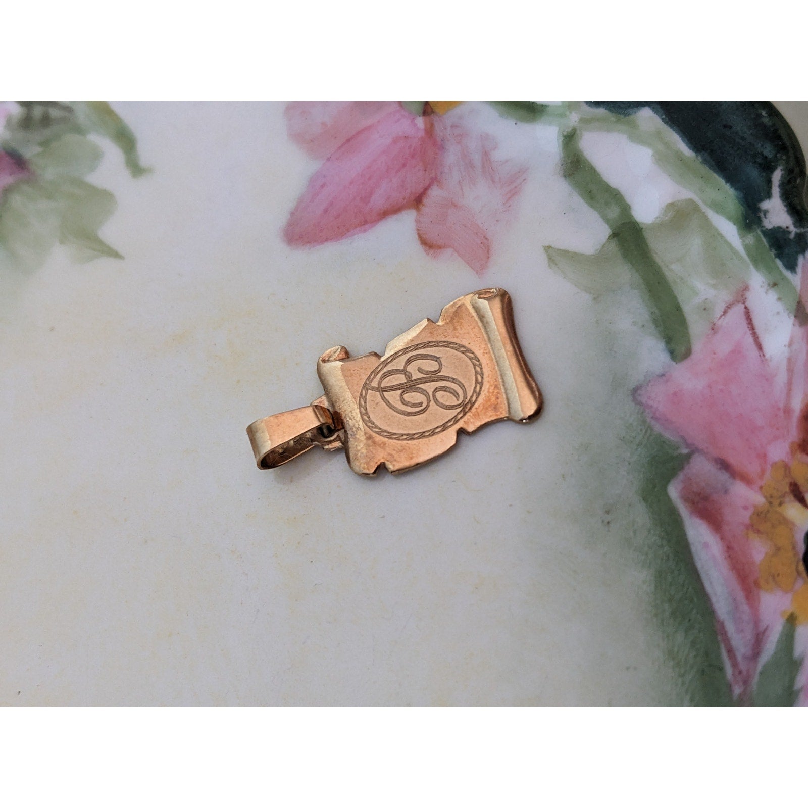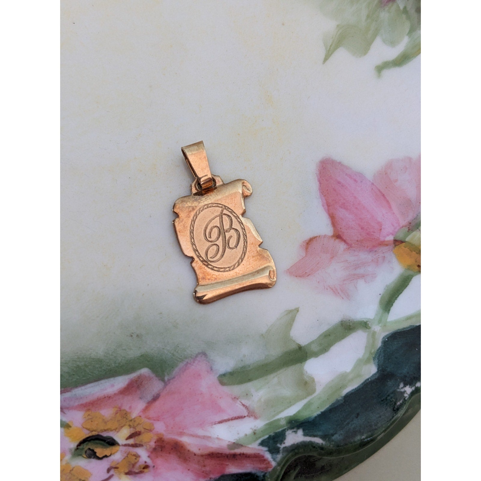 Vintage 18k Yellow Gold Scroll with "B" Initial Pendant