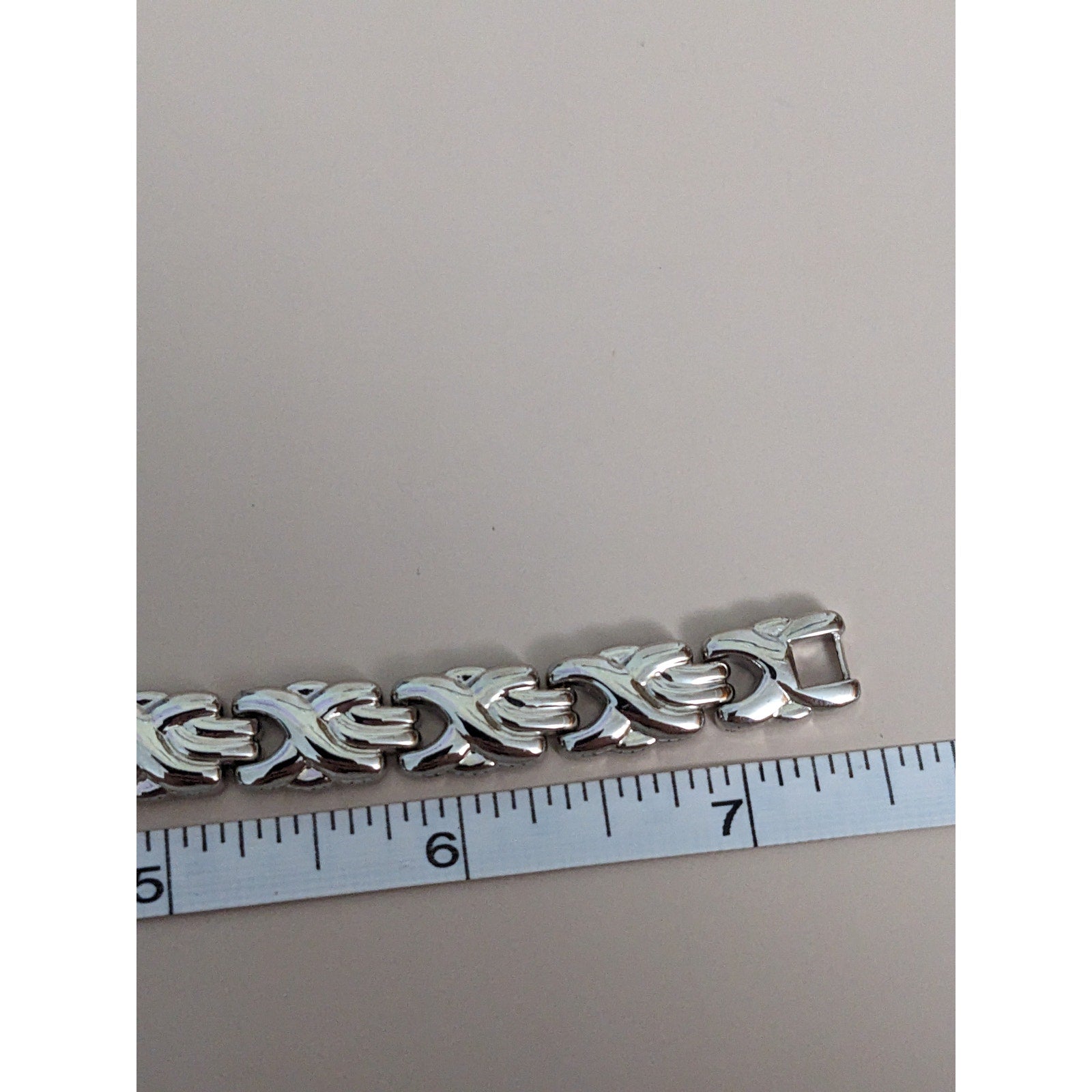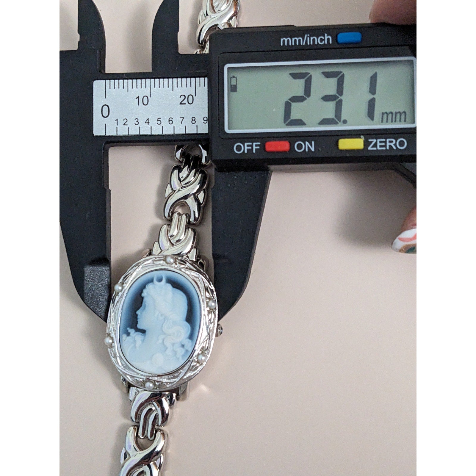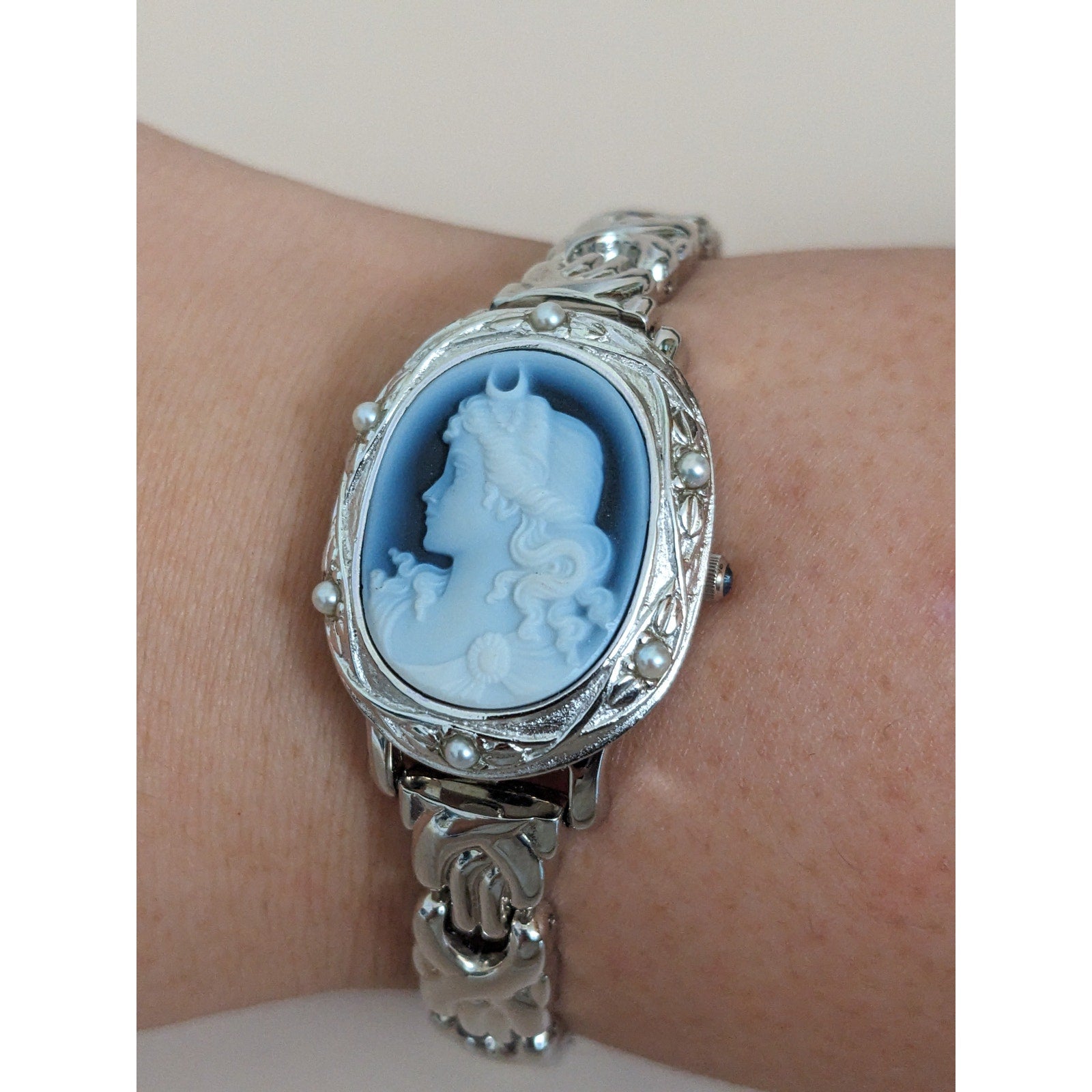 Vintage Andre Mouche Silver Tone Bangle Watch with Blue Floral Enamel Working