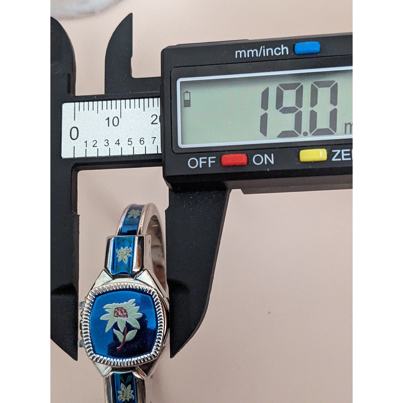 Vintage Andre Mouche Silver Tone Bangle Watch with Blue Floral Enamel Working