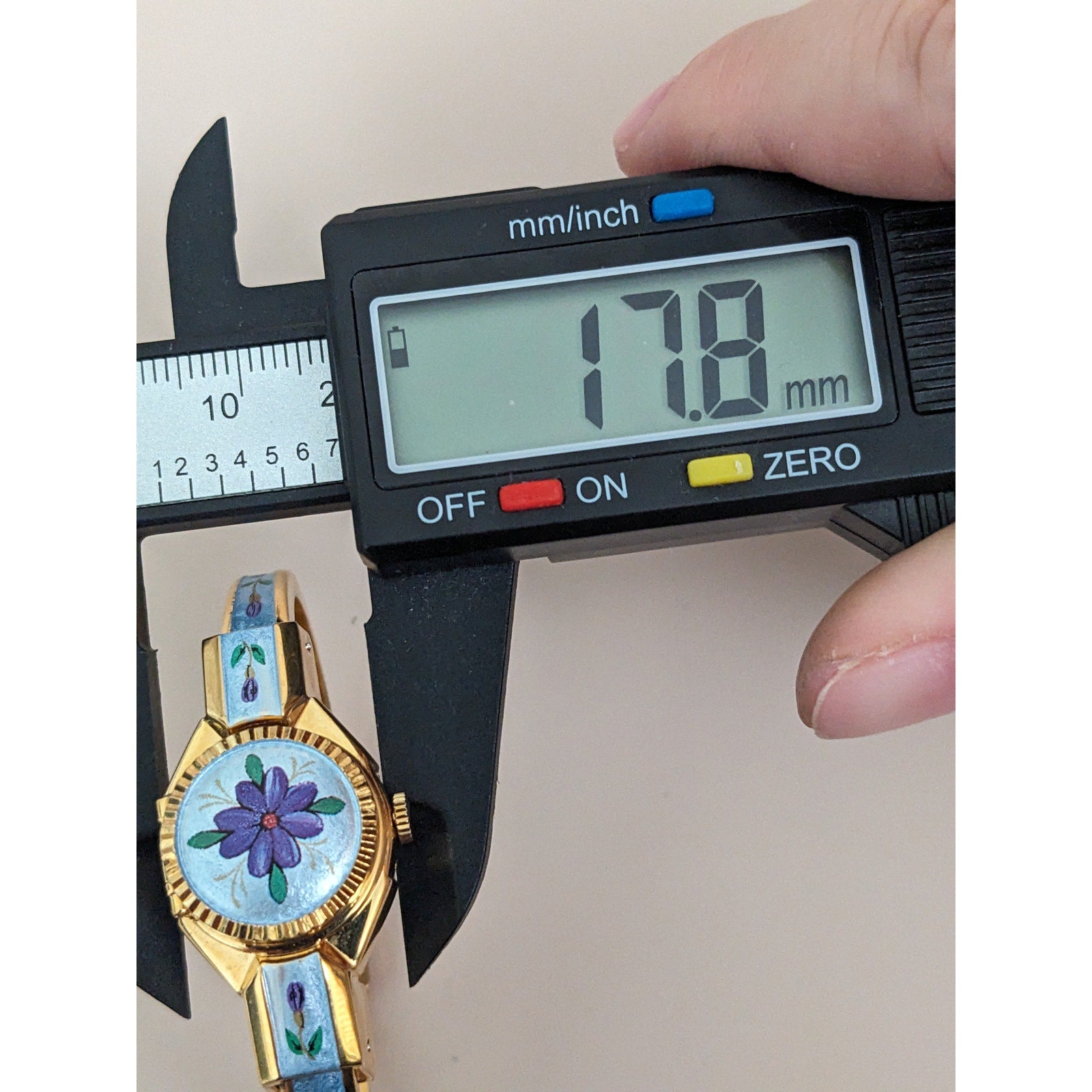 Vintage Andre Mouche Silver Tone Bangle Watch with Blue Floral Enamel Working