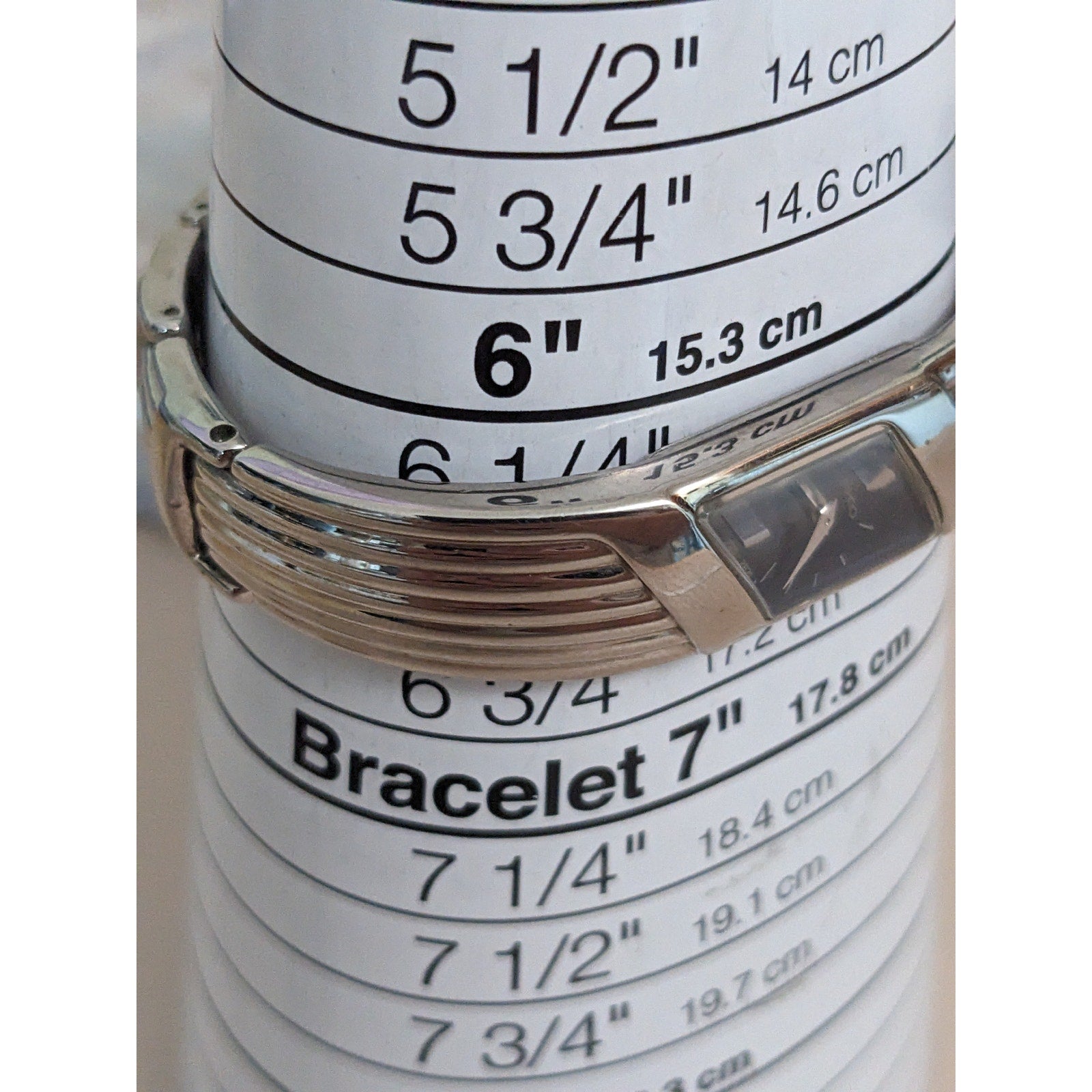 *Bangle watches have a fixed size but can accommodate various wrists. The closer you are to the stated length, the closer the ends come together and looser it feels.