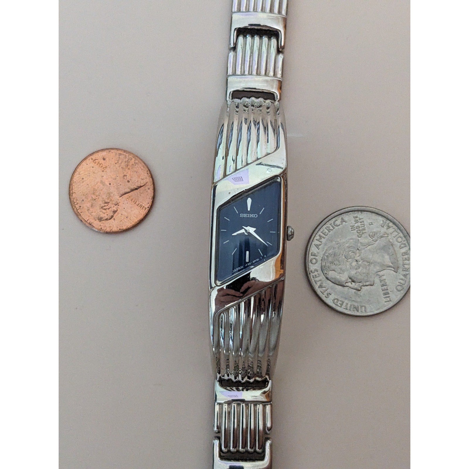 Vintage Andre Mouche Silver Tone Bangle Watch with Blue Floral Enamel Working