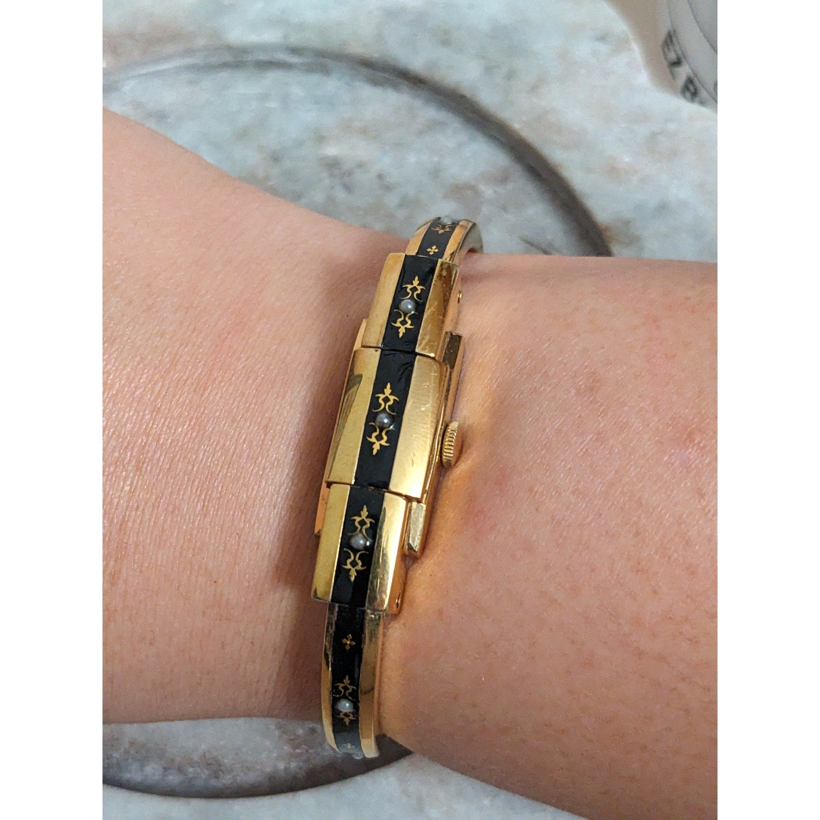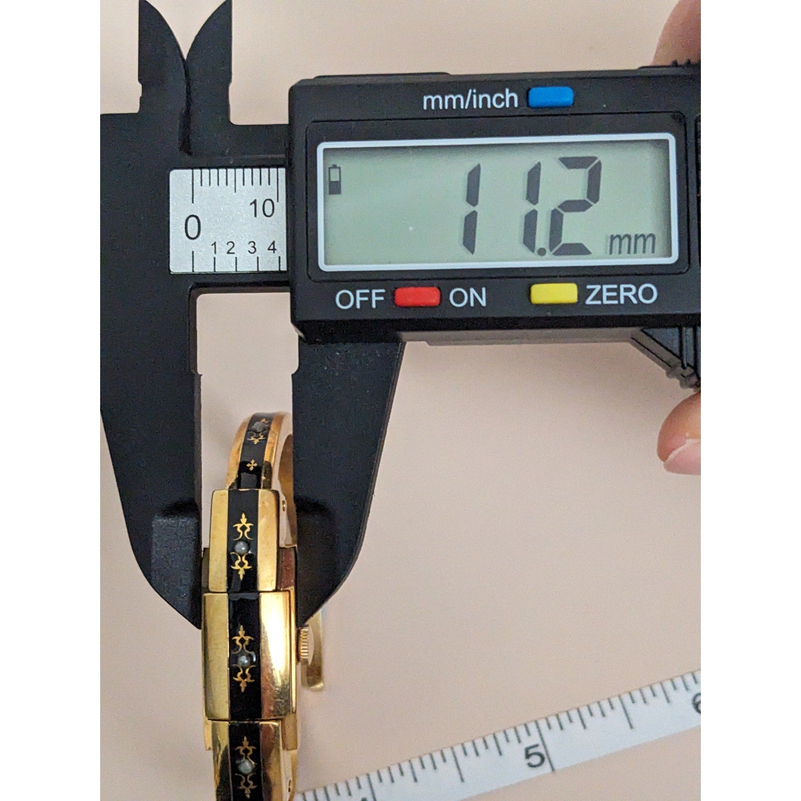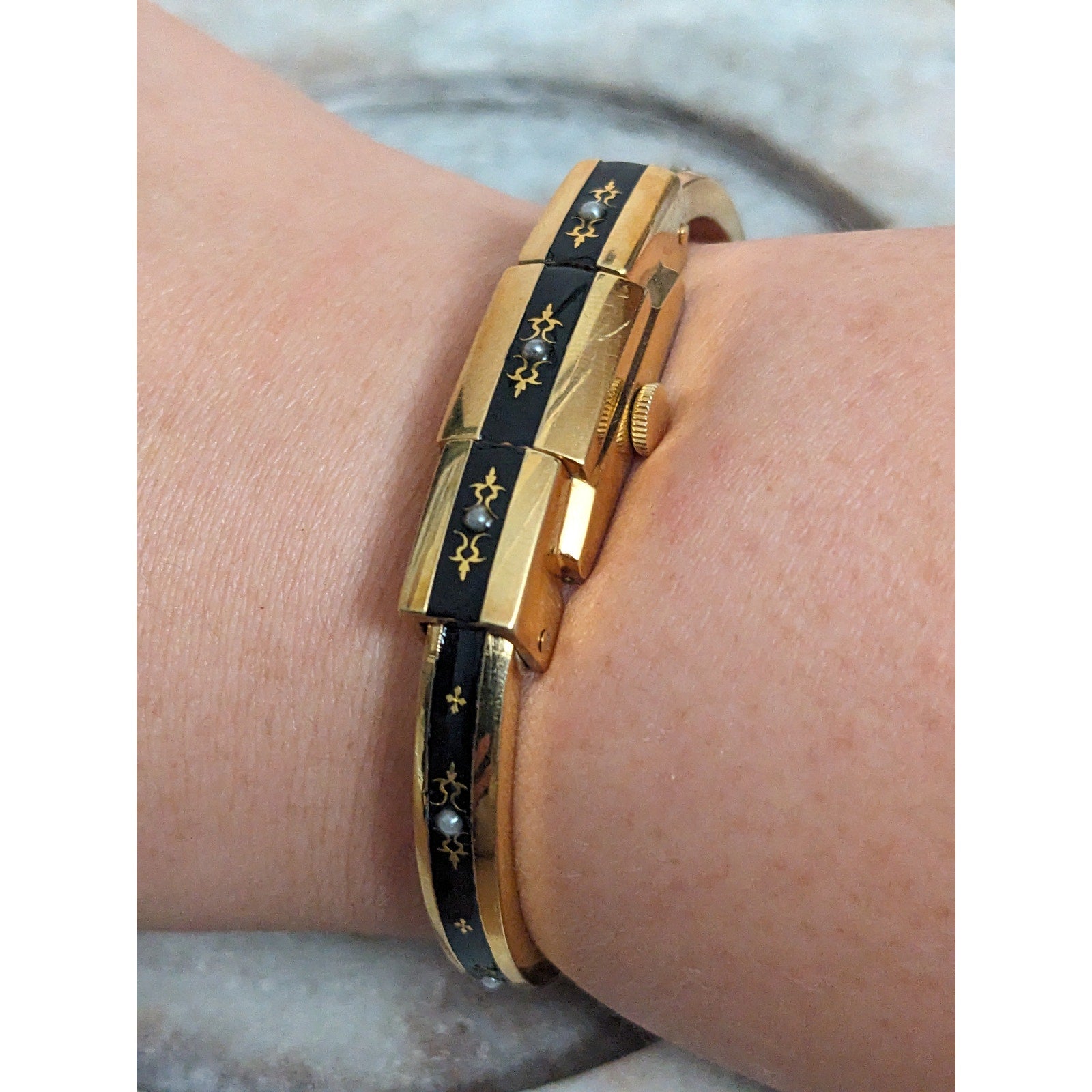 Vintage Andre Mouche Silver Tone Bangle Watch with Blue Floral Enamel Working