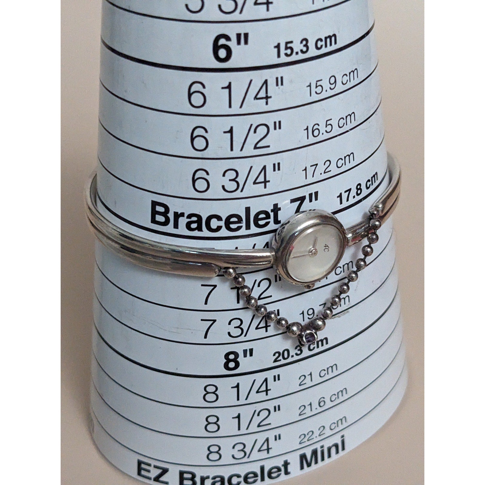 *Bangle watches have a fixed size but can accommodate various wrists. The closer you are to the stated length, the closer the ends come together and looser it feels.