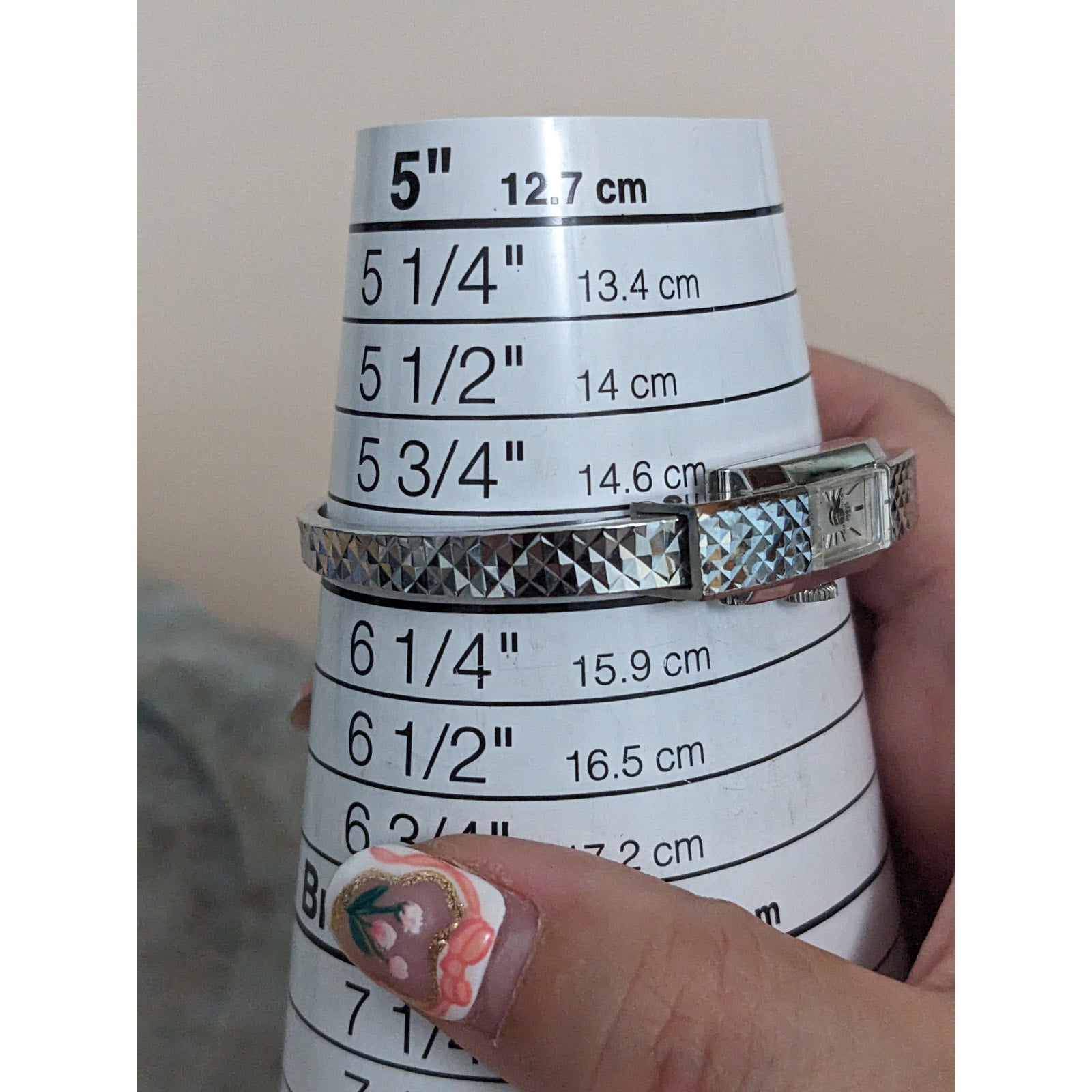 *Bangle watches have a fixed size but can accommodate various wrists. The closer you are to the stated length, the closer the ends come together and looser it feels.