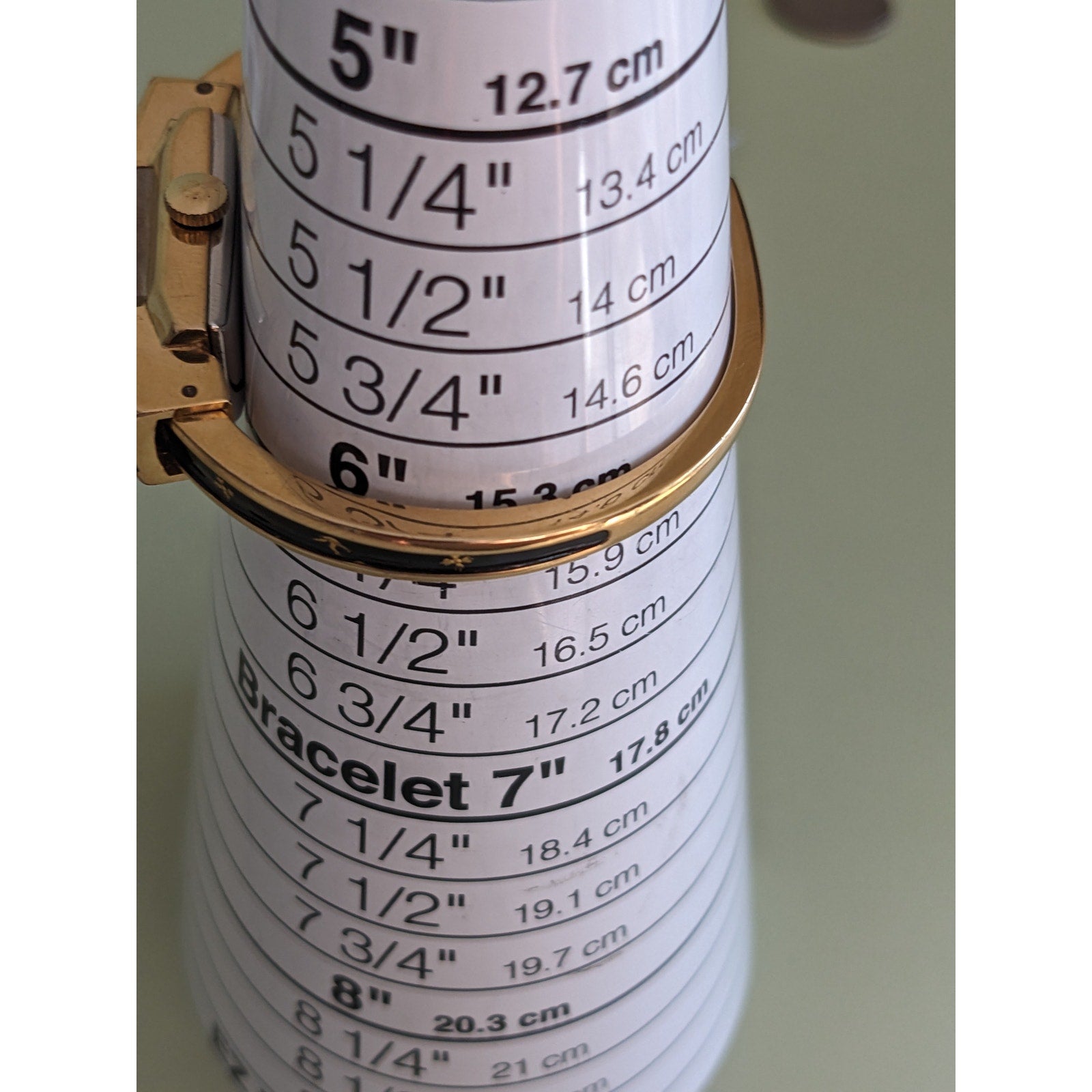 *Bangle watches have a fixed size but the bangle can accommodate various wrists. The closer you are to the stated length, the closer the ends come together and looser it feels. With a wrist larger than the stated length, it will be snug and the bangle ends are further apart.