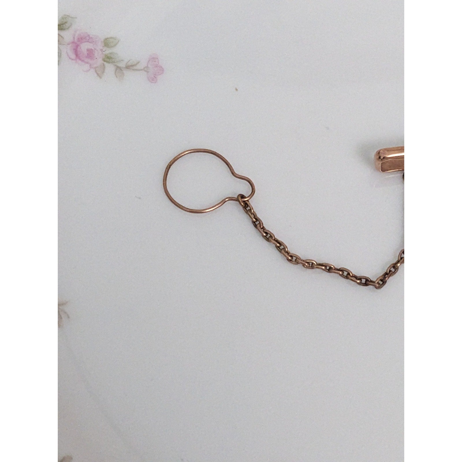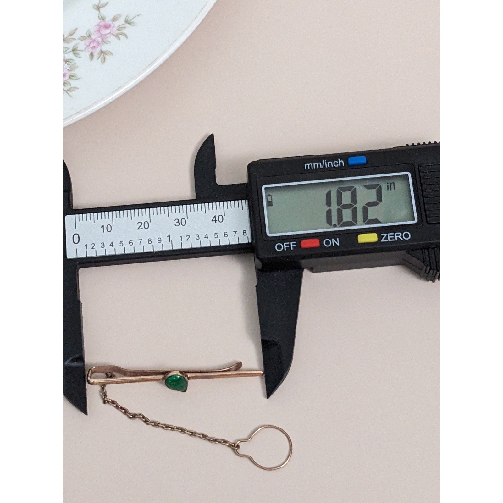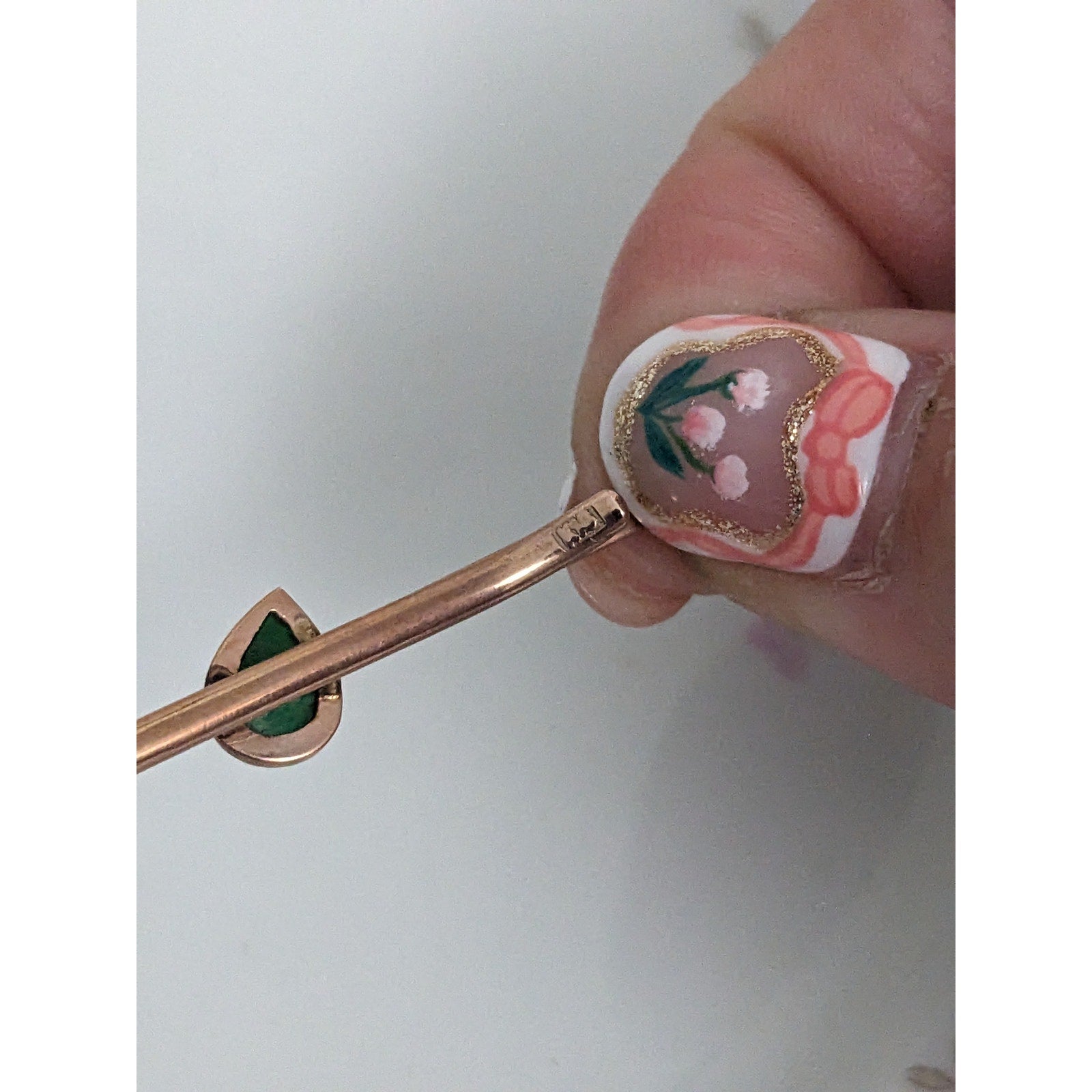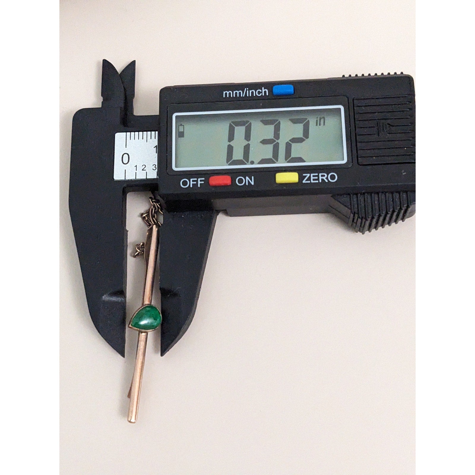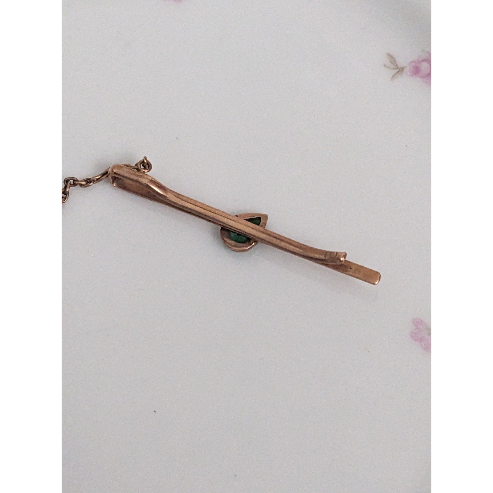 Vintage Unmarked 10k Rose Gold Tie Bar with Green Teardrop Gem