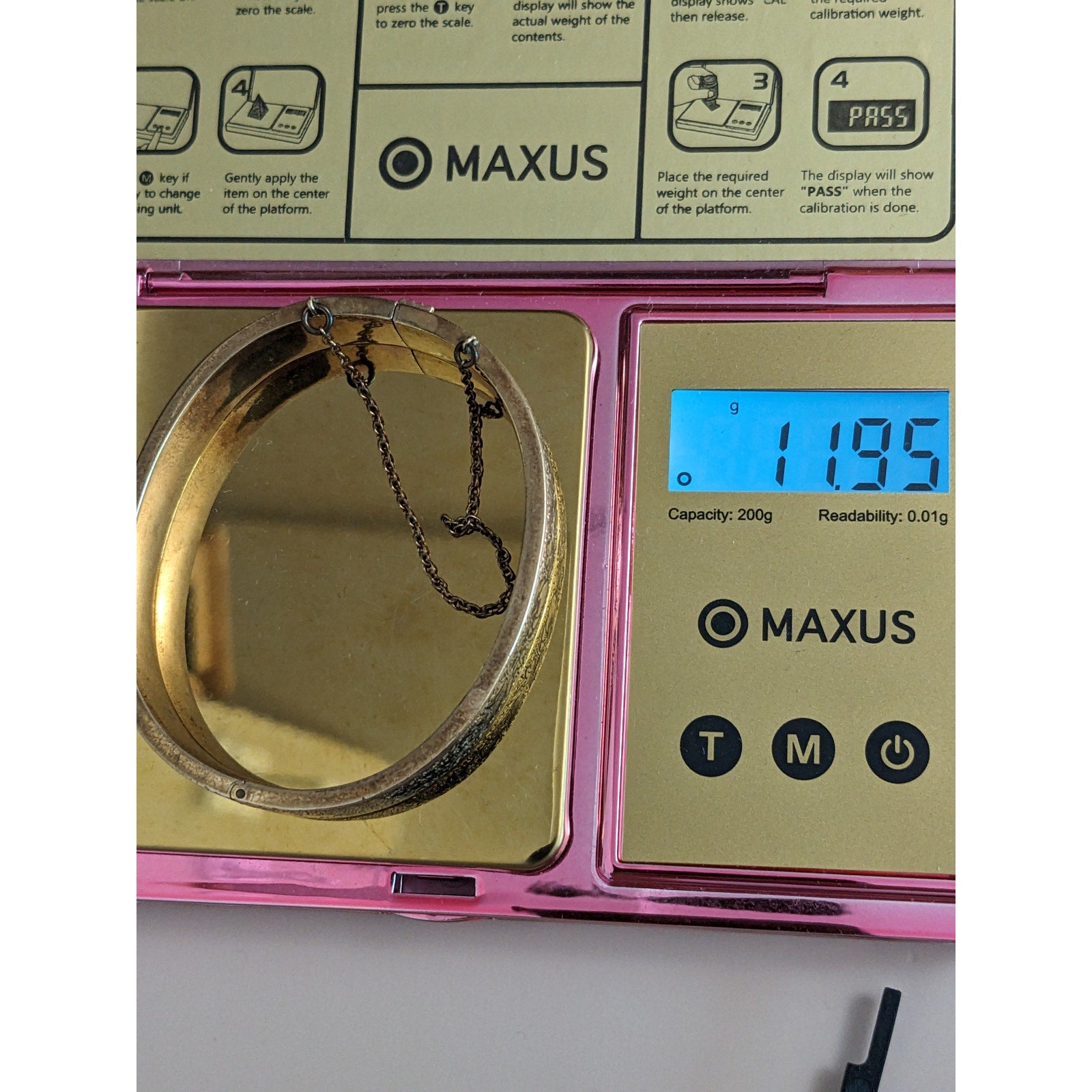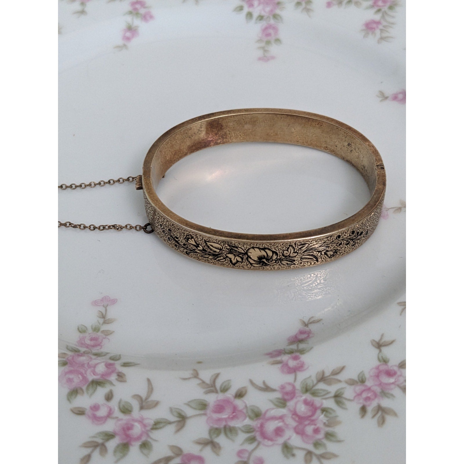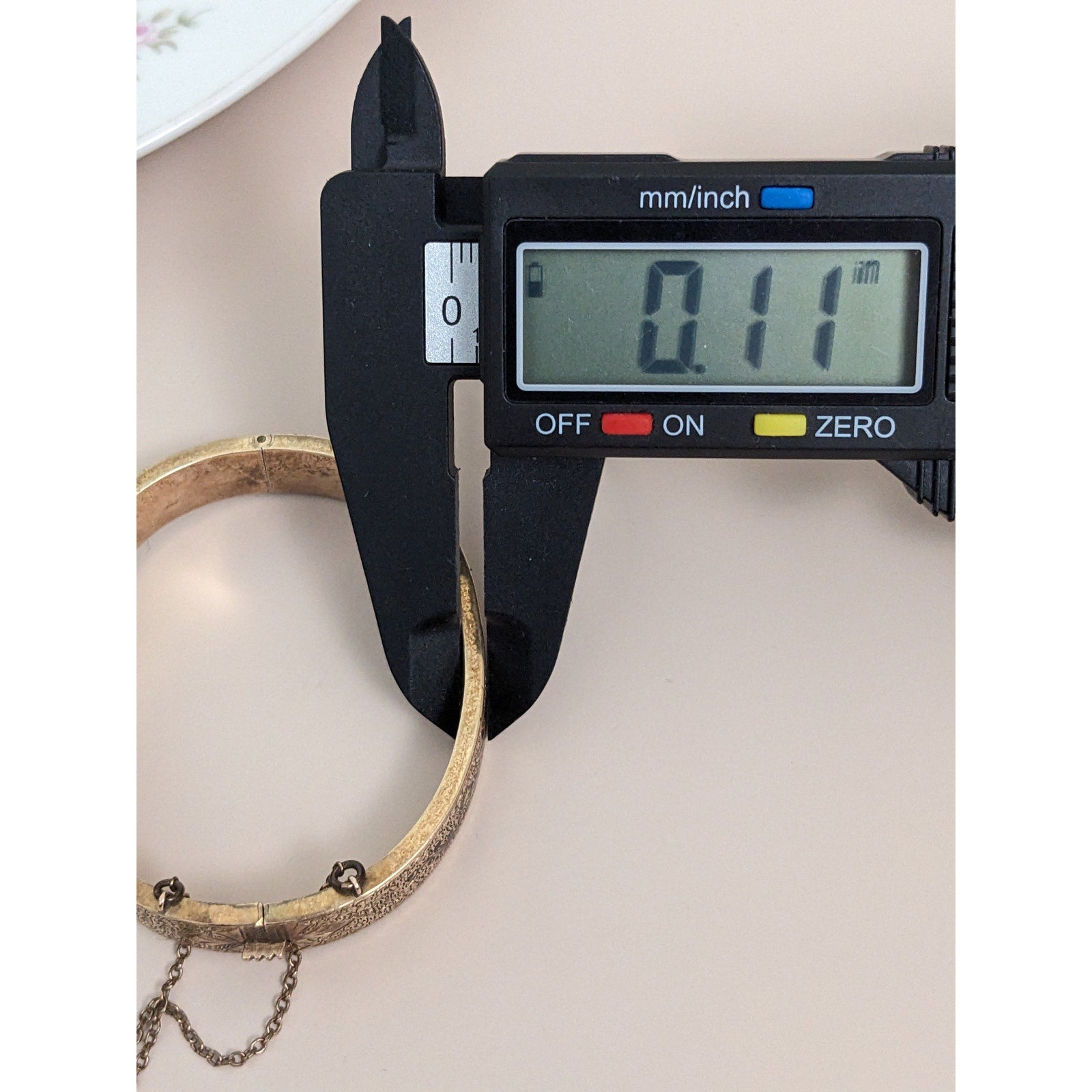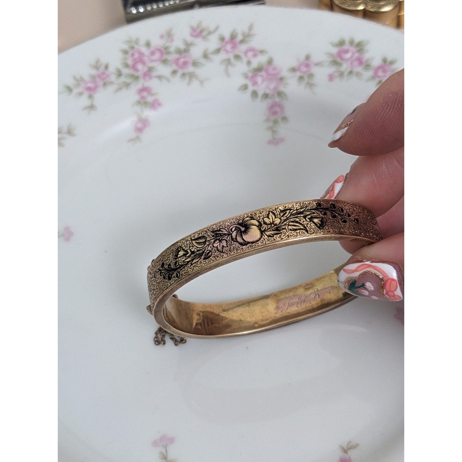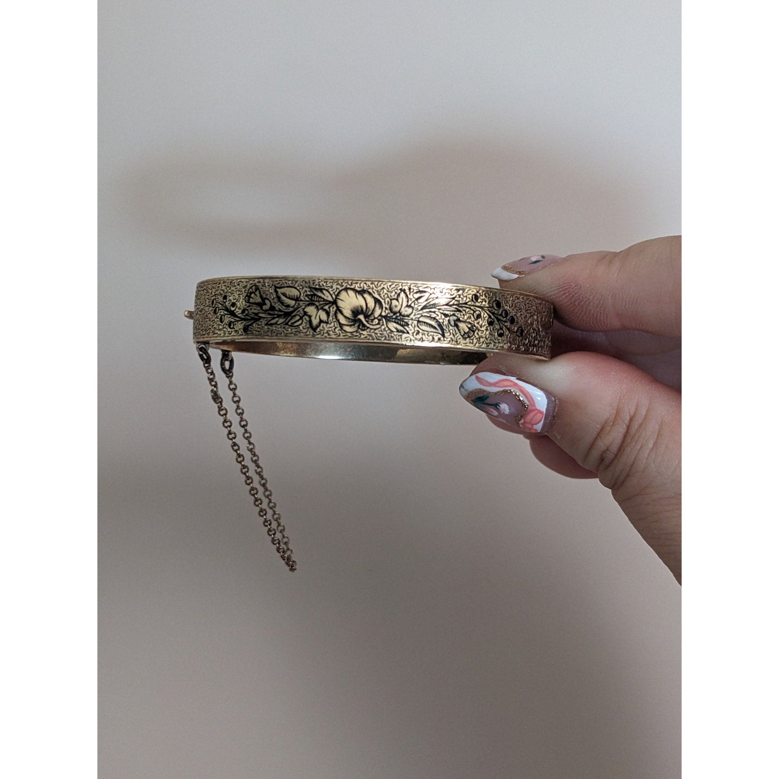 Vintage Unmarked 10k Yellow Gold Hollow Bangle Bracelet with Flower Etchings
