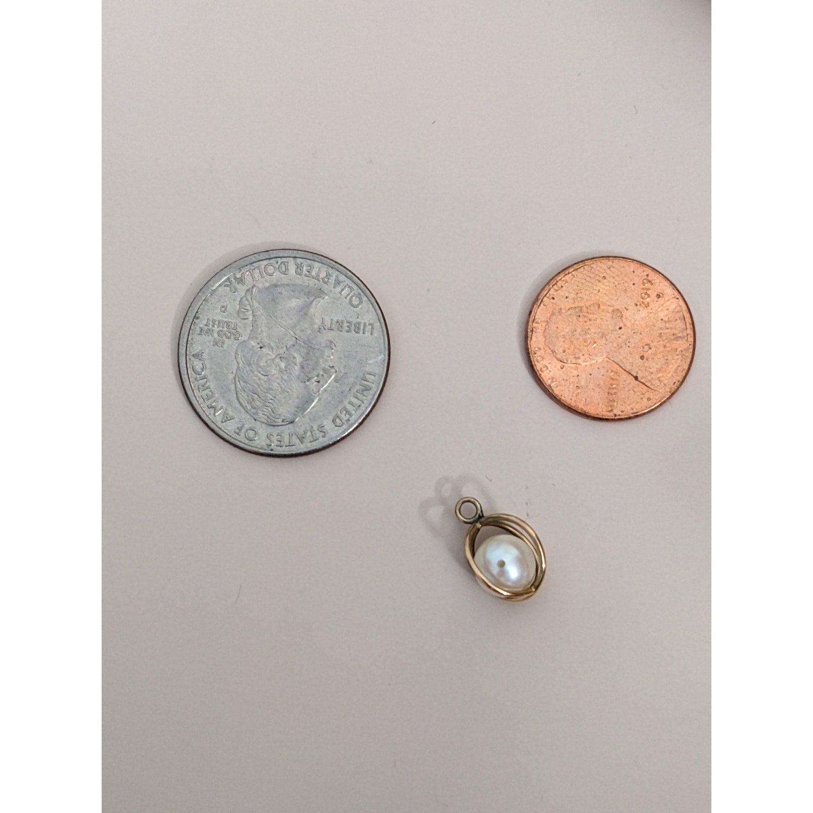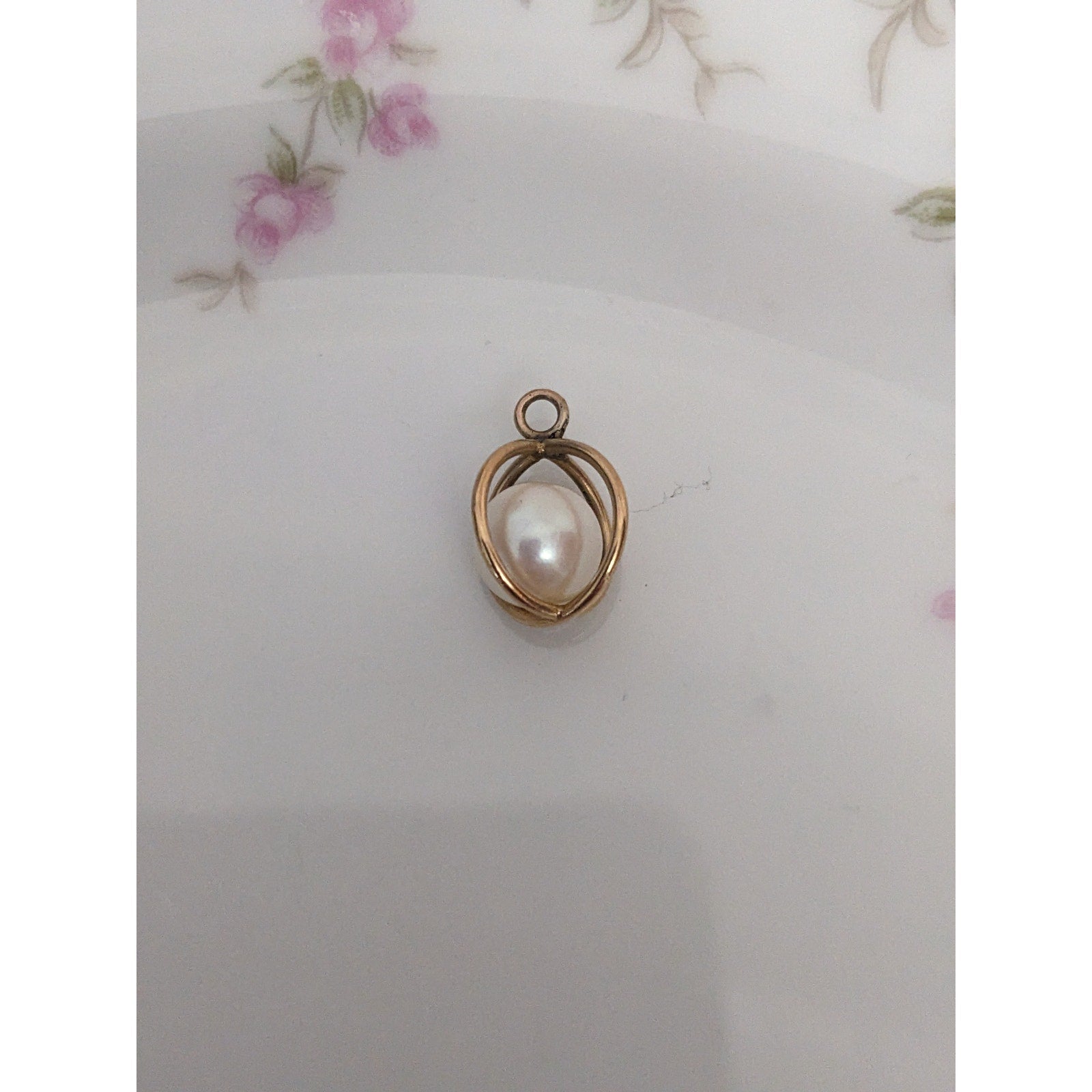 Vintage Unmarked 14k Yellow Gold Circular Case with Pearl Inside Charm Pendant