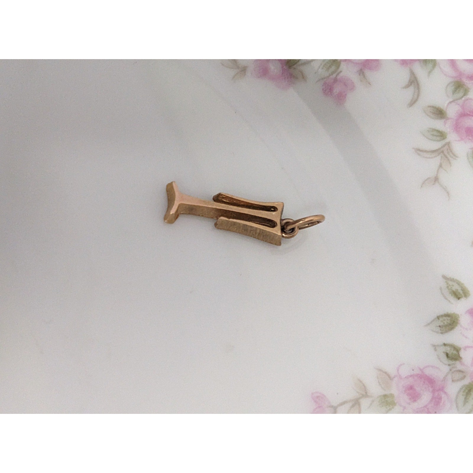 Vintage Unmarked 14k Yellow Gold Letter "T" Mini Charm Pendant